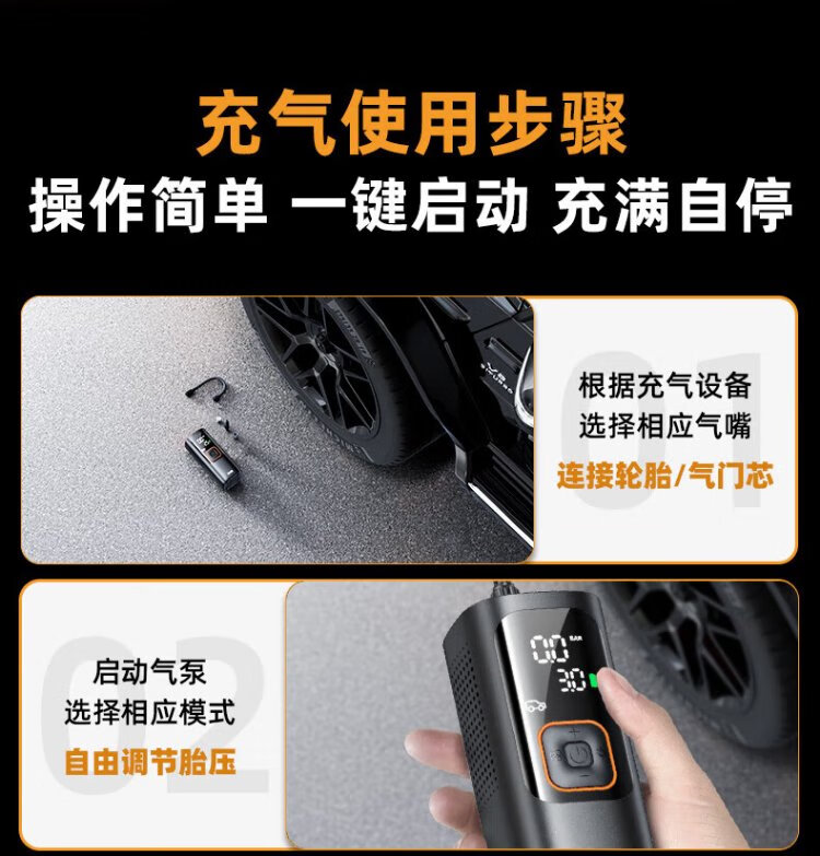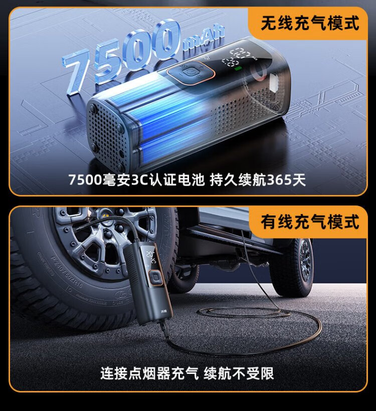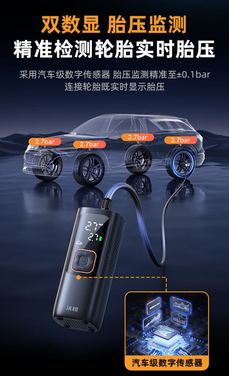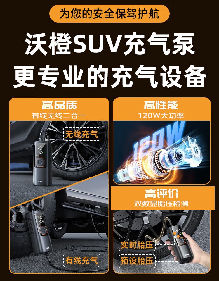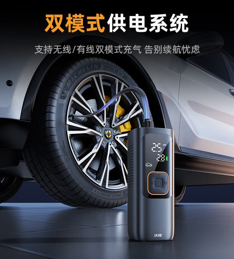 Wocheng car air pump car tire air pump bicycle portable wired wireless two-in-one high-voltage SUV special air pump 120W dual power supply