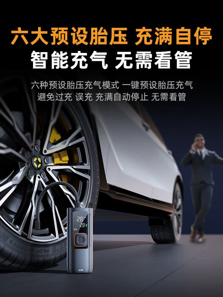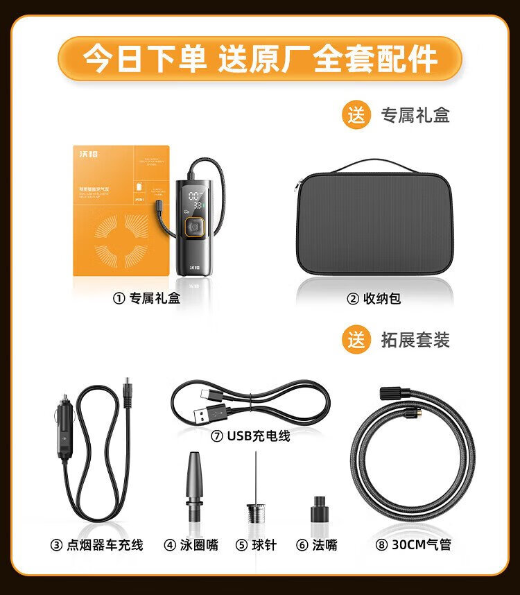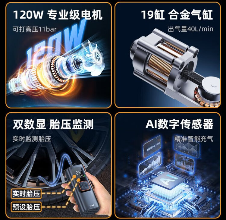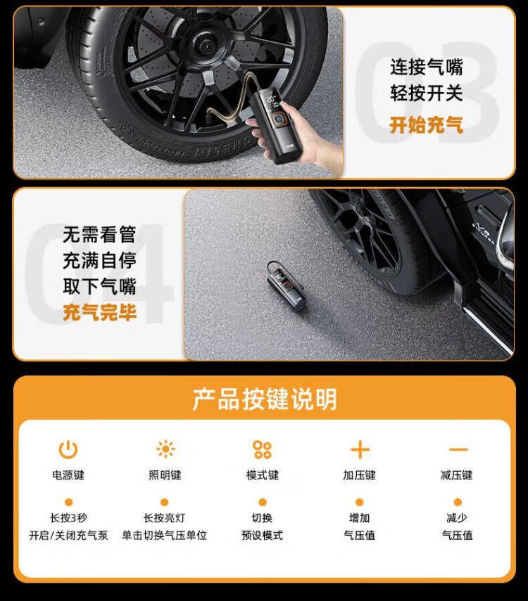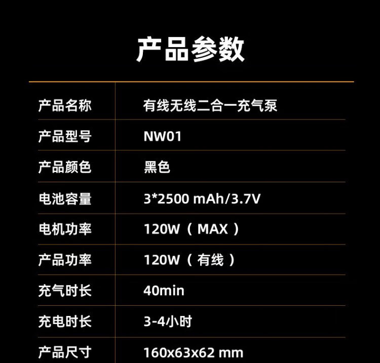 Wocheng car air pump car tire air pump bicycle portable wired wireless two-in-one high-voltage SUV special air pump 120W dual power supply