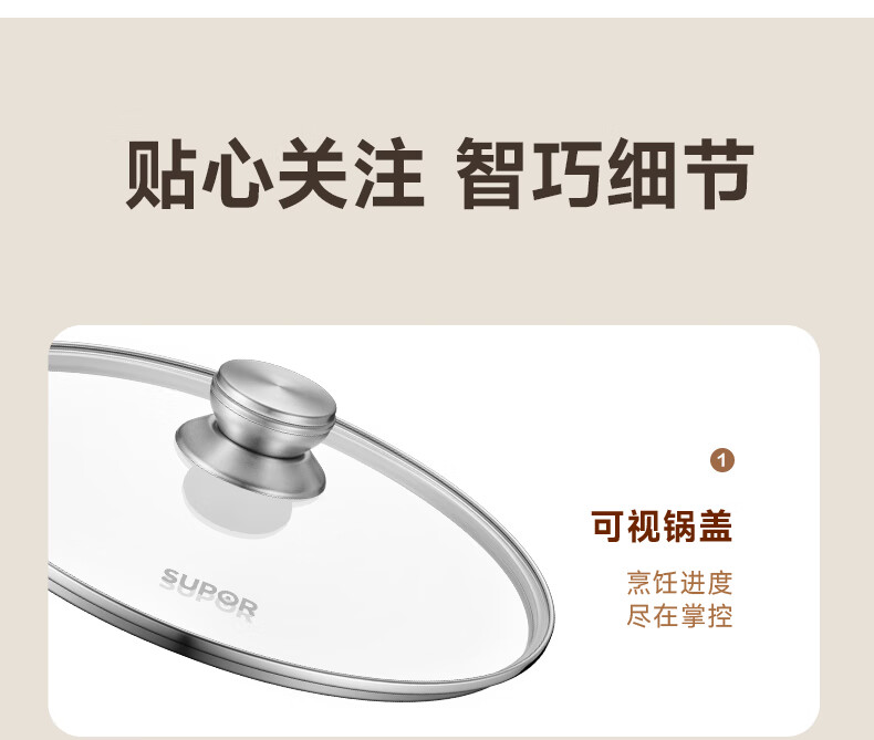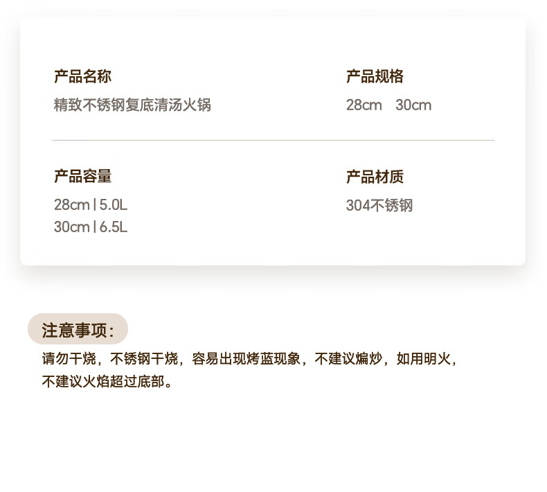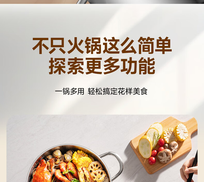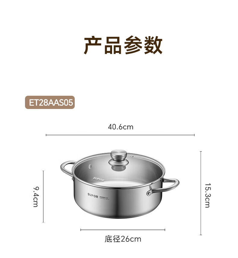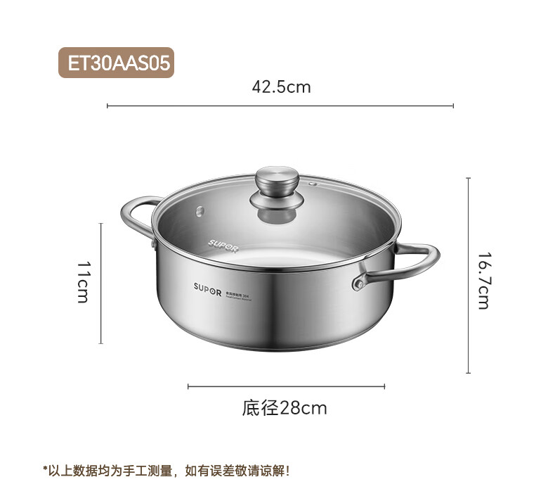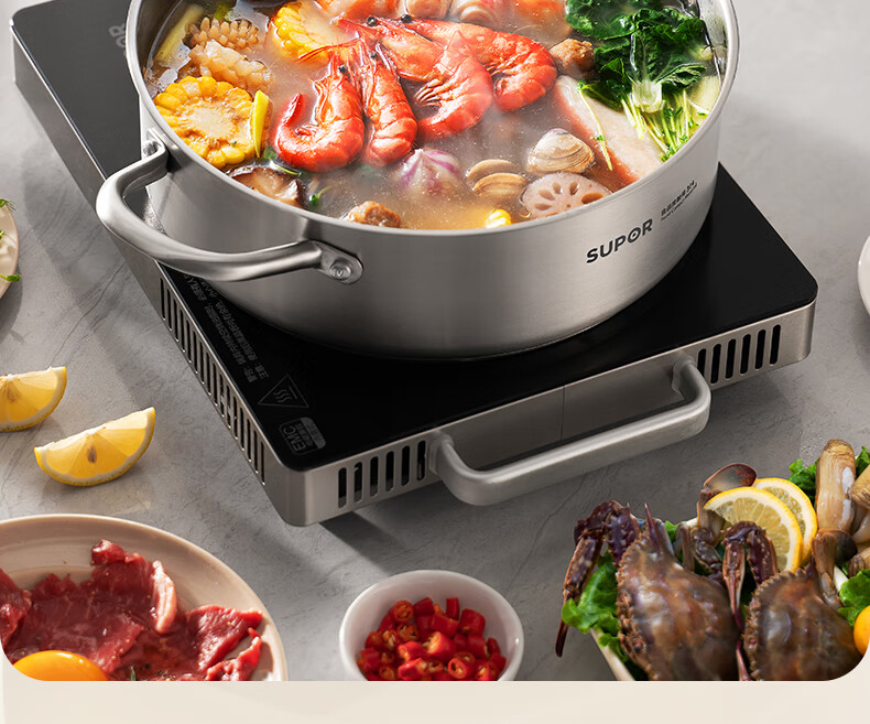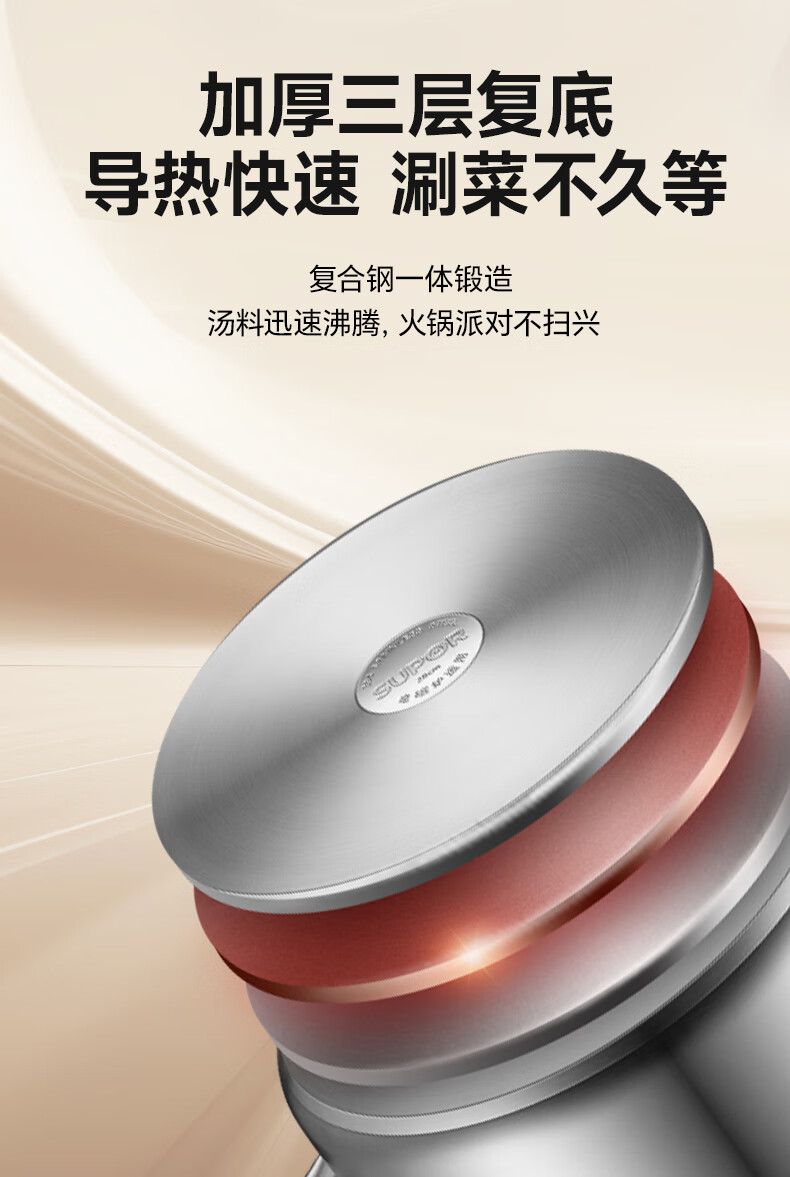 SUPOR hot pot special pot large capacity 304 stainless steel thickened double bottom hot pot soup pot induction cooker household multi-function pot large stainless steel hot pot 6.5L 30cm