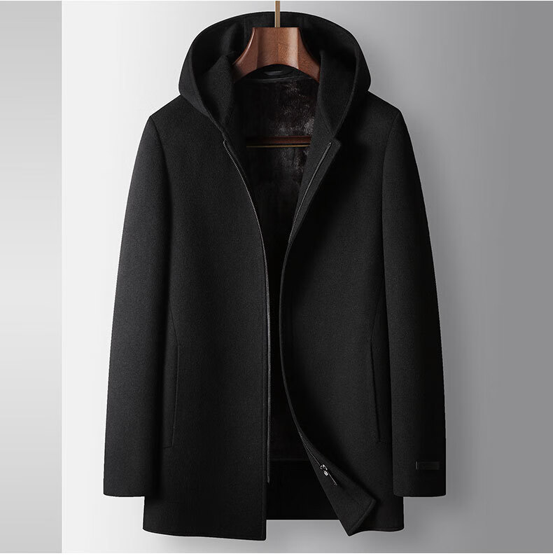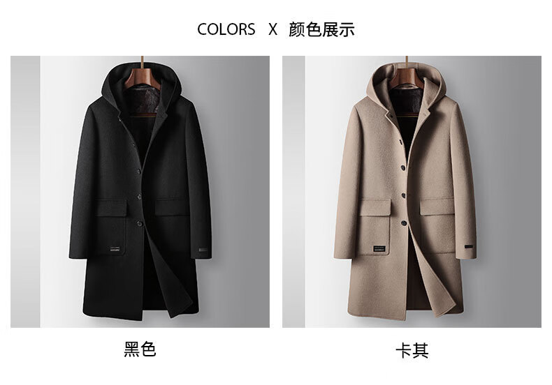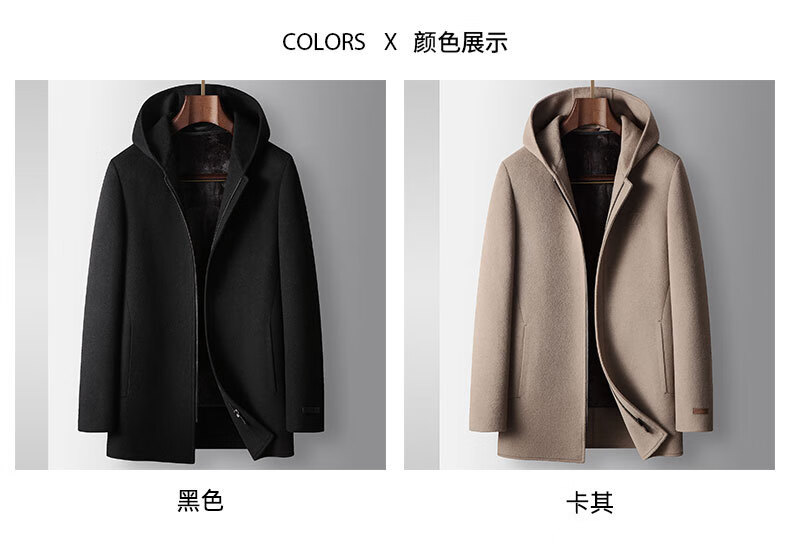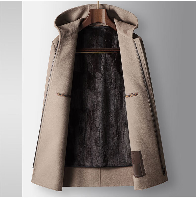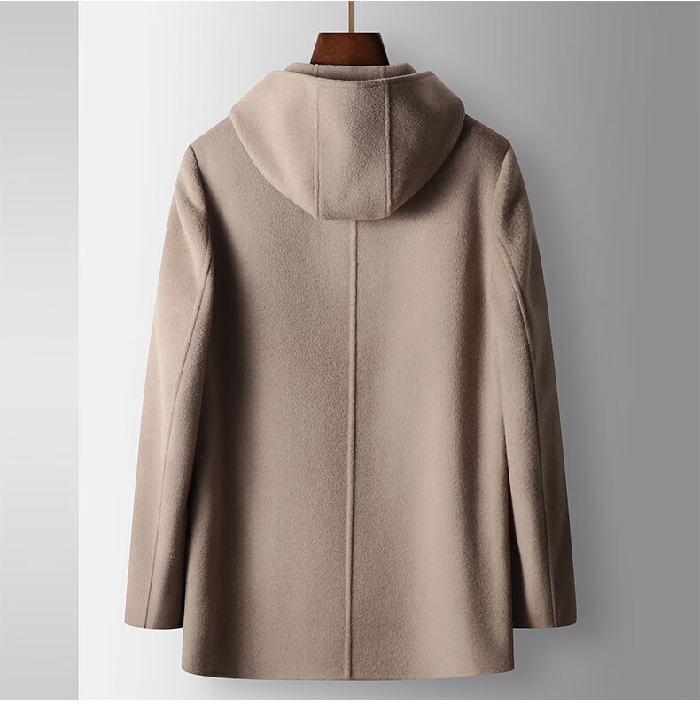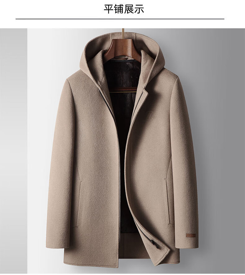 DK brand men's 100% pure wool woolen coat men's winter new business casual warm loose hooded coat Khaki XL /180 recommended 140-160Jin Jin equals 0.5 kg