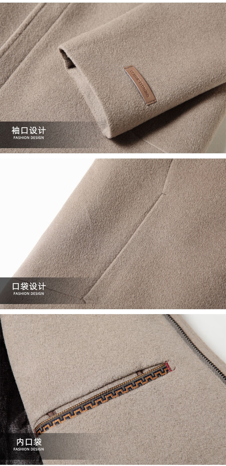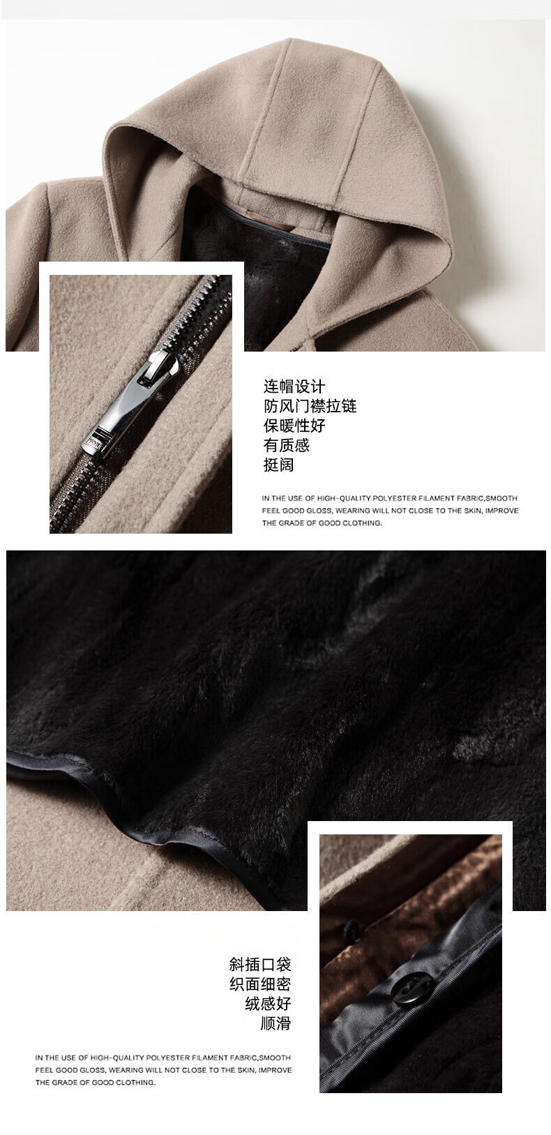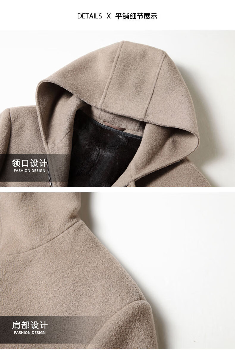 DK brand men's 100% pure wool woolen coat men's winter new business casual warm loose hooded coat Khaki XL /180 recommended 140-160Jin Jin equals 0.5 kg