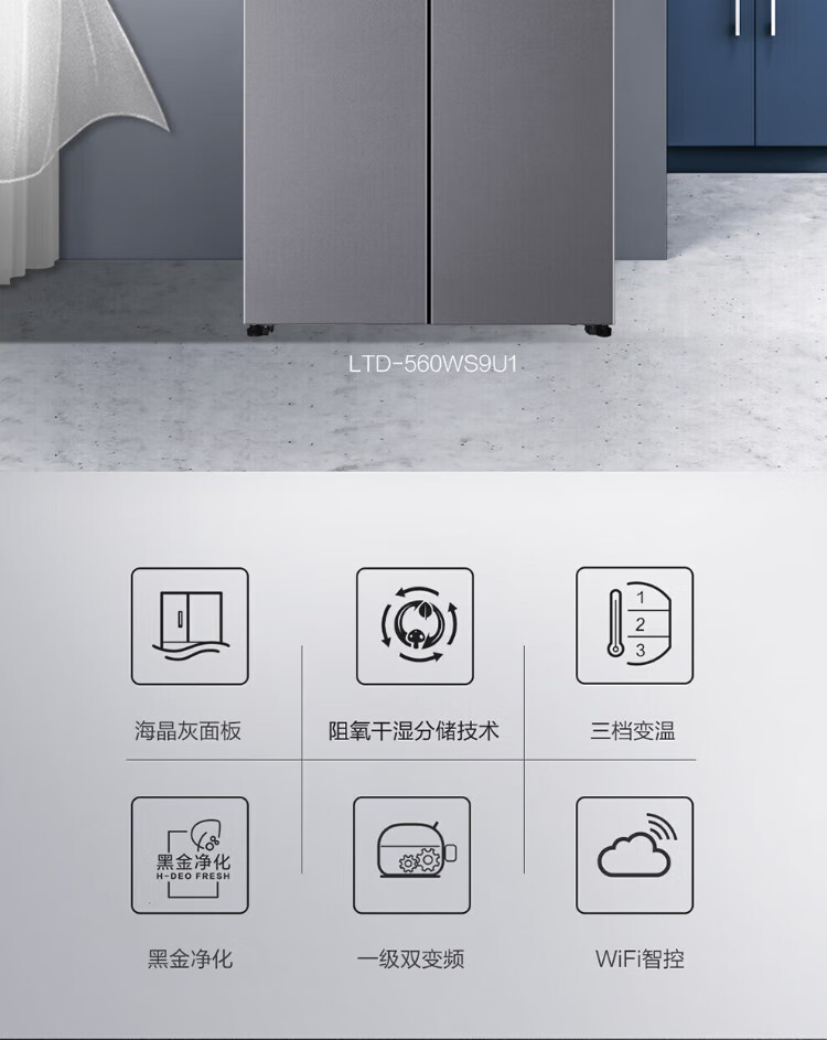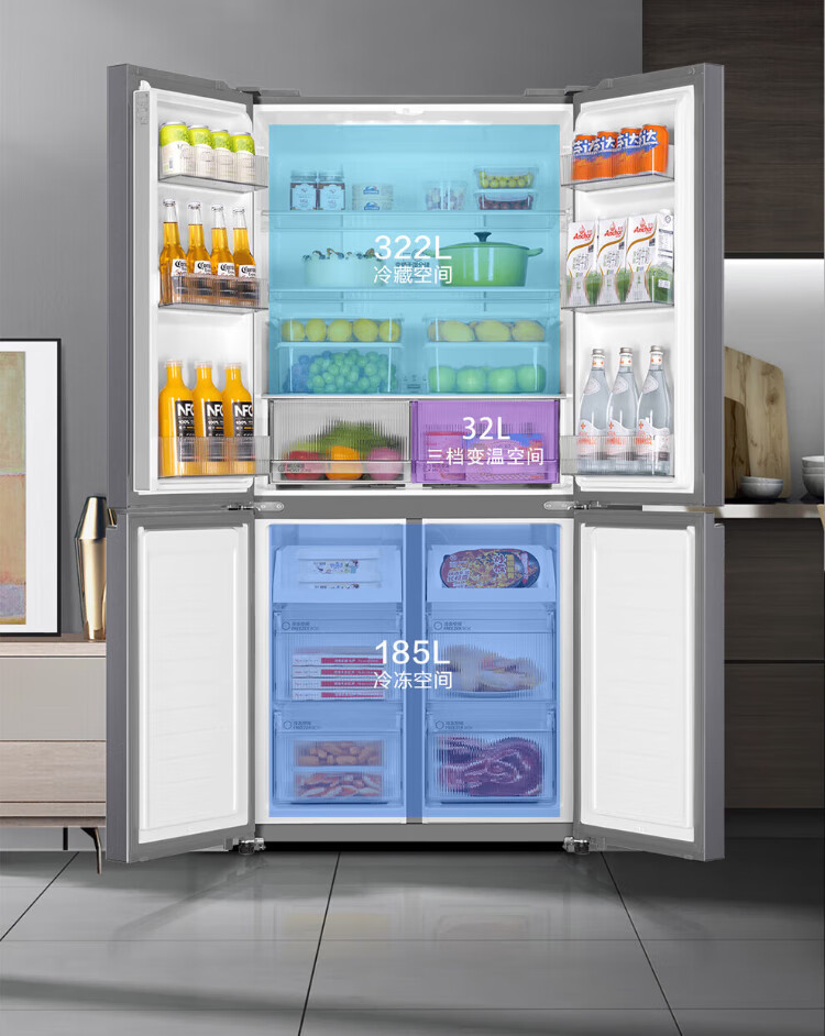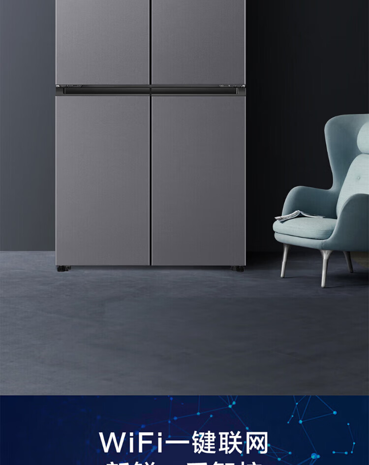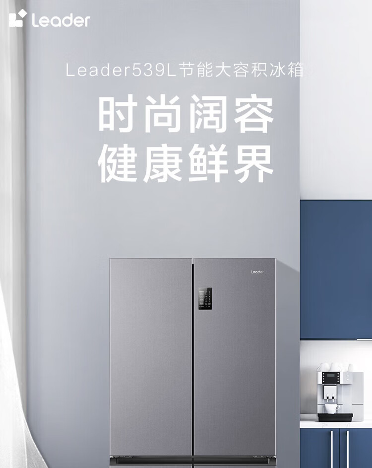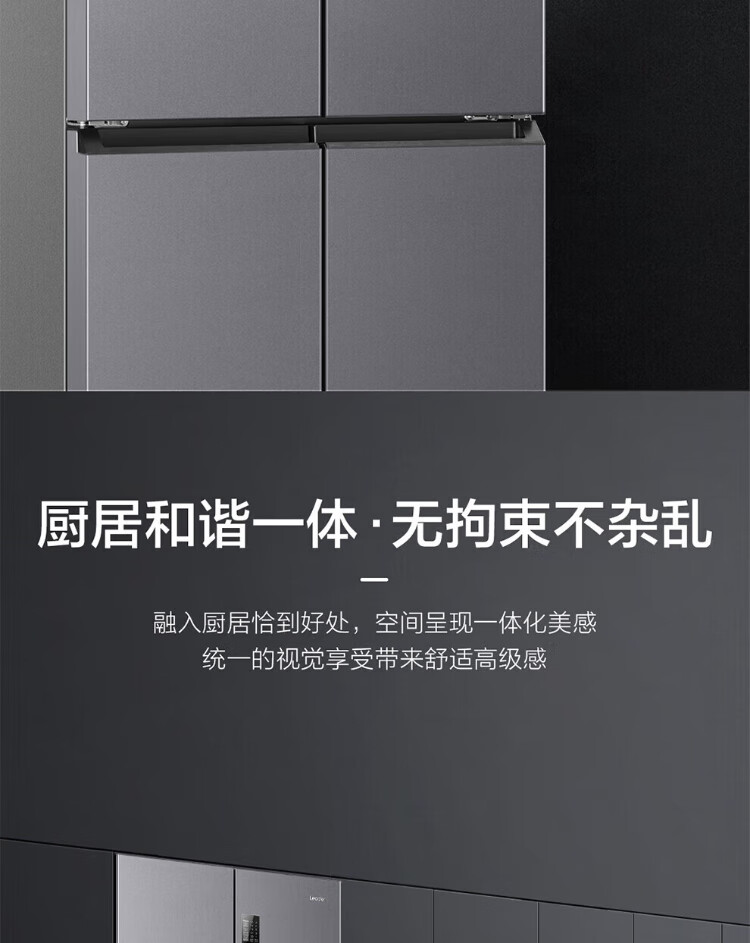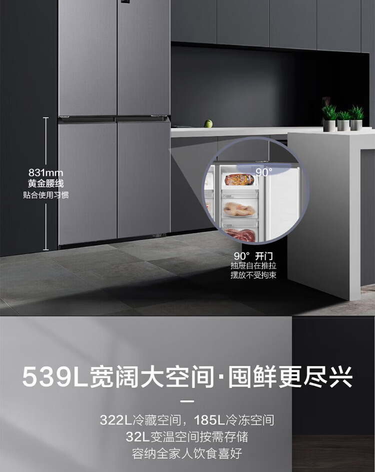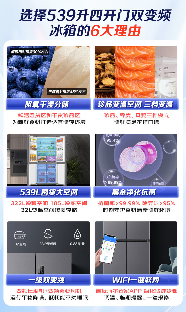 Haier refrigerator produces Commander 560 four-door cross-door double-opening 539 liters large capacity air-cooled frost-free new level energy efficiency inverter Leader refrigerator Home appliance subsidy Hai Jing Gray 539 liters large capacity storage + dry and wet storage + black gold purification