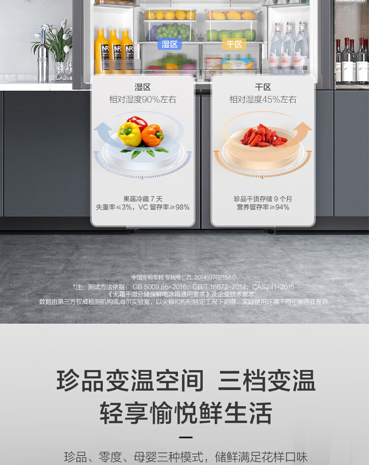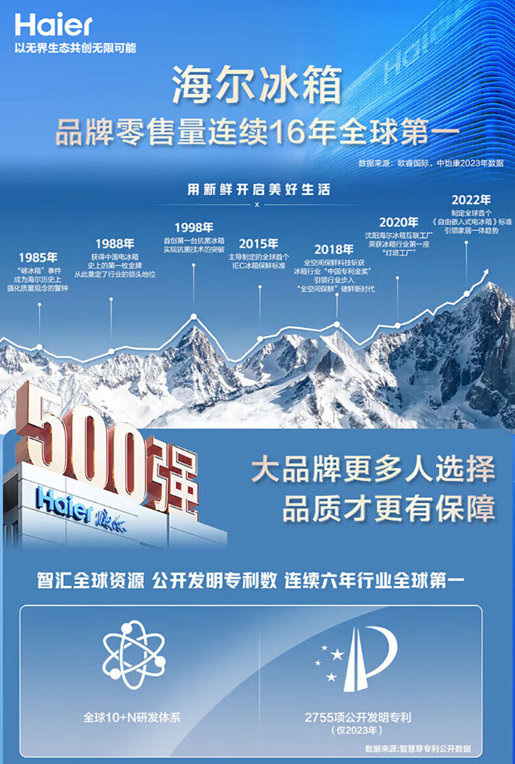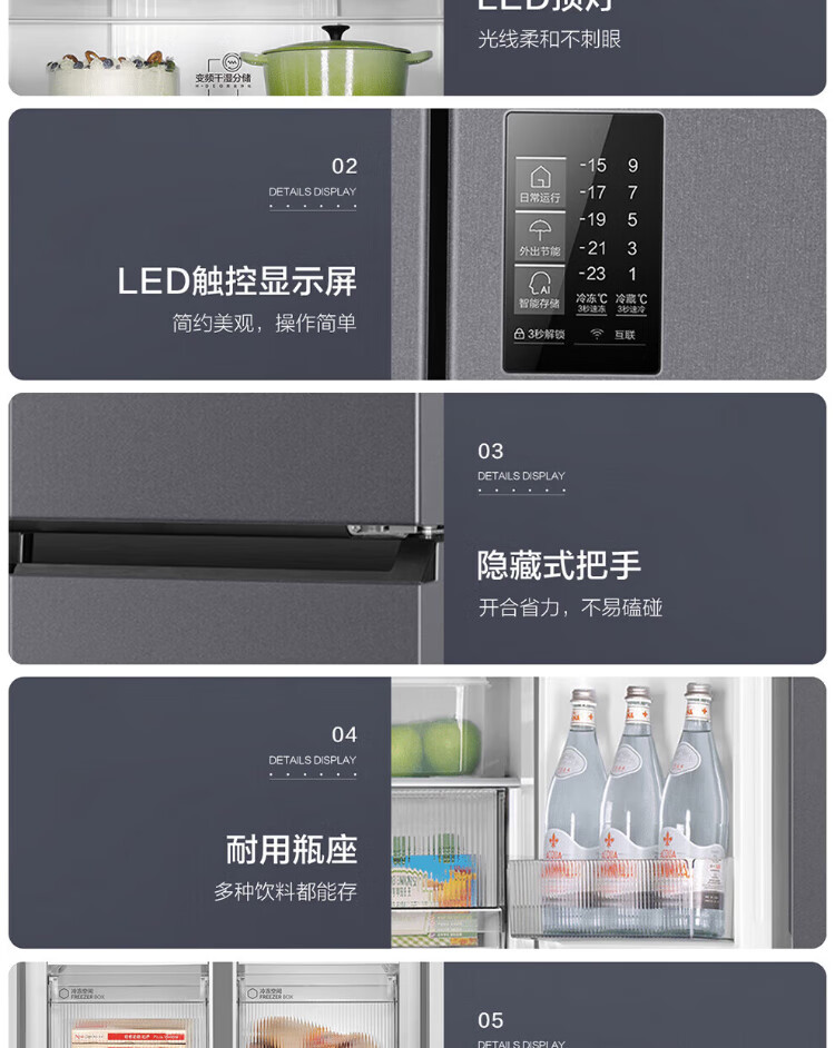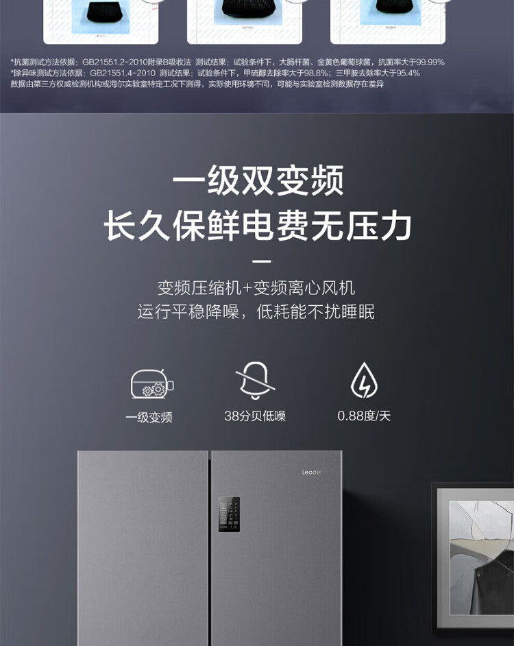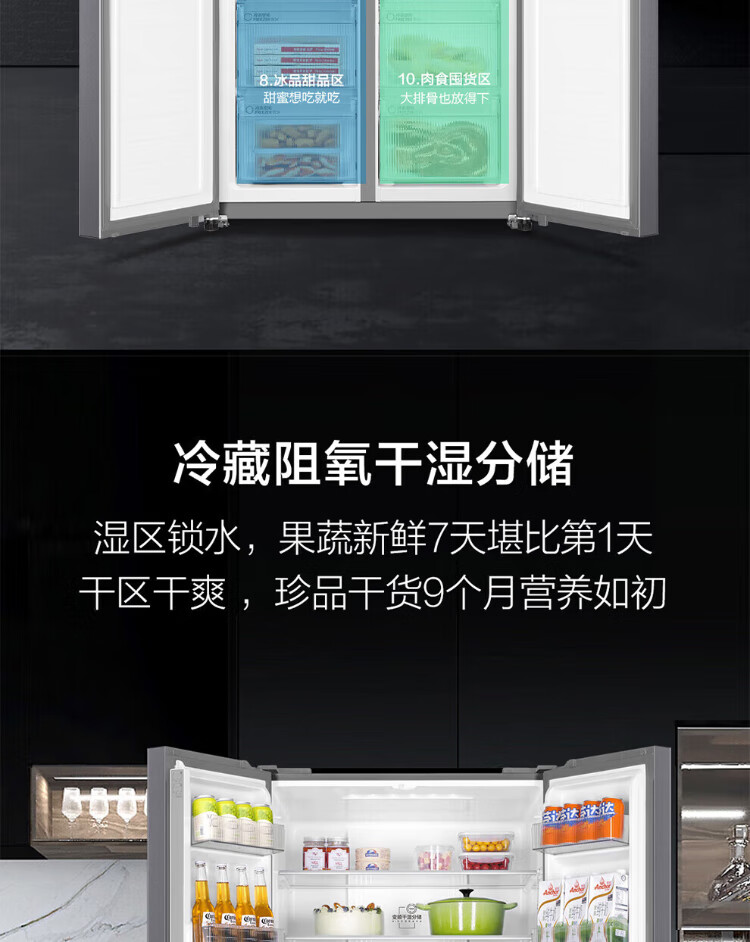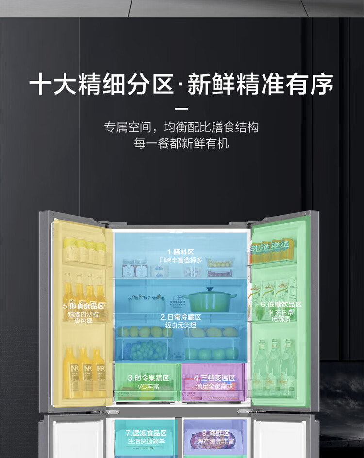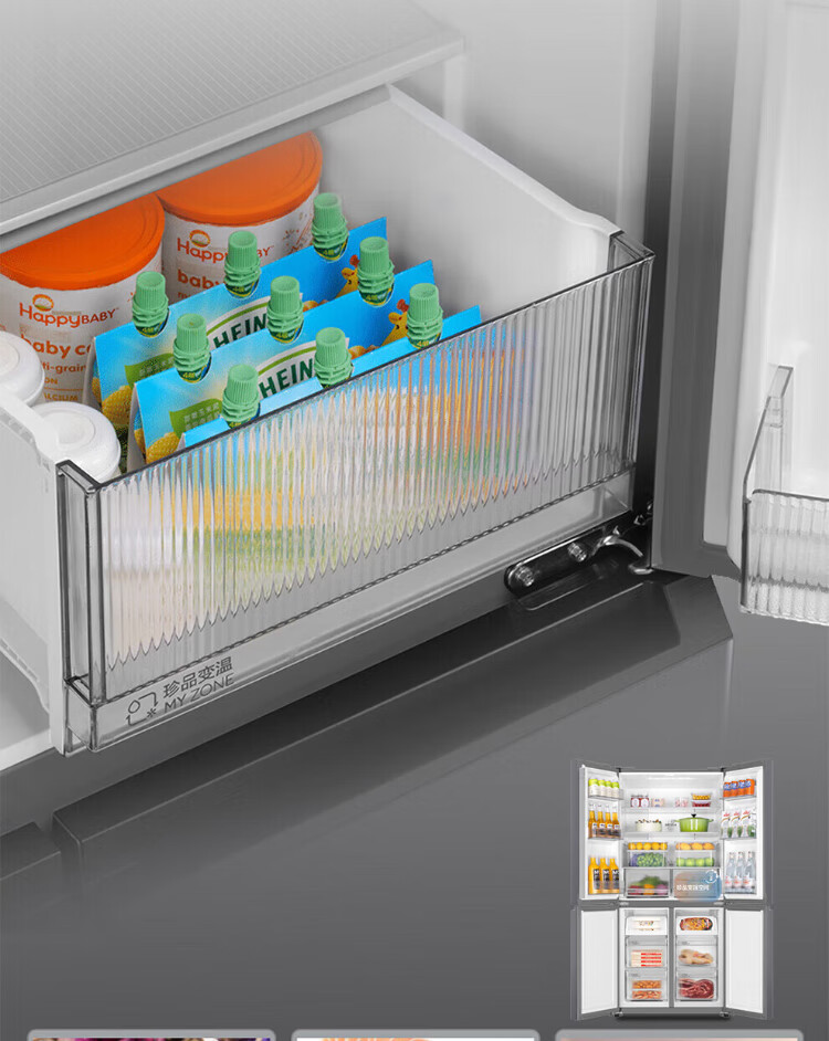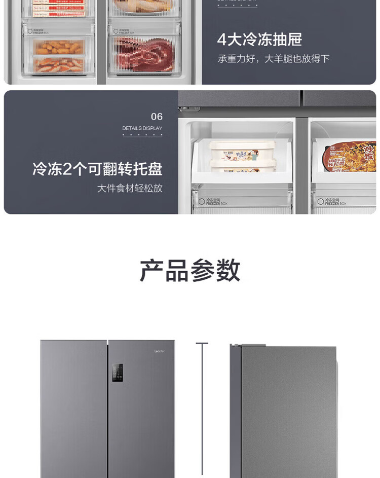 Haier refrigerator produces Commander 560 four-door cross-door double-opening 539 liters large capacity air-cooled frost-free new level energy efficiency inverter Leader refrigerator Home appliance subsidy Hai Jing Gray 539 liters large capacity storage + dry and wet storage + black gold purification