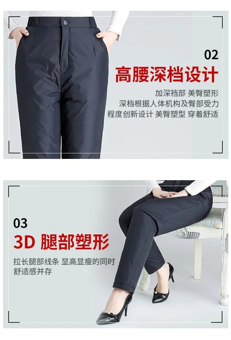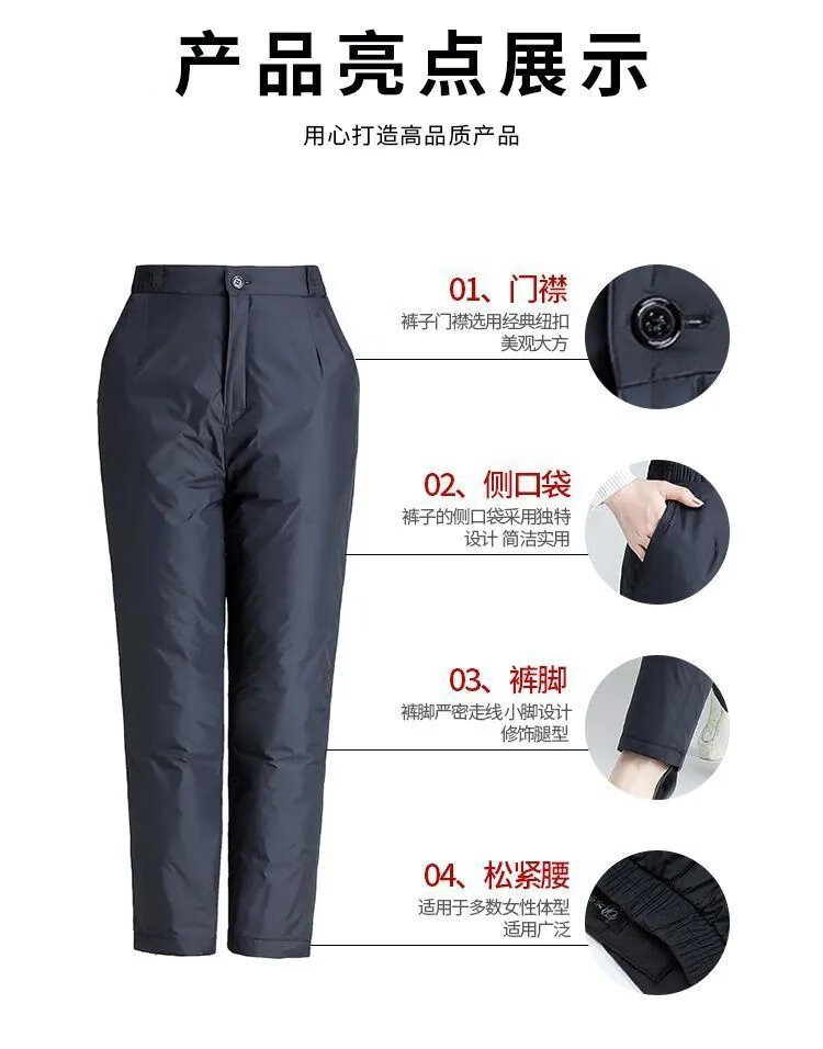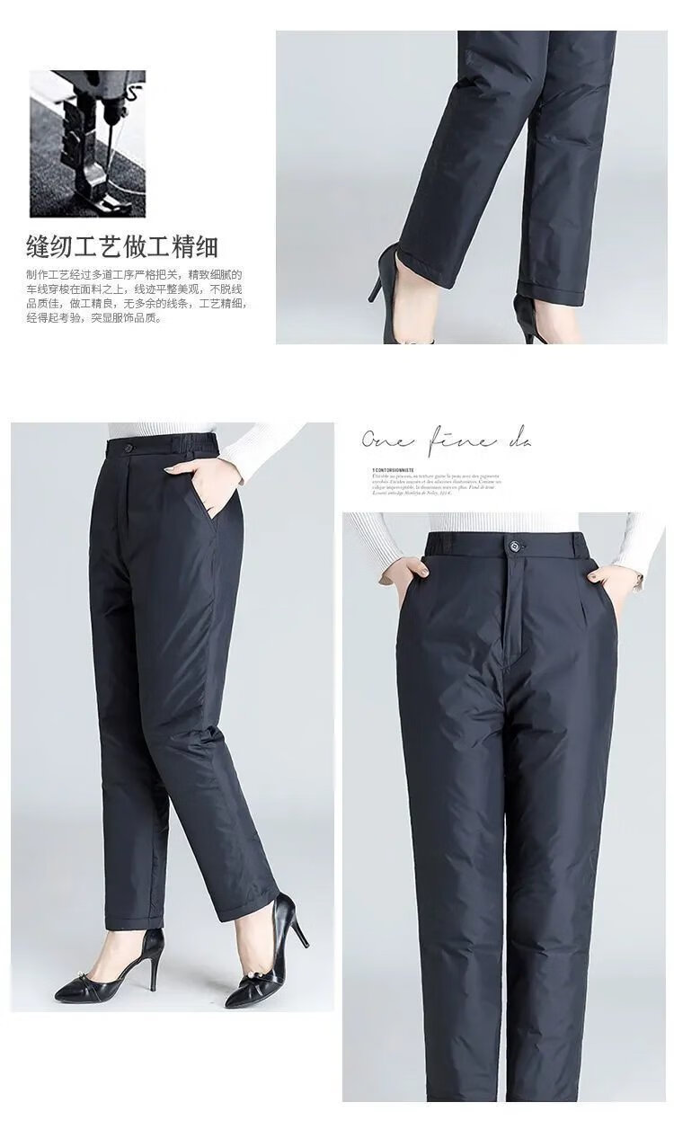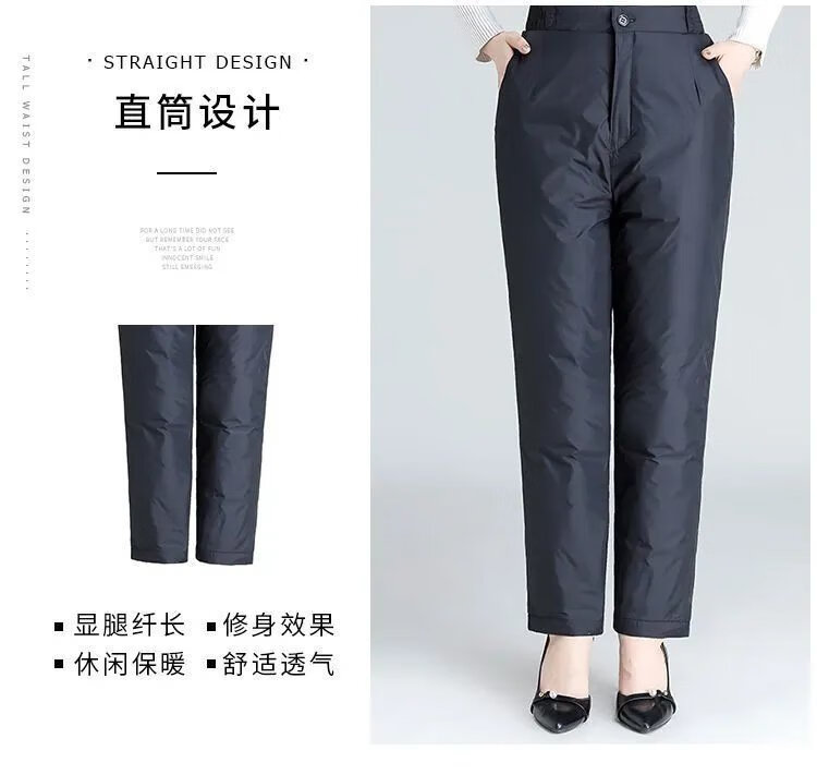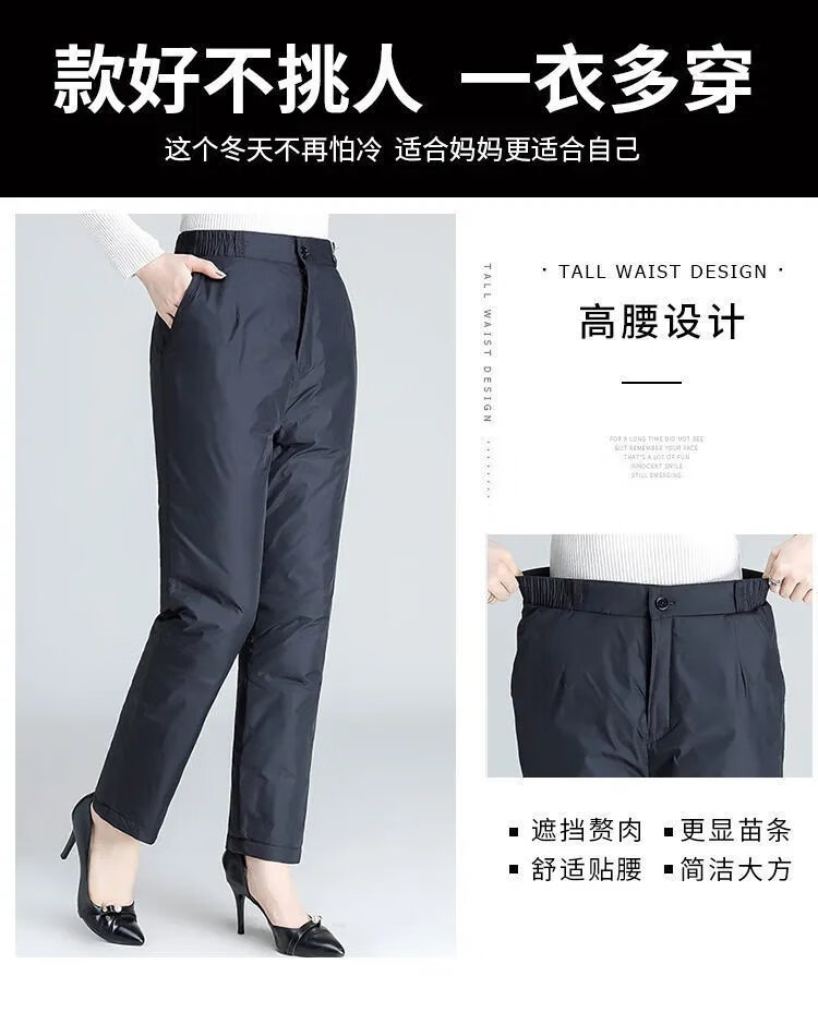 Hengyuanxiang Down Pants Women's Winter Outerwear for Middle-aged and Elderly Women Loose Large Size Warm Thickened Cotton Pants Women's High Waist Straight Duck Down Pants Black - Women's L 100-120Jin Jin is equal to 0.5 kg