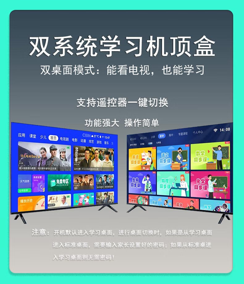 Zhitianxia large-screen learning machine A1 infant primary school, junior high school and high school full subject synchronization 2024 new textbook version children's early education machine education learning set-top box TV becomes learning machine long-term free update of learning content dual system learning + watching TV