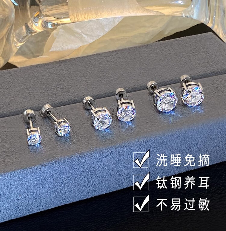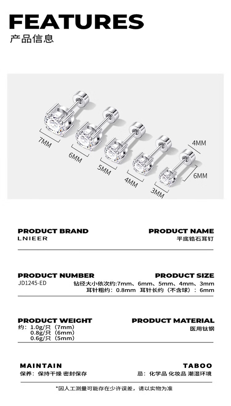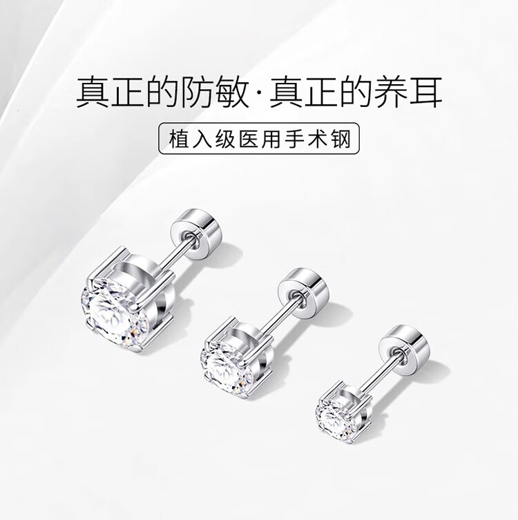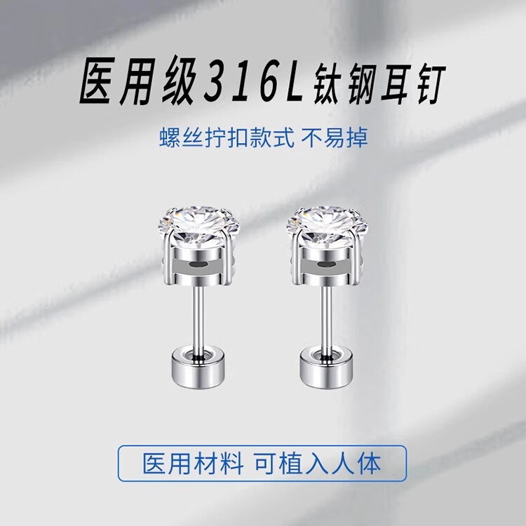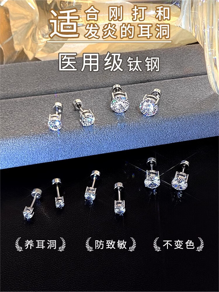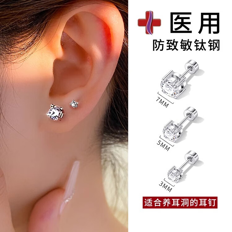 Lnieer Medical Titanium Steel Ear Hole Earrings Women's Screw Twist Huazi Ear Bone Nails Explosive Flat Bottom Earrings Cochlear Nails Earrings Medical Grade Titanium Steel Maintenance 5mm One