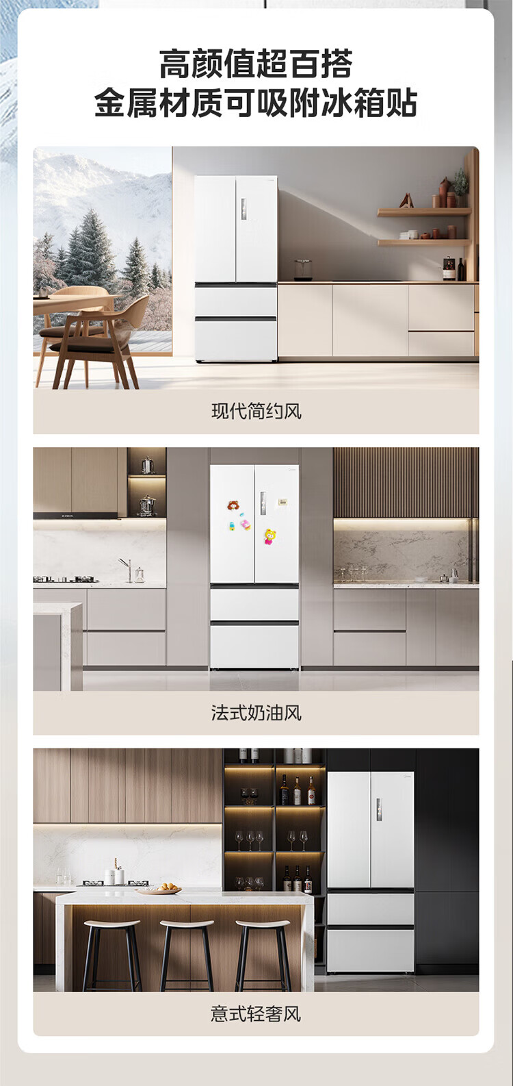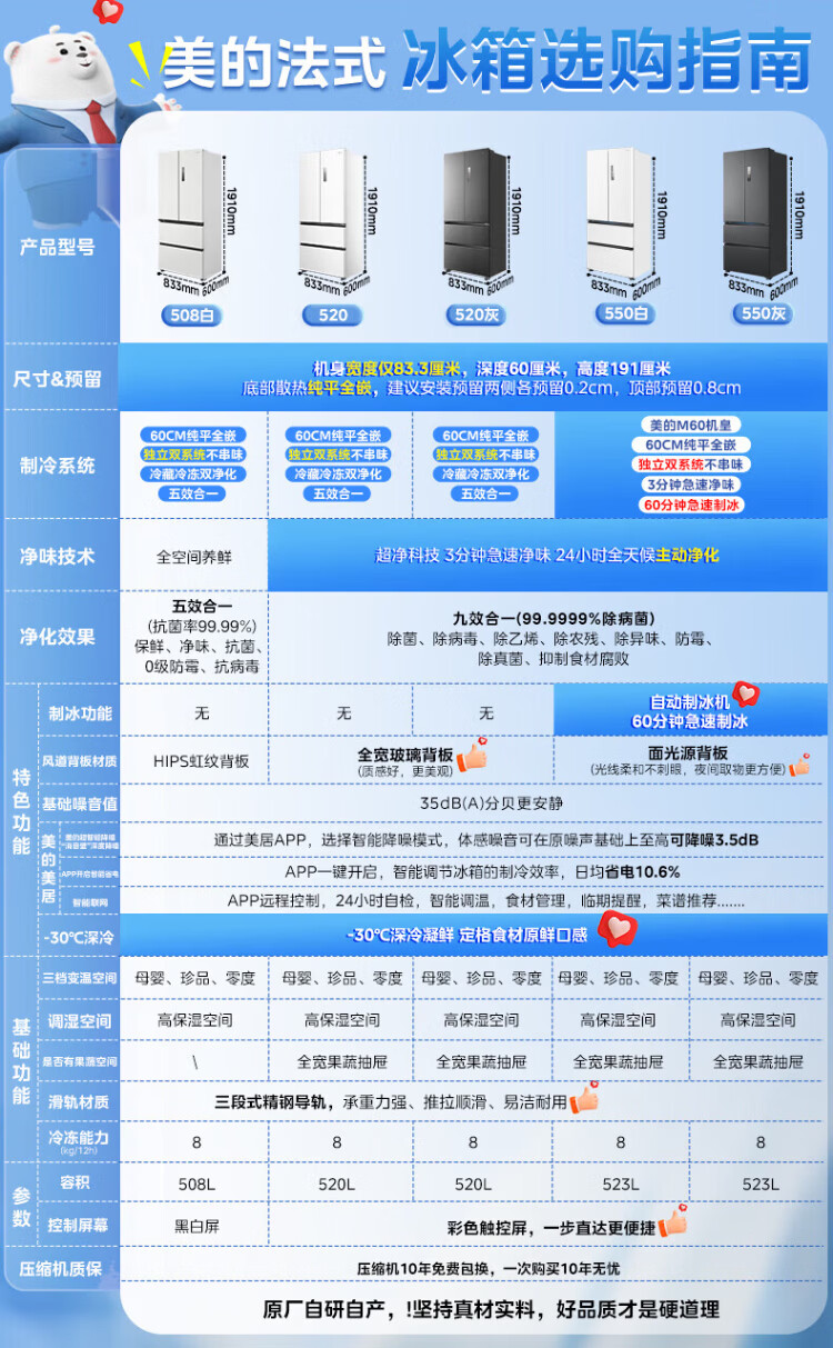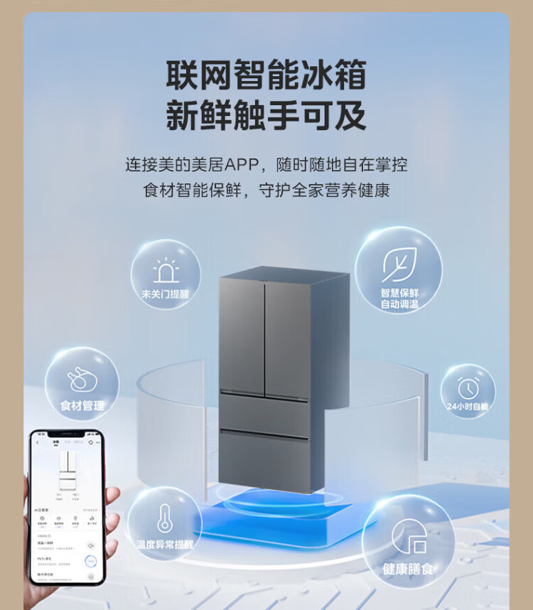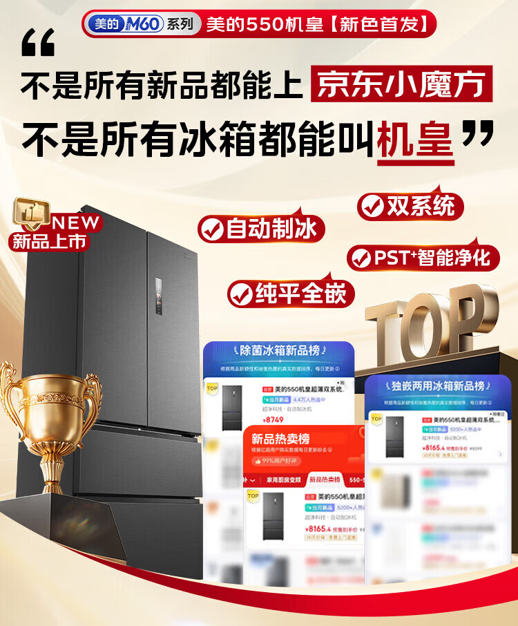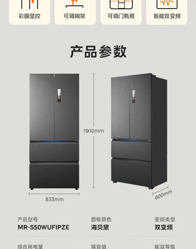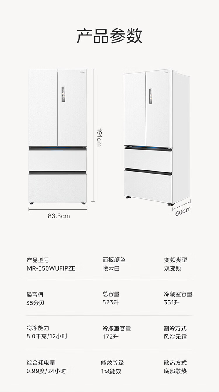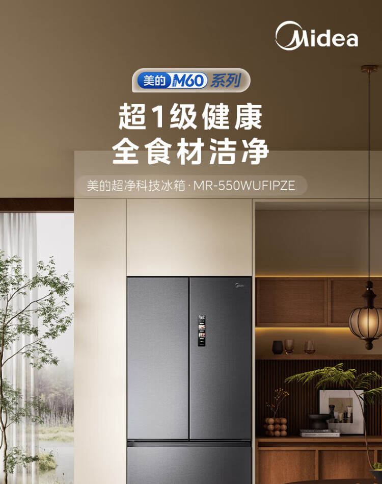 Midea Machine King 550 French style multi-door M60 series ultra-thin flat screen fully embedded one-level sterilization and deodorization large capacity household ice making all-in-one refrigerator dual system MR-550WUFIPZE MR-550WUFIPZE Xiyun White