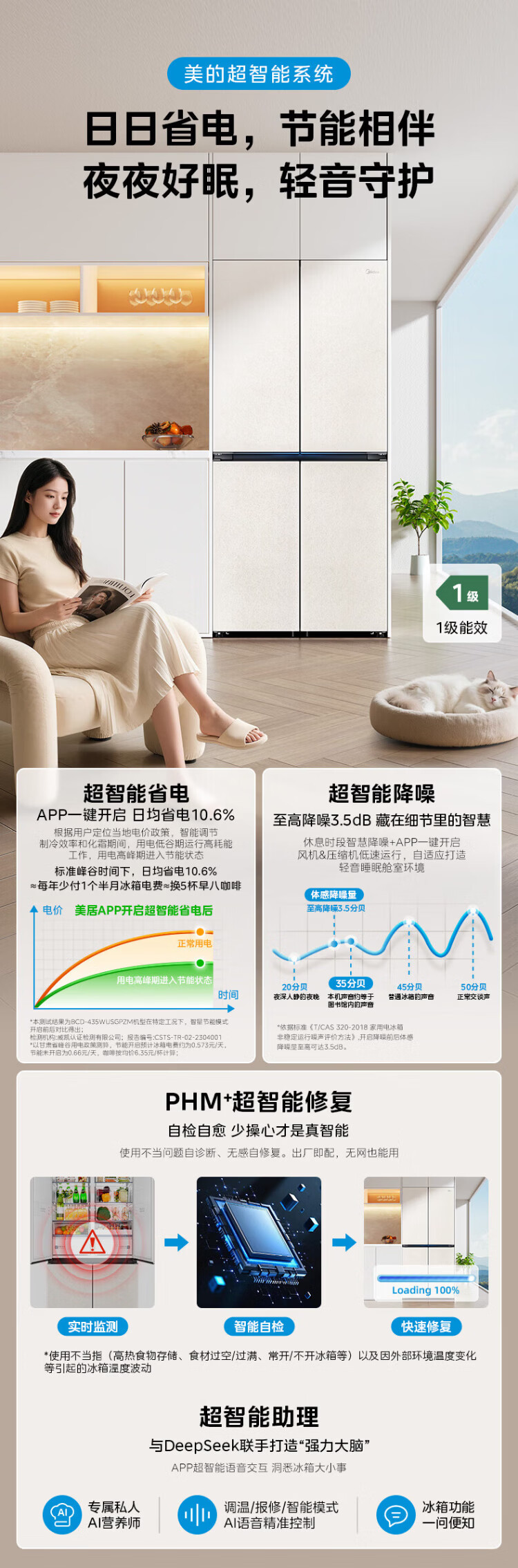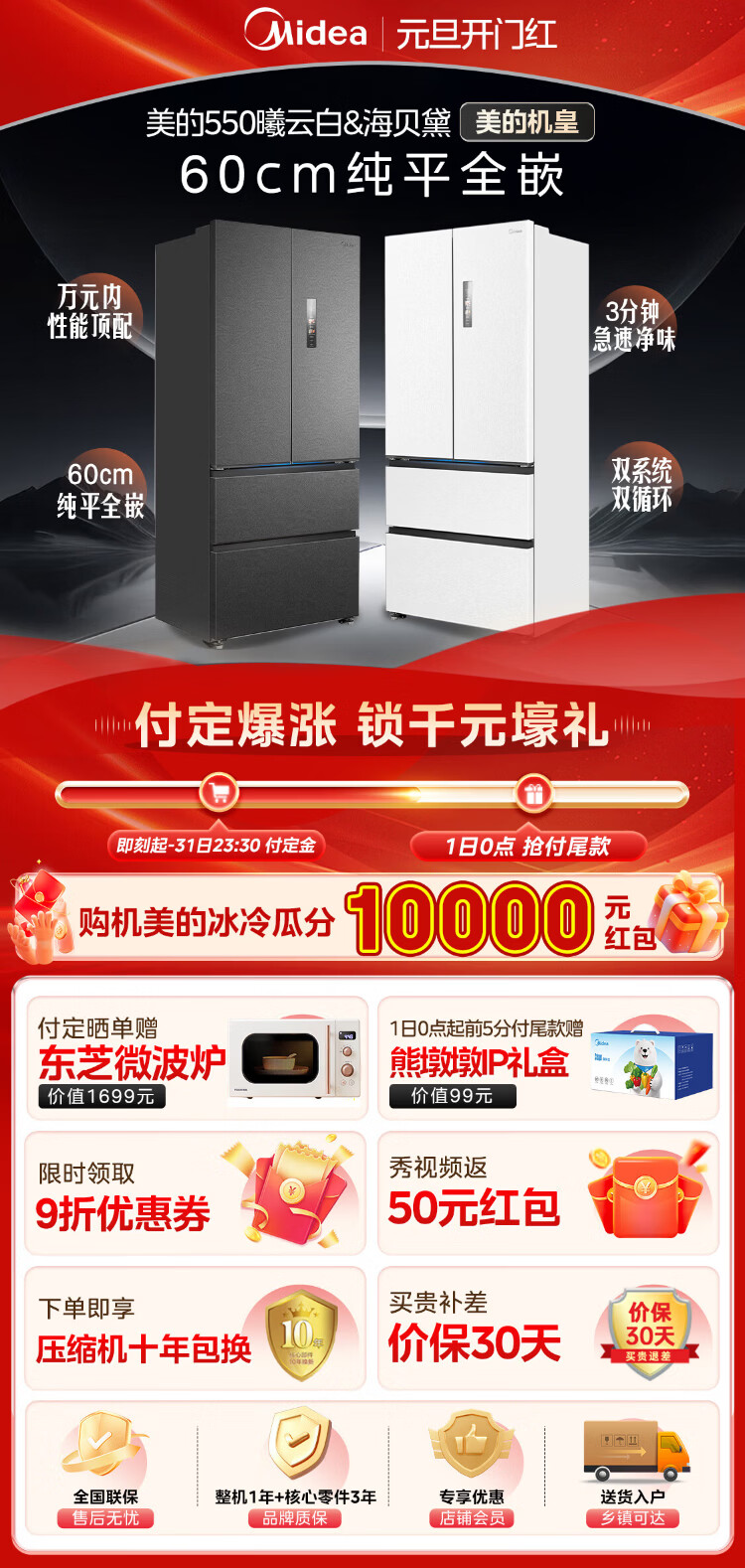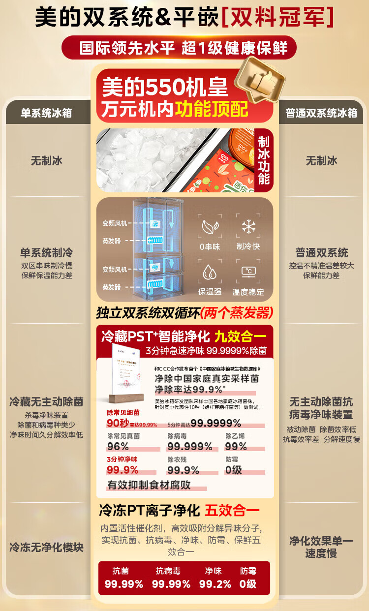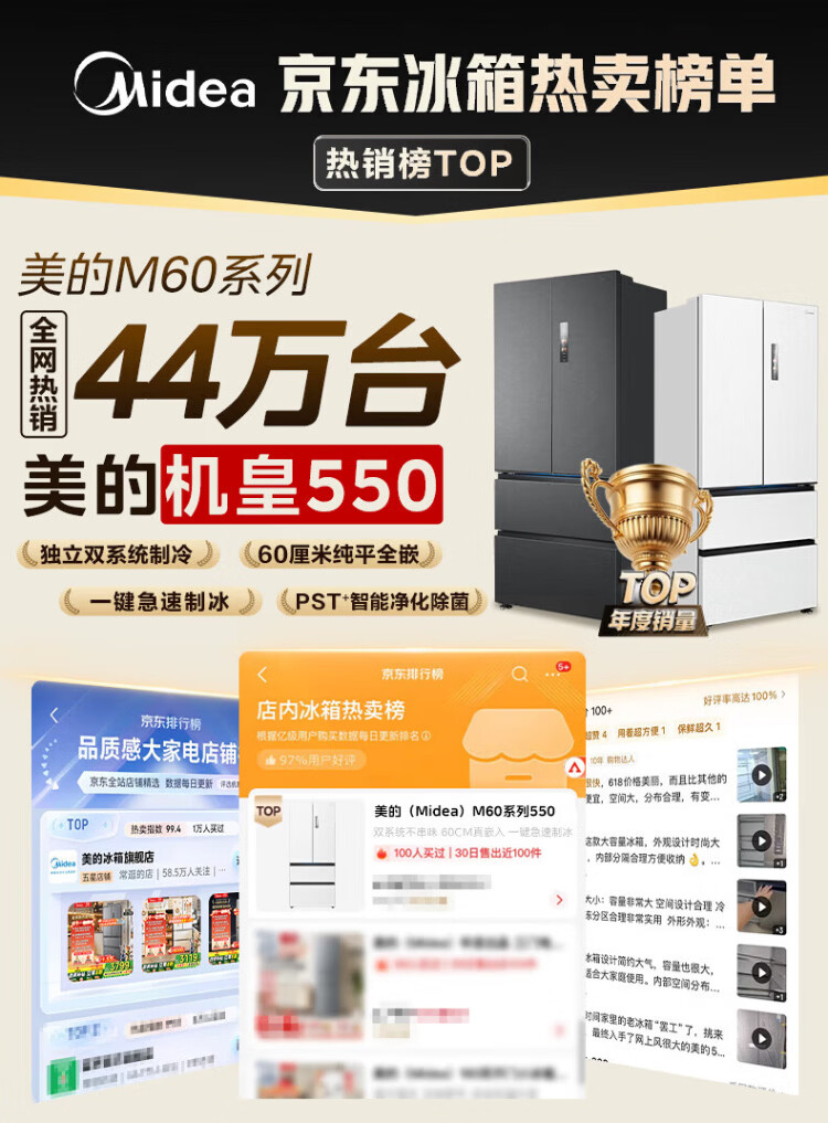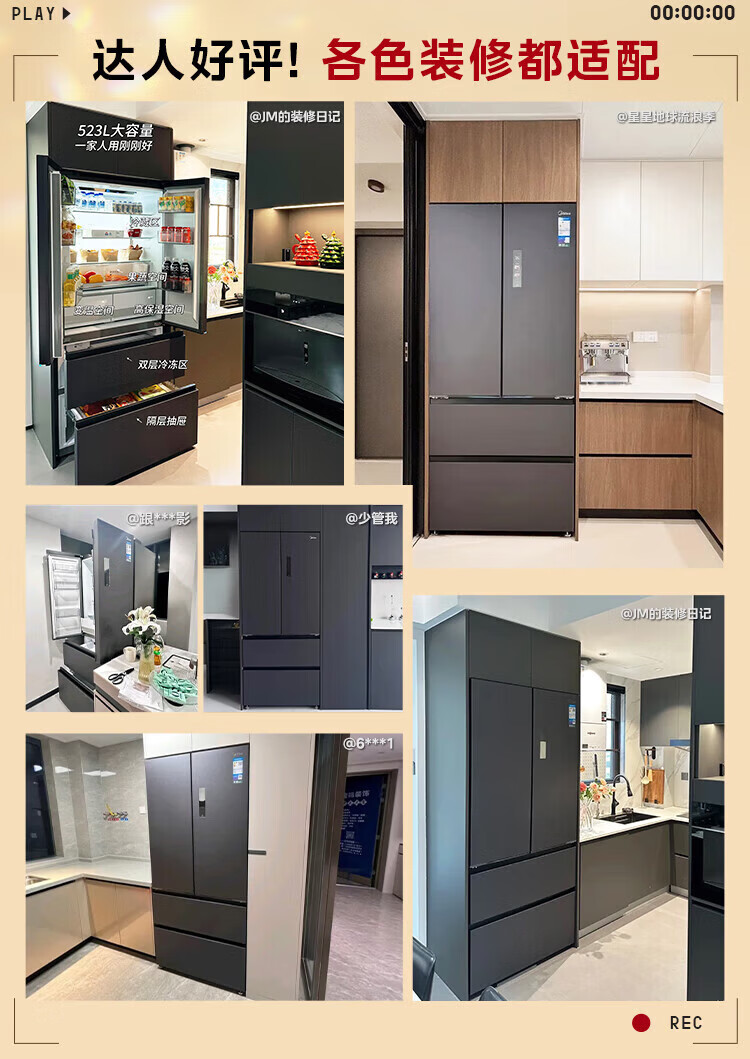 Midea Machine King 550 French style multi-door M60 series ultra-thin flat screen fully embedded one-level sterilization and deodorization large capacity household ice making all-in-one refrigerator dual system MR-550WUFIPZE MR-550WUFIPZE Xiyun White