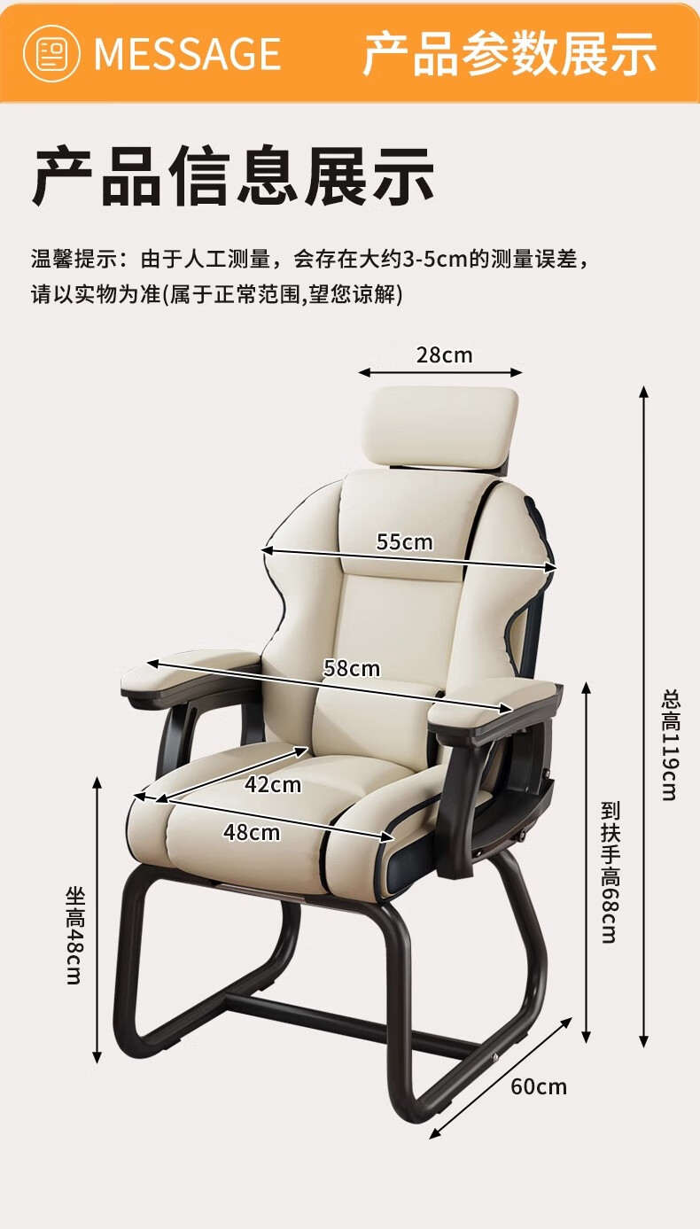 Xingqibao computer chair sofa chair bow chair ergonomic chair study office home e-sports back seat white black edge + headrest sponge style