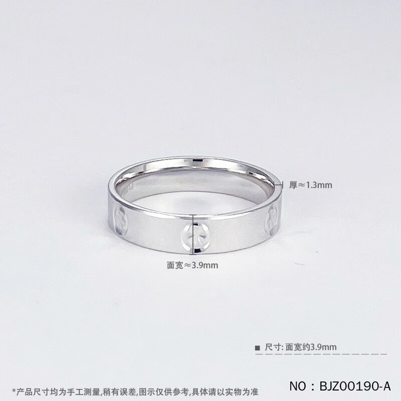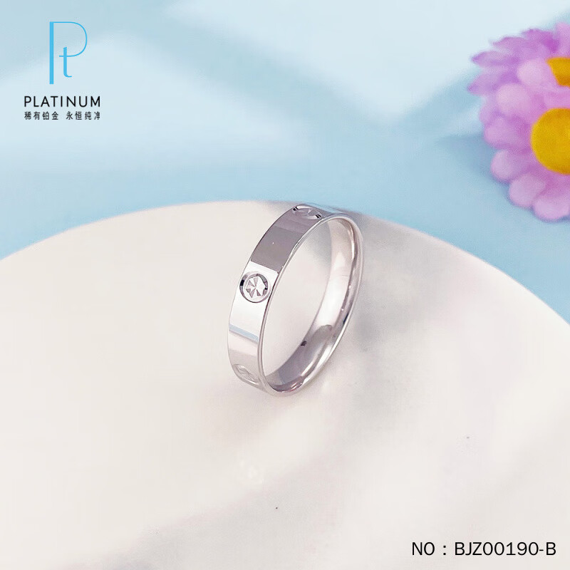 Jibaolou PT950 platinum ring for men and women, couple style, screw pattern, rice-shaped fixed mouth platinum ring, size 12, 4.95g