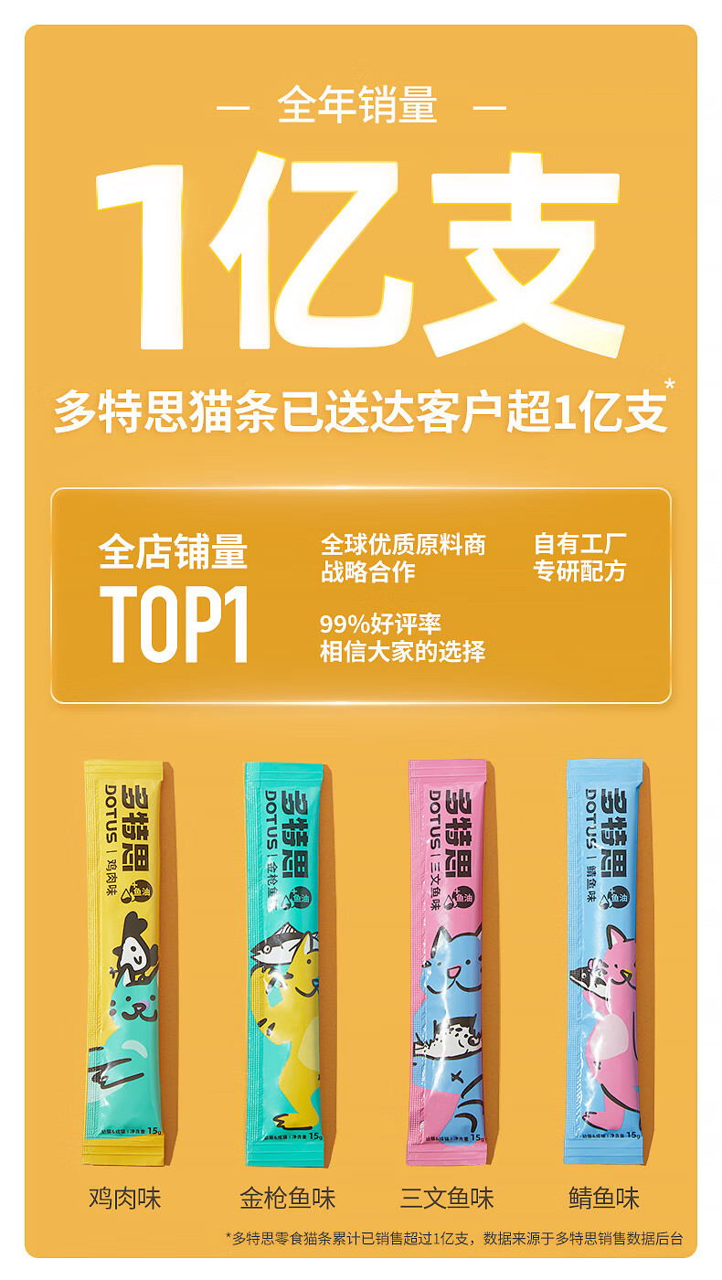 DOTUS Cat Strips 100 Count Full Box Cat Snacks Interactive Kitten Adult Cat Licking Sauce Wet Food Canned Cat No Feed Attractant Nutrition Suitable for Kittens to Try 10 Packs of Food Packs Collect and Purchase Priority Shipping