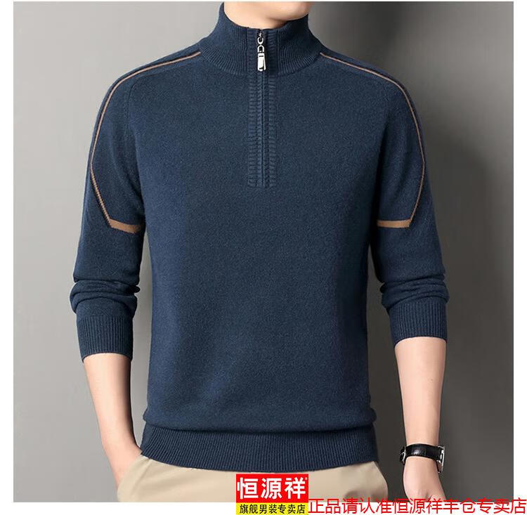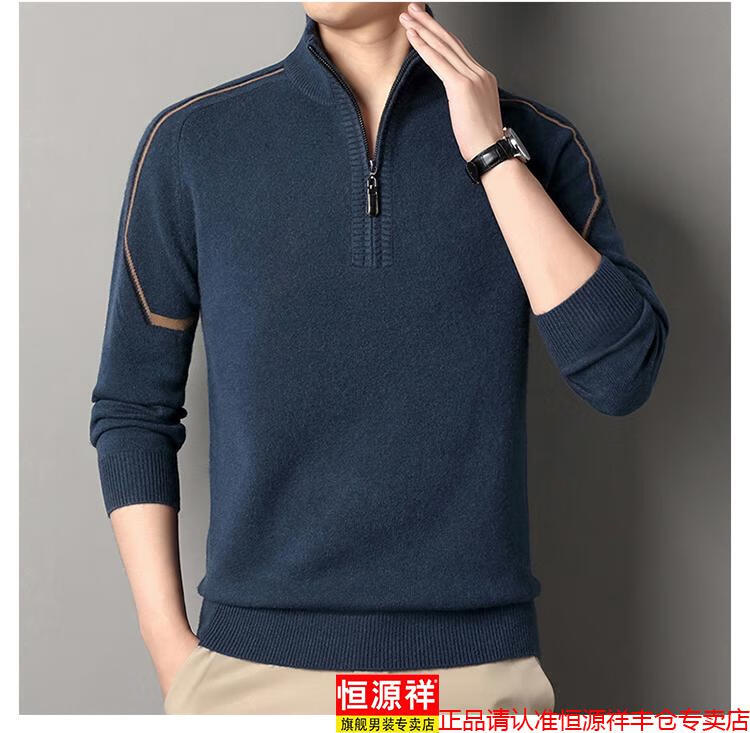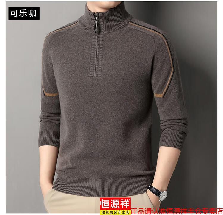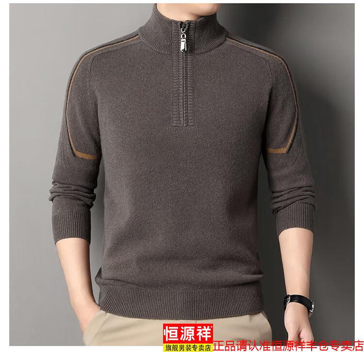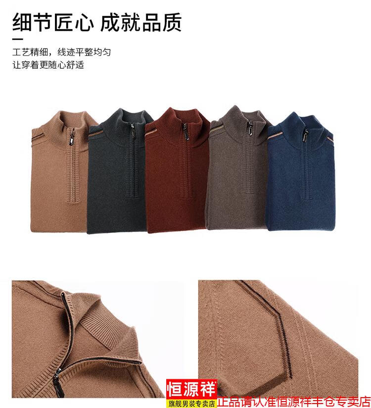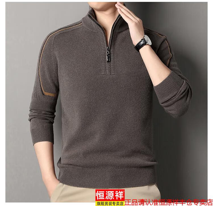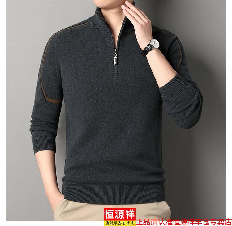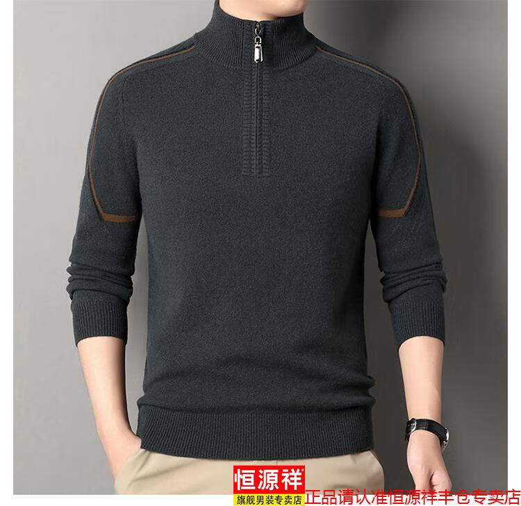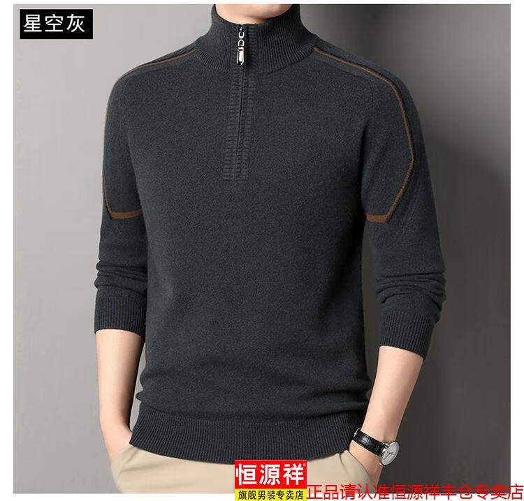 Hengyuanxiang light luxury high-end wool sweater men's wool half-high zipper collar middle-aged winter thickened cashmere knitted sweater starry sky gray 165/M (recommended 100-120 Jin Jin equals 0.5 kg to wear)