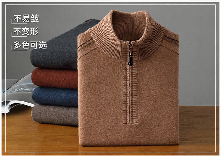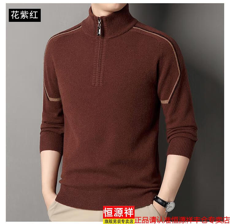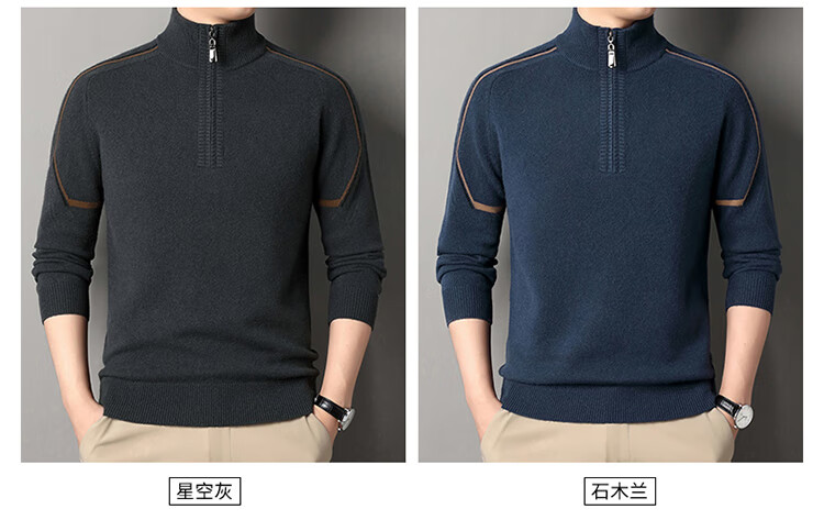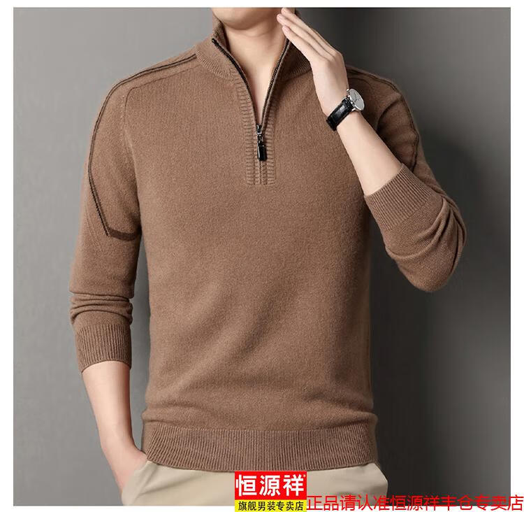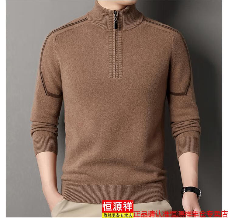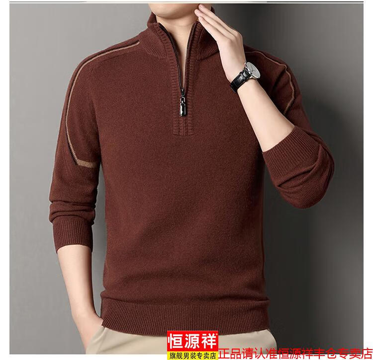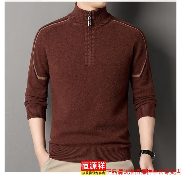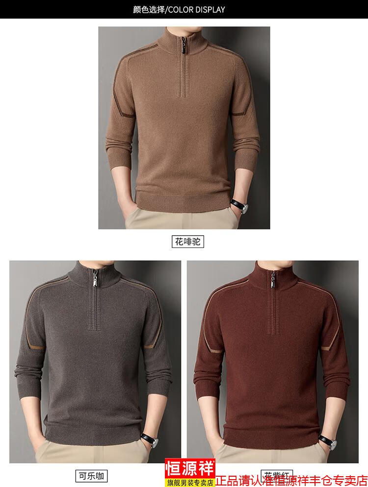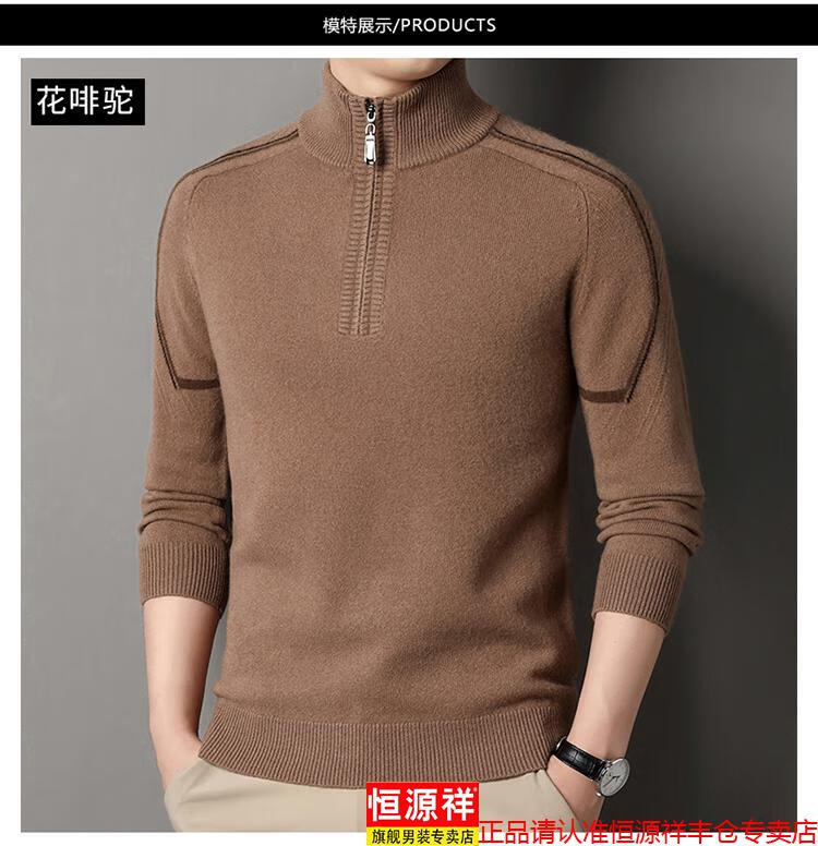 Hengyuanxiang light luxury high-end wool sweater men's wool half-high zipper collar middle-aged winter thickened cashmere knitted sweater starry sky gray 165/M (recommended 100-120 Jin Jin equals 0.5 kg to wear)