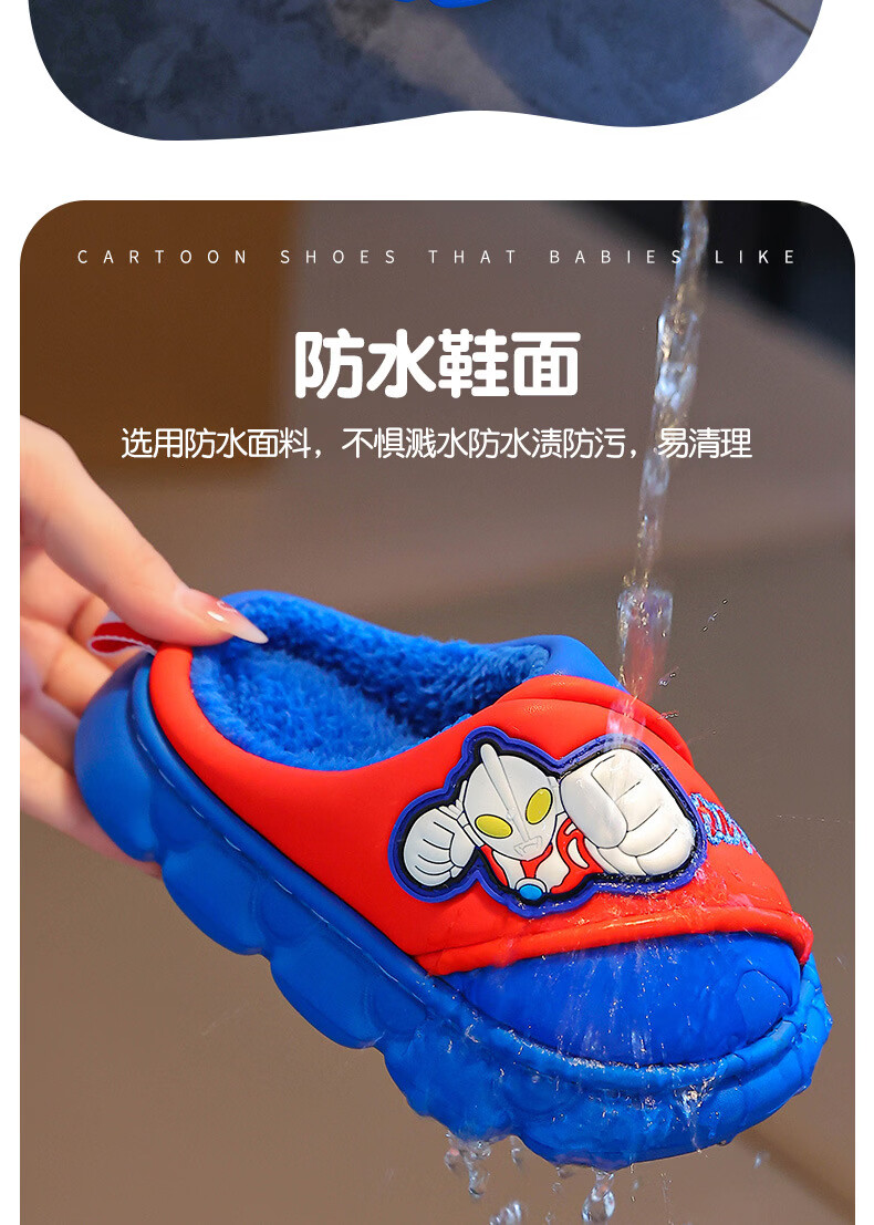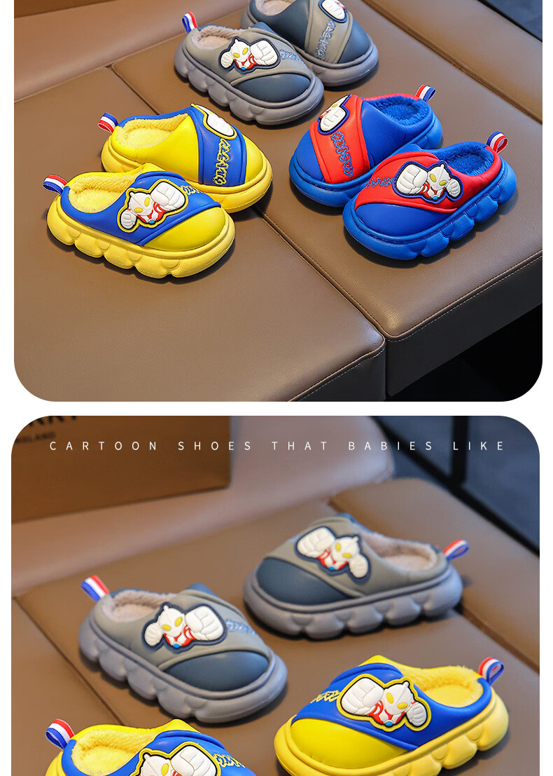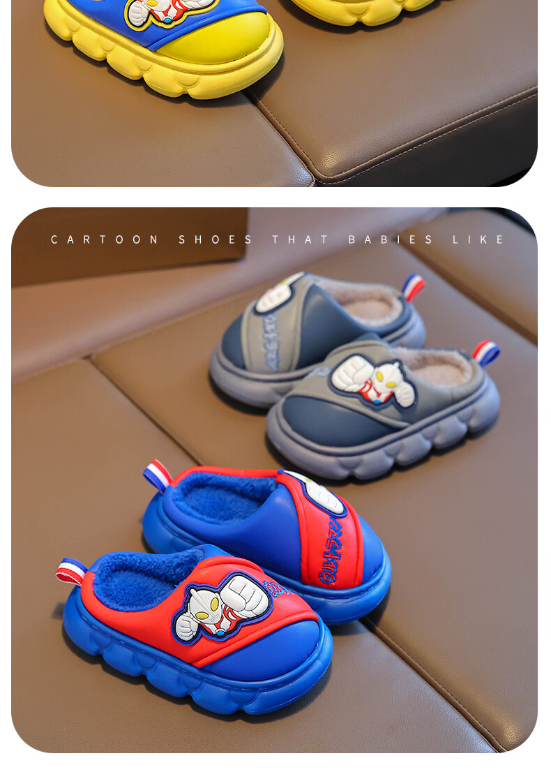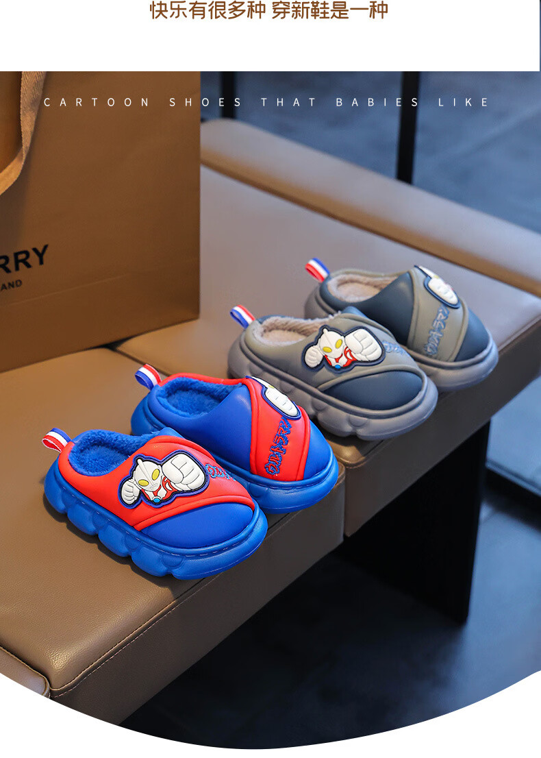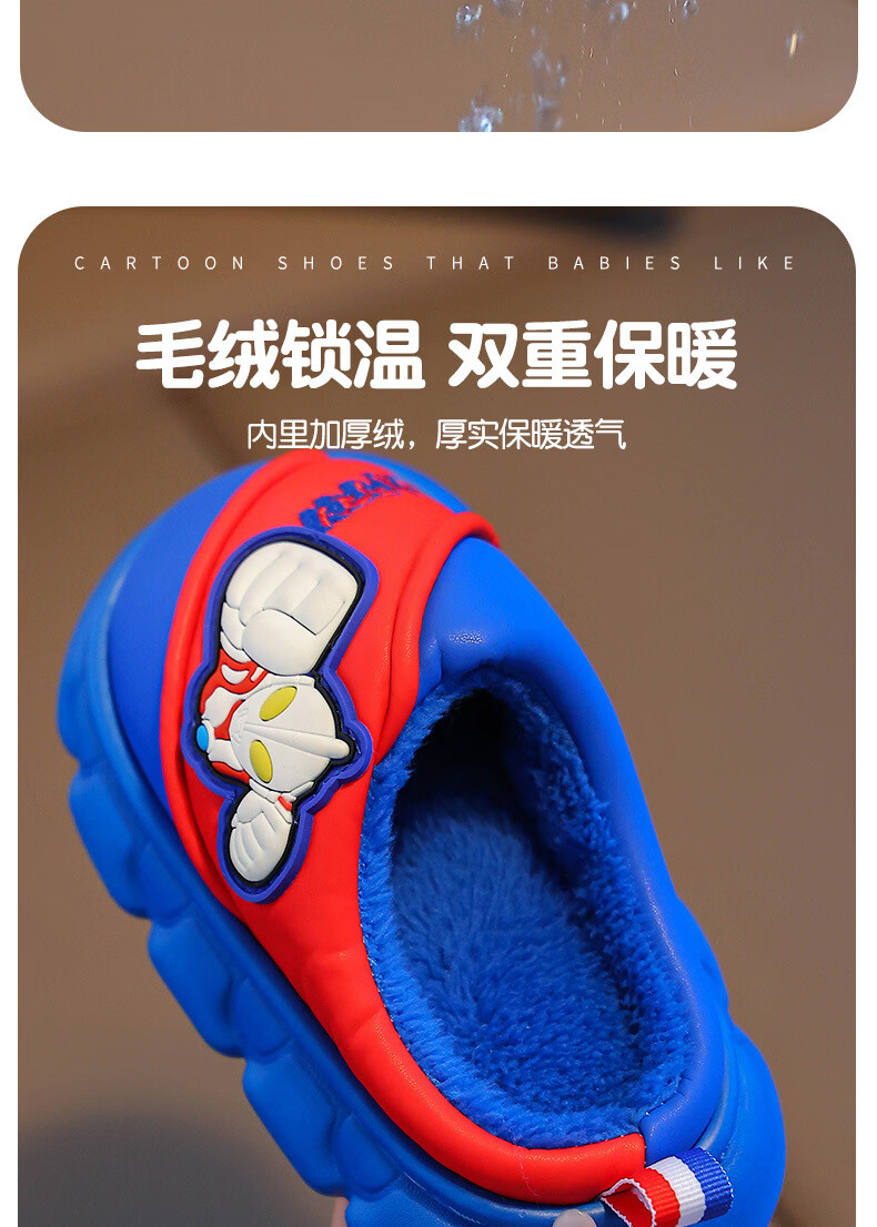 G.duck Ultraman cotton slippers for children and babies in autumn and winter waterproof anti-slip plus plush slippers cartoon boy slippers gray size 24-25 inner length 15cm1-2 years old
