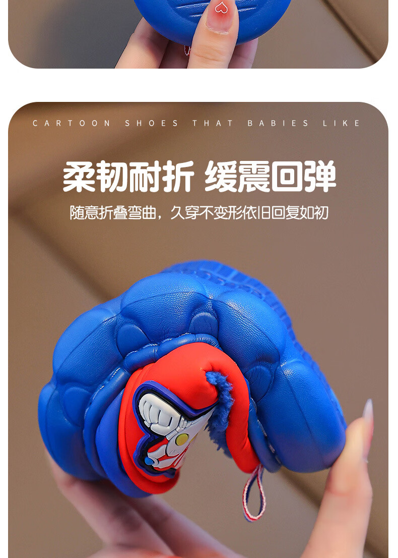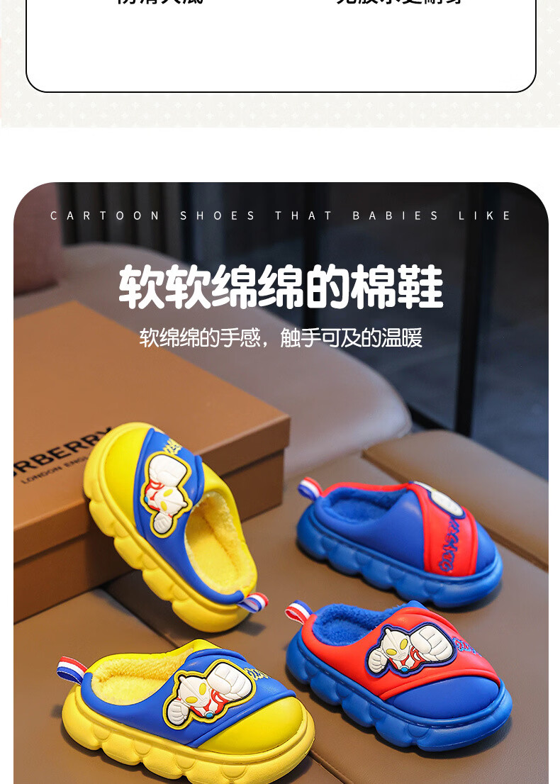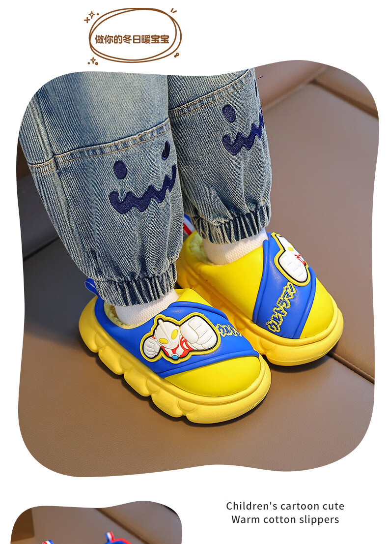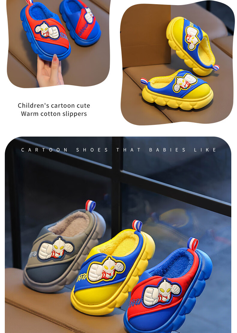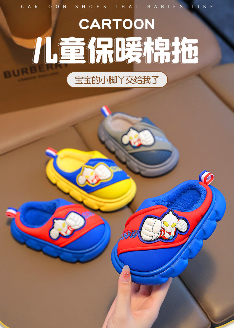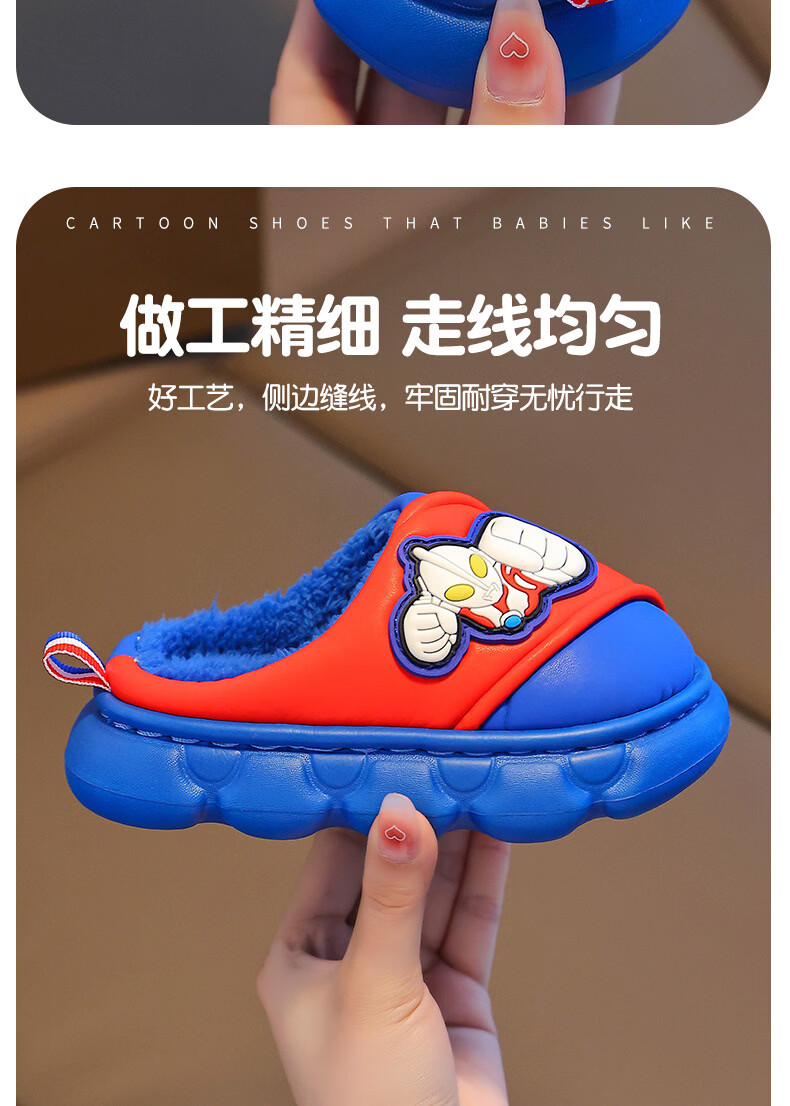 G.duck Ultraman cotton slippers for children and babies in autumn and winter waterproof anti-slip plus plush slippers cartoon boy slippers gray size 24-25 inner length 15cm1-2 years old