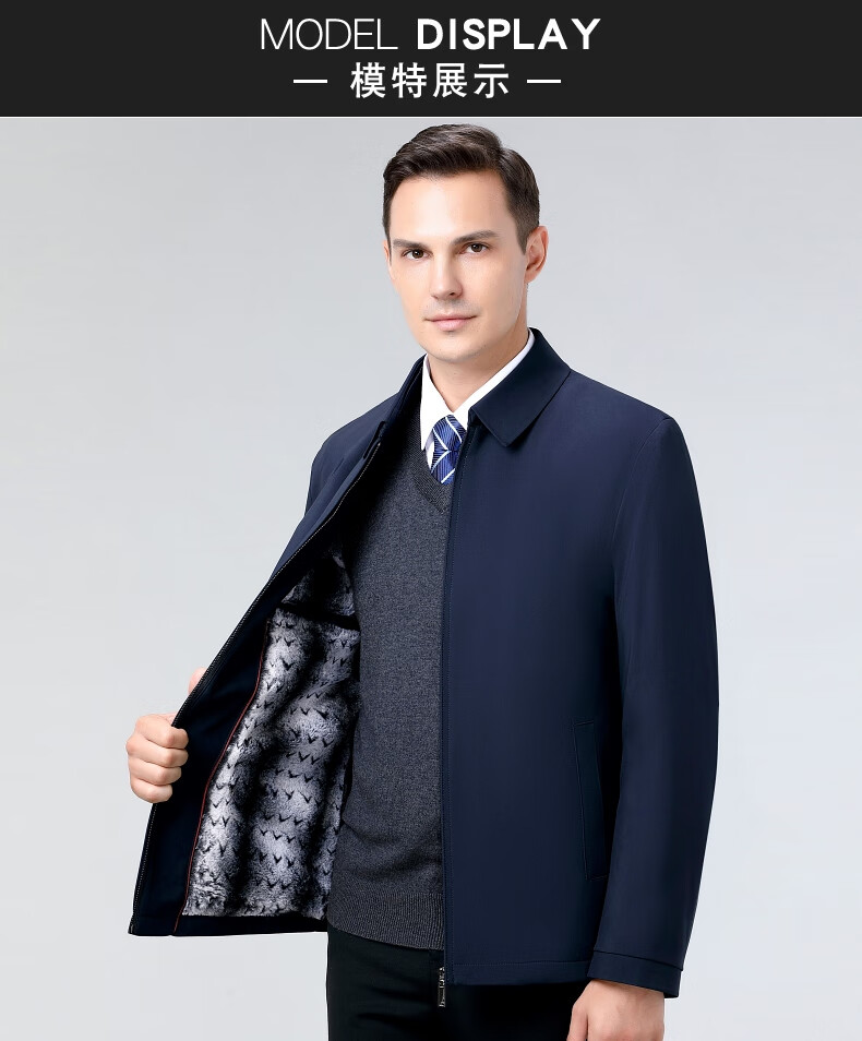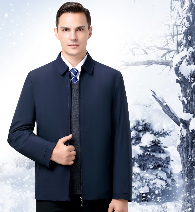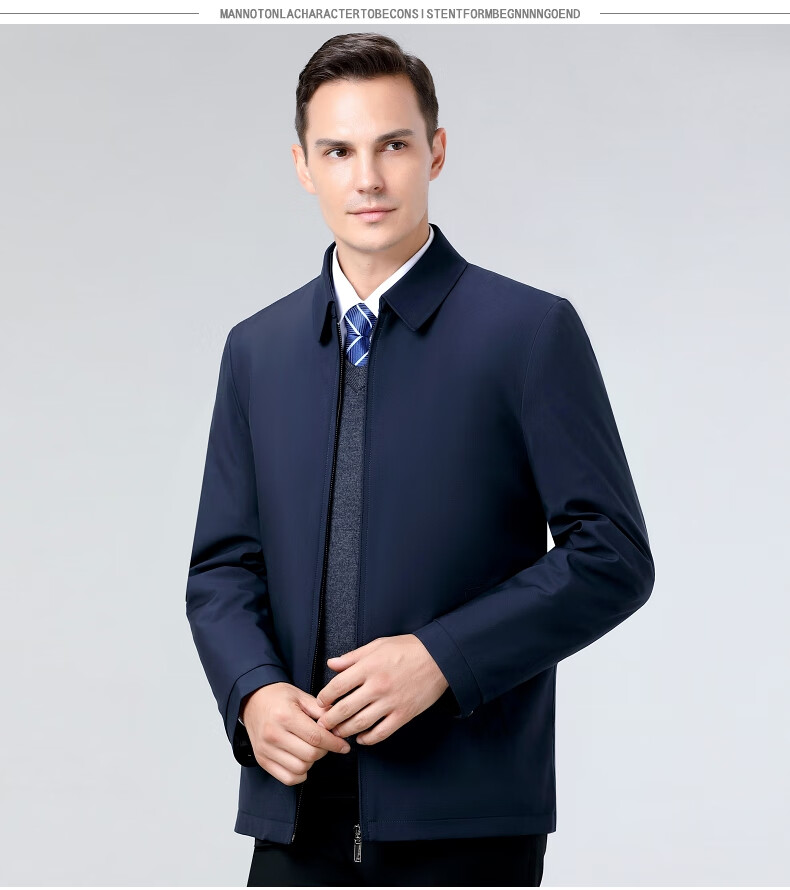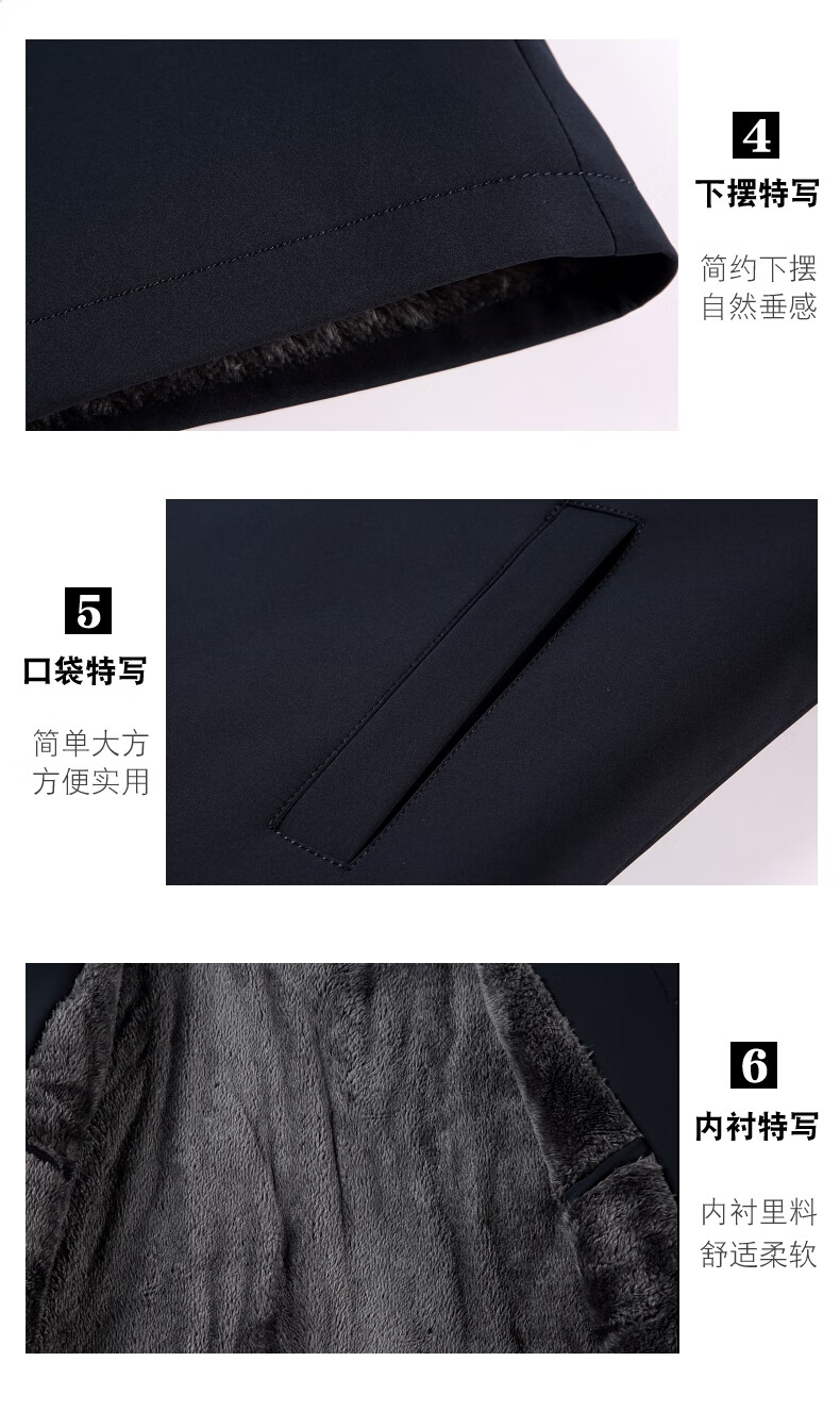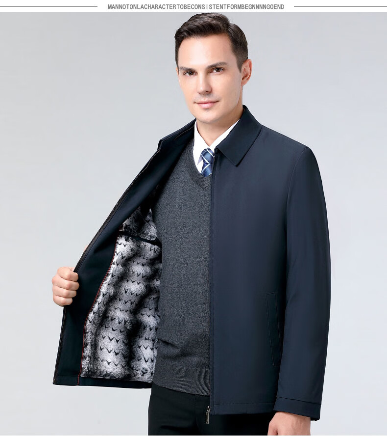 Pierre Cardin jacket men's velvet thickened autumn and winter cotton coat middle-aged and elderly leading cadres administrative dad winter top 5103 dark blue zipper lapel velvet 175/L size recommended 130-145Jin Jin equals 0.5 kg