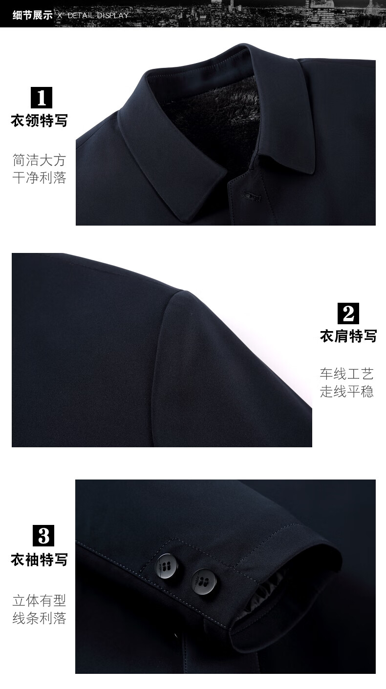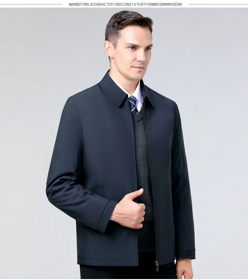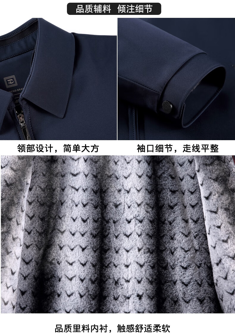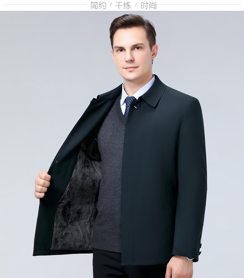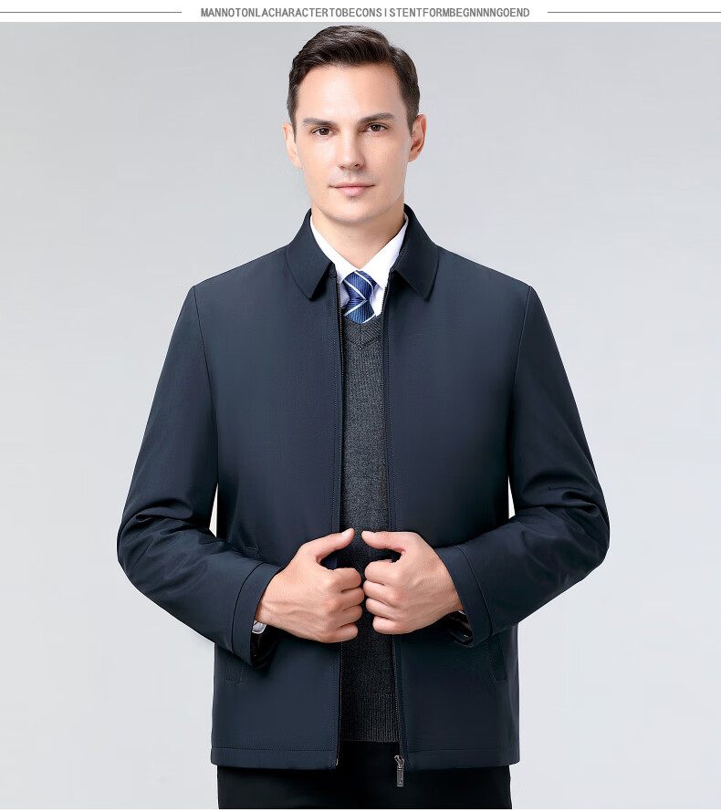 Pierre Cardin jacket men's velvet thickened autumn and winter cotton coat middle-aged and elderly leading cadres administrative dad winter top 5103 dark blue zipper lapel velvet 175/L size recommended 130-145Jin Jin equals 0.5 kg