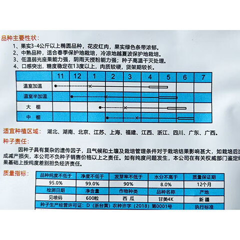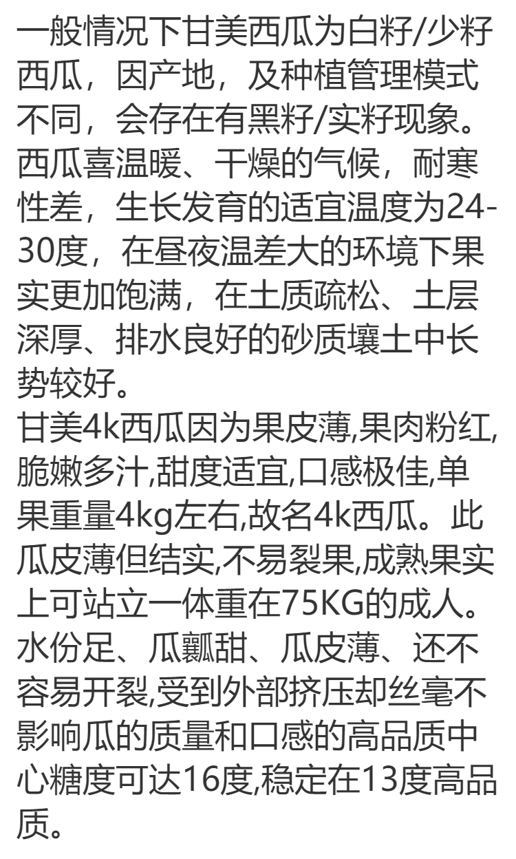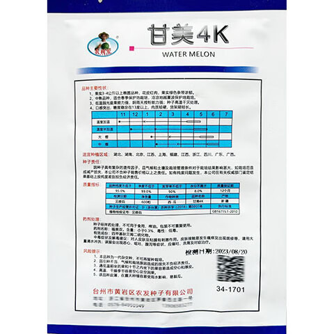 Sweet 4K Watermelon Seeds Spring and Autumn Sowing Station Divine Watermelon Seeds Thin Skin Dry Juice High Sweetness Low Temperature and Low Light Resistance 600 capsules/bag