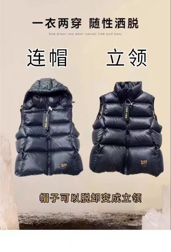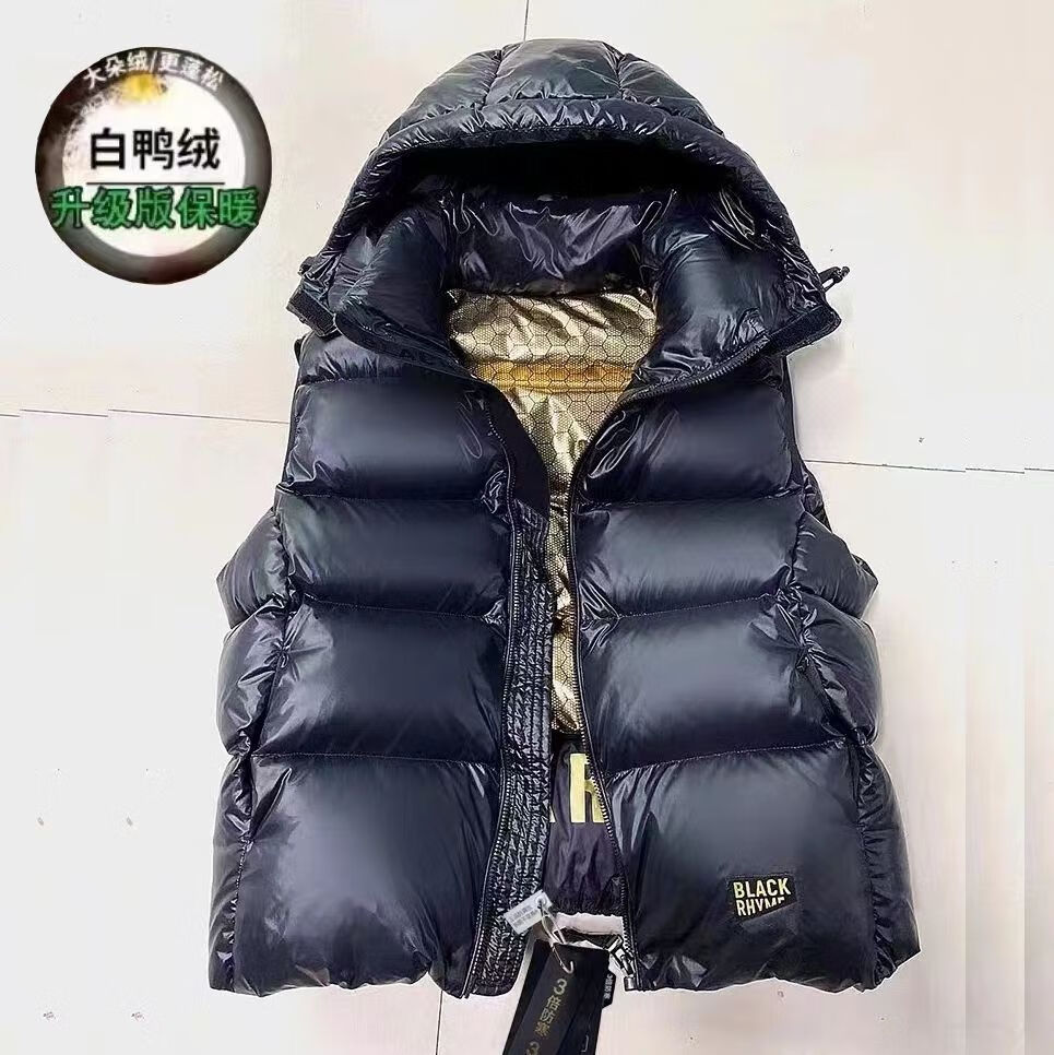 Woodpecker black gold down vest women's short winter new thickened warm vest hooded vest vest jacket trendy black L (120-140Jin Jin equals 0.5 kg)
