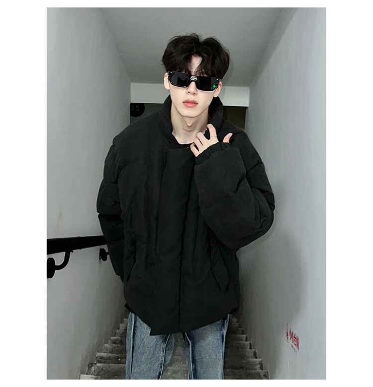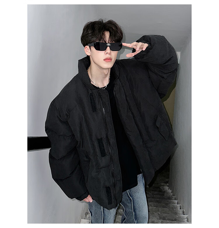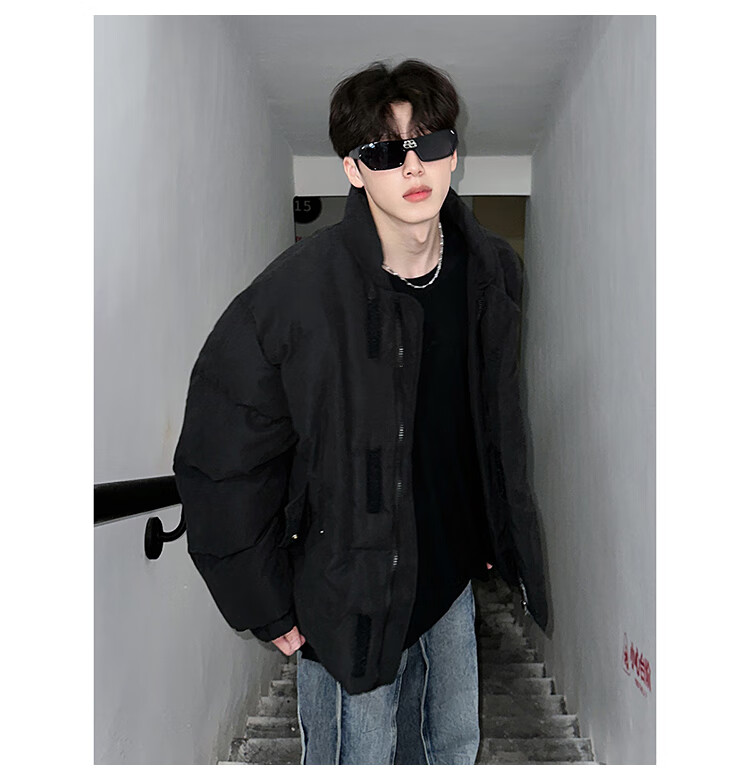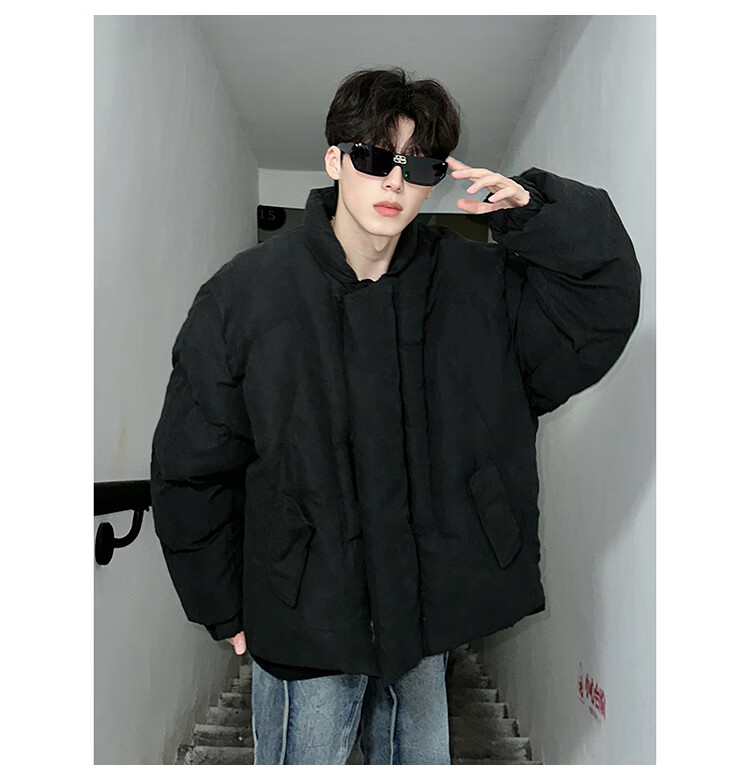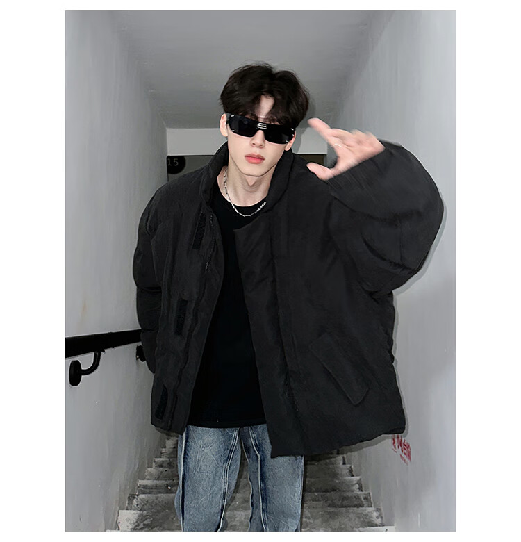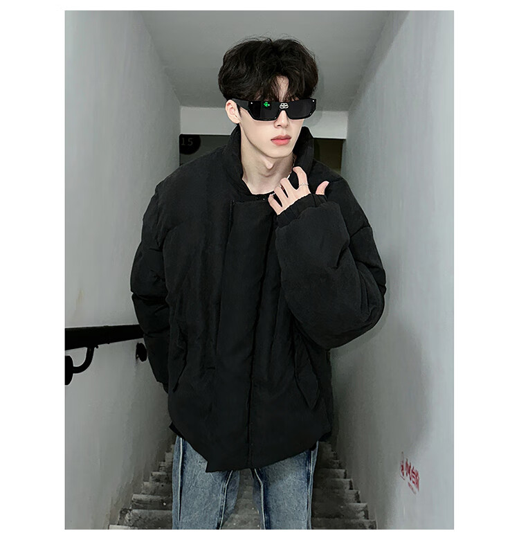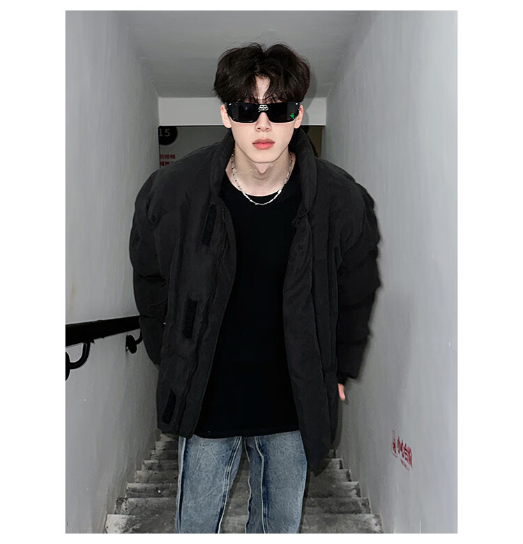 Poke American Suede Cotton Jacket Men's Winter New High Street Fashion Brand Thick Warm Stand-up Collar Cotton Jacket Loose and Versatile Khaki XL