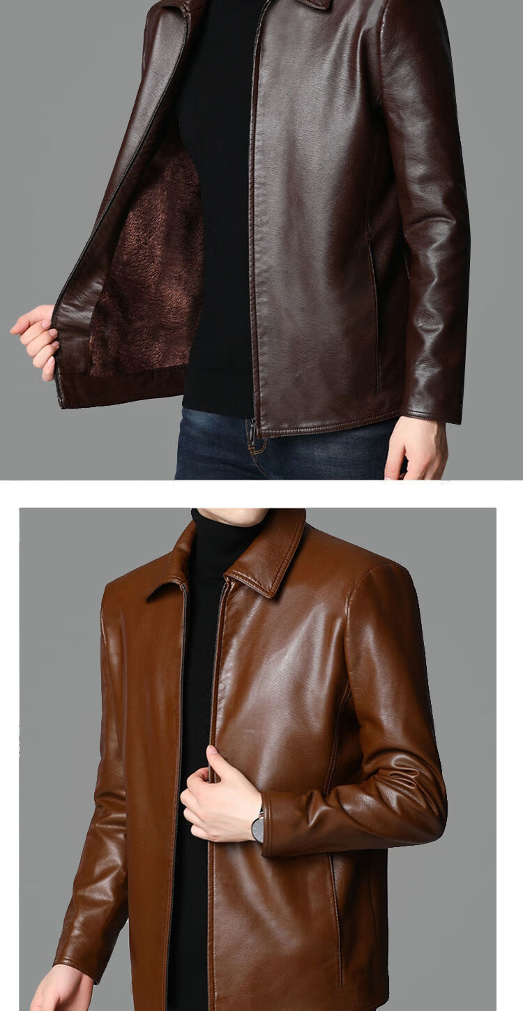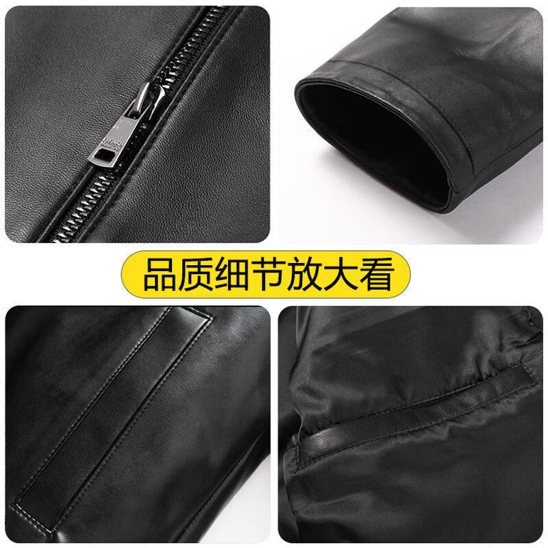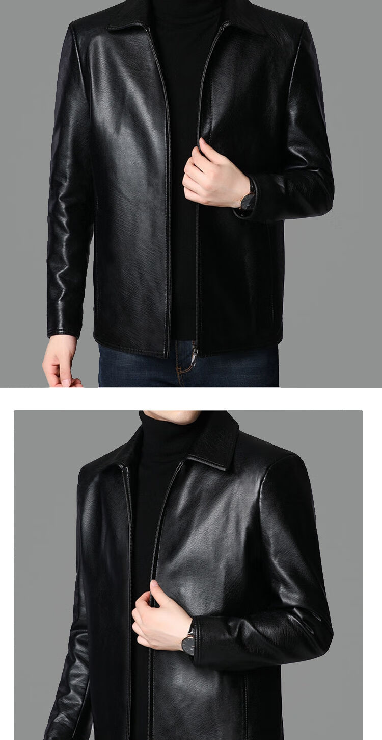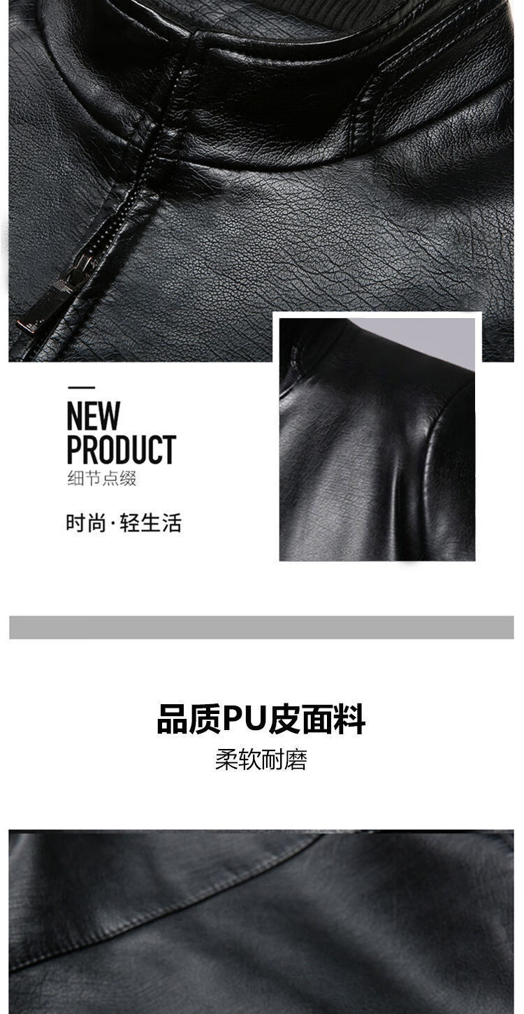 Chaoyun Yue Autumn and Winter Plus Velvet Leather Jackets for Middle-aged and Old Men Leather Jackets Winter Men's Clothes Spring and Autumn Stand Collar Black Thin Section S 165/Suitable for Weight (90-110Jin Jin is equal to 0.5 kg)