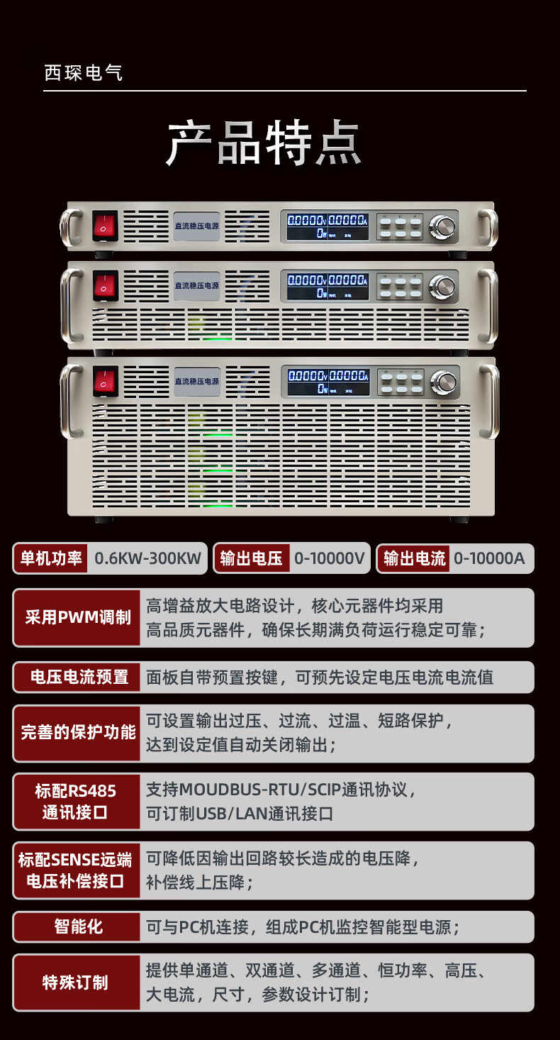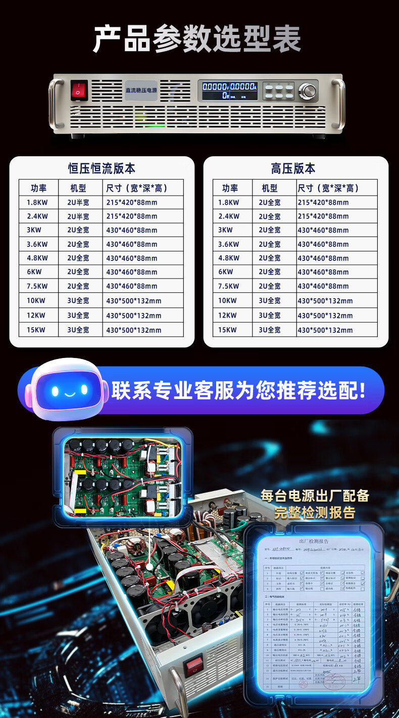 High power DC adjustable regulated power supply high voltage high current programmable constant voltage constant current constant power heating output aging test 2.4KW 0-1000V