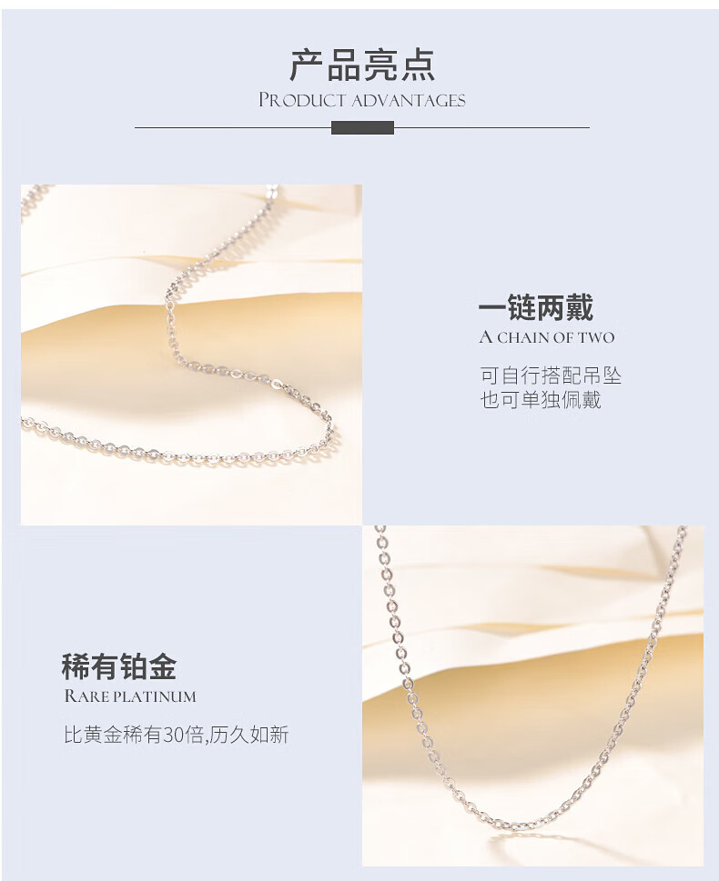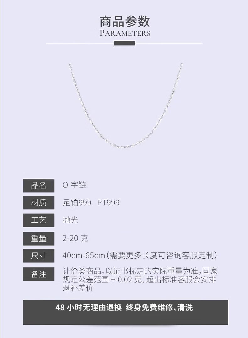 Xinqiu versatile PT999 platinum necklace classic O-shaped chain for women and men platinum clavicle chain pendant with chain PT999 platinum 3.44g (40cm)