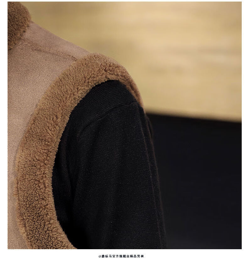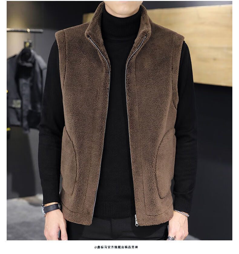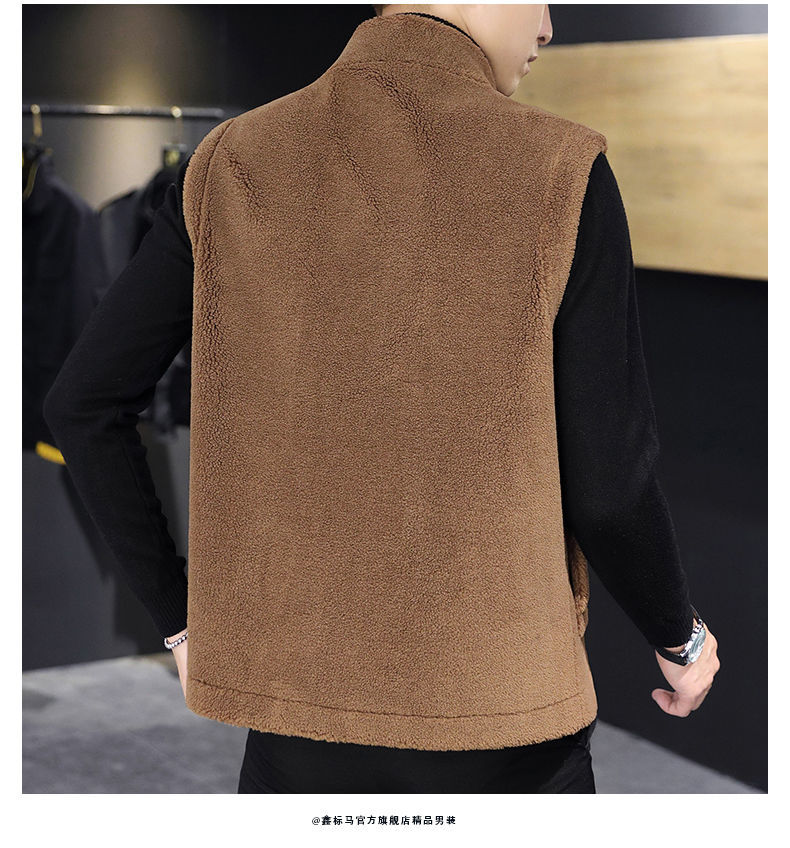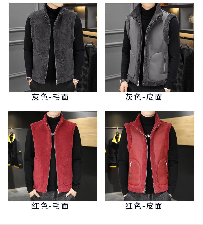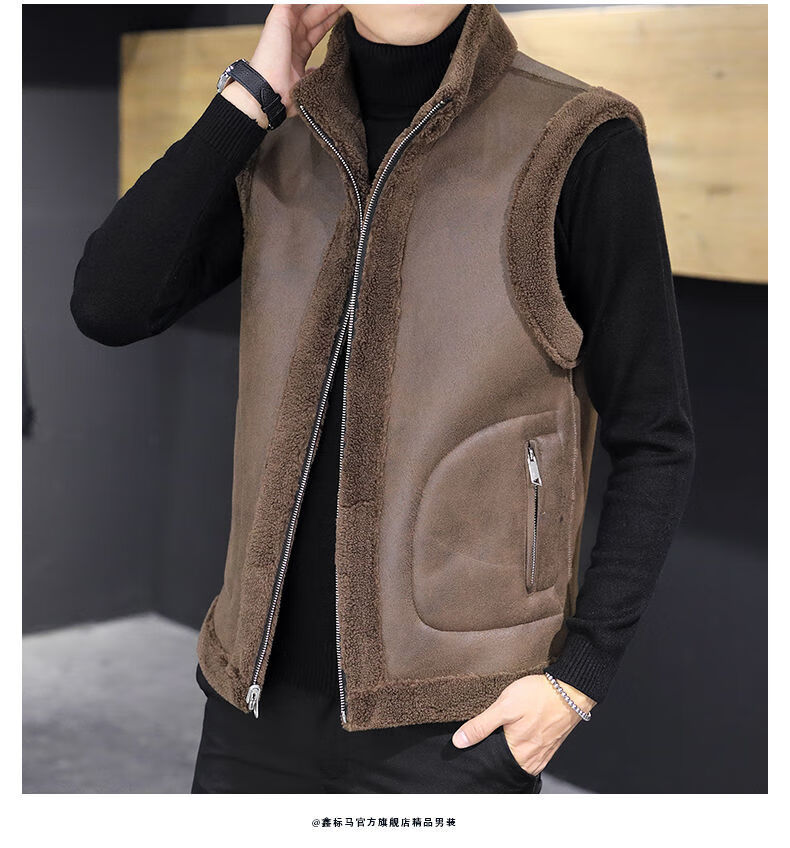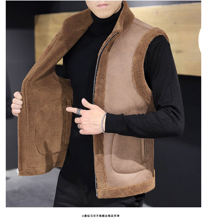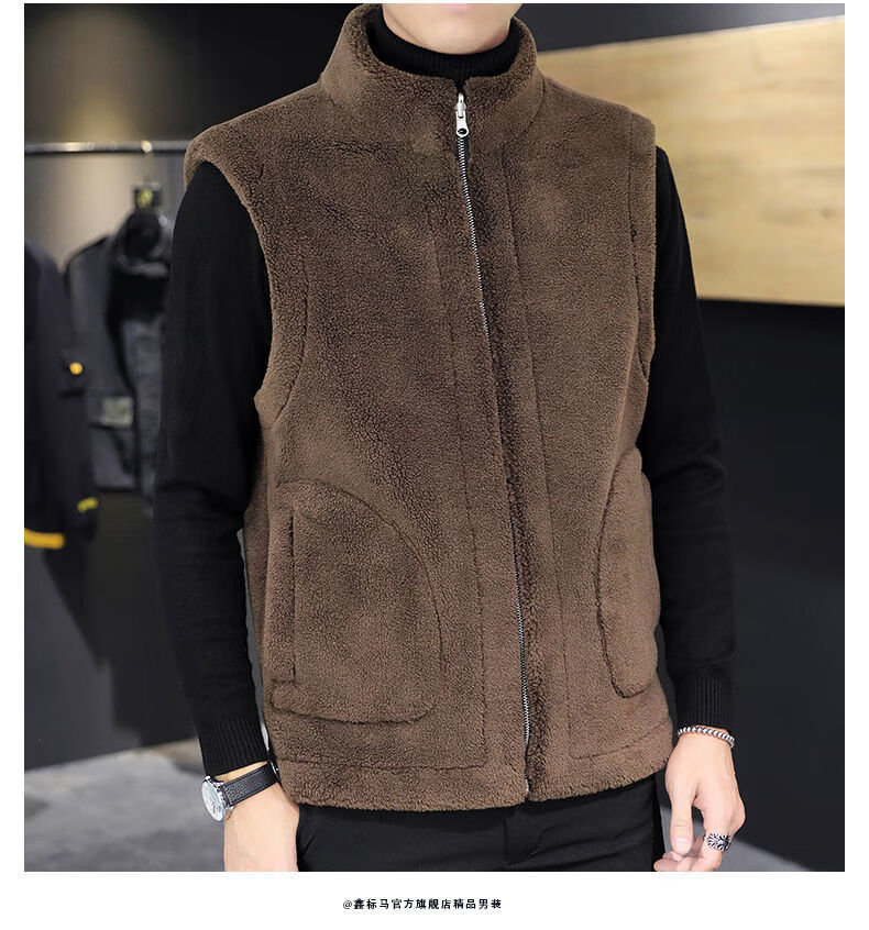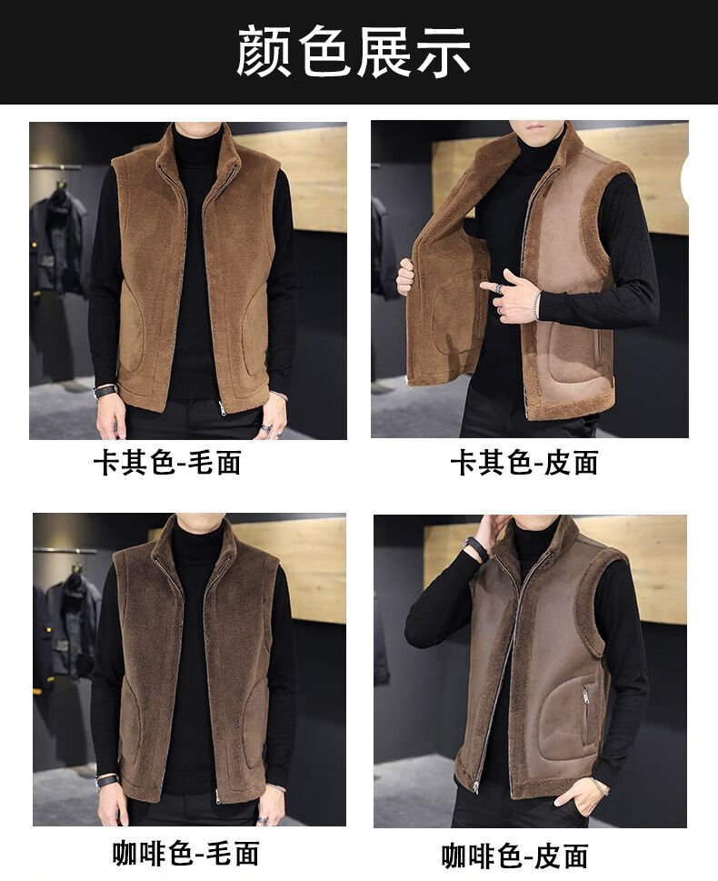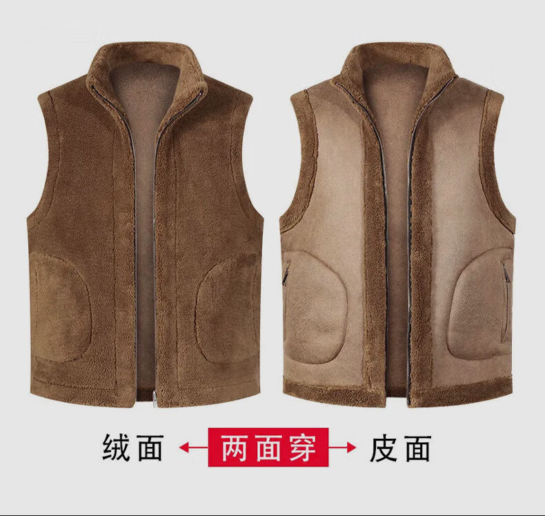 Woodpecker's new high-end winter double-sided men's vest for cold protection and warmth, lamb velvet vest for outer wear with thickened winter clothes, brown/double-sided vest XL Recommended 135-150Jin Jin equals 0.5kg