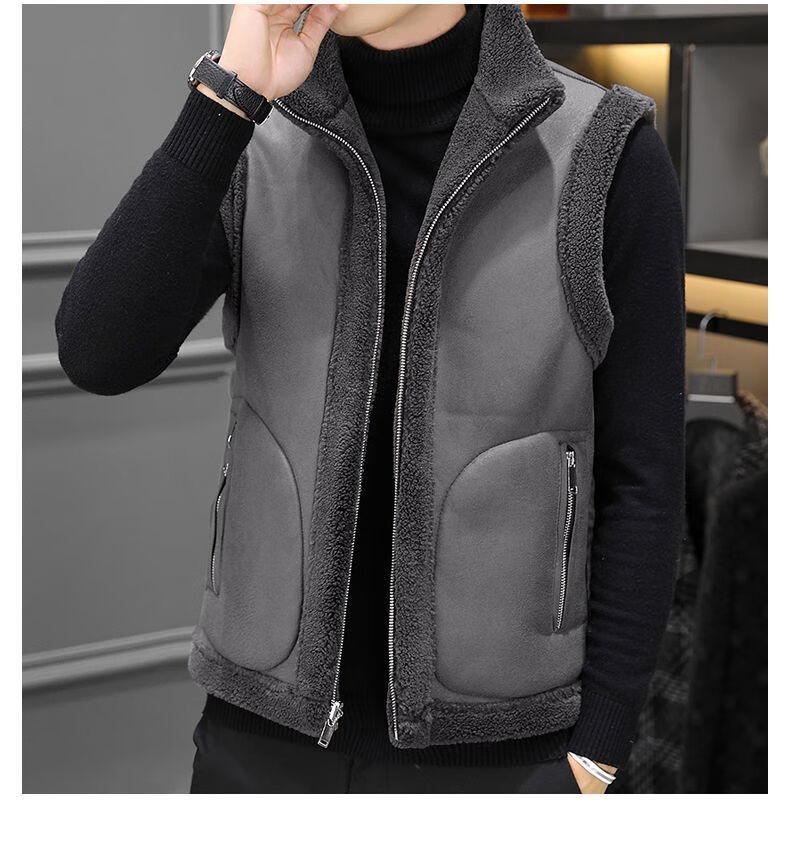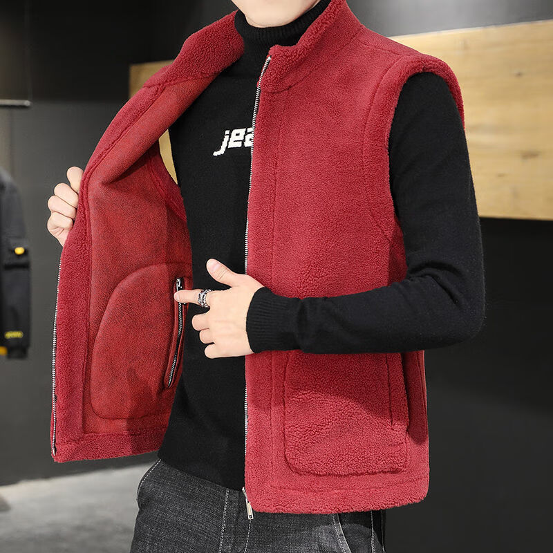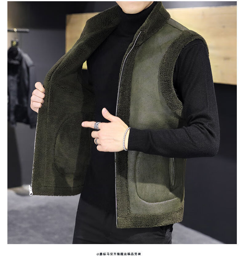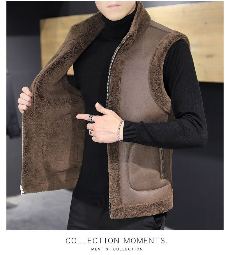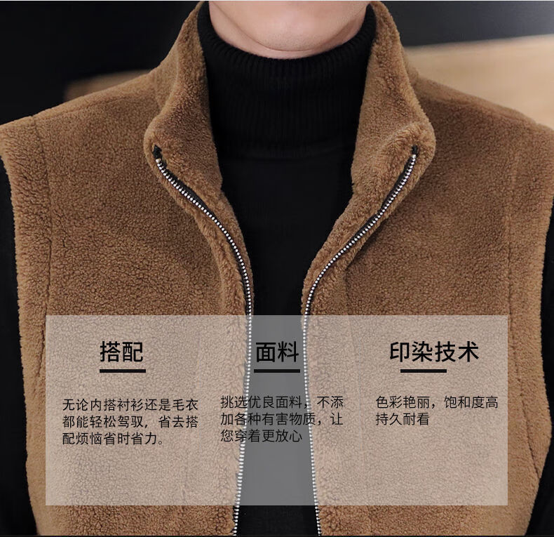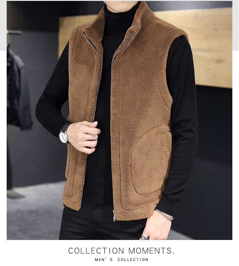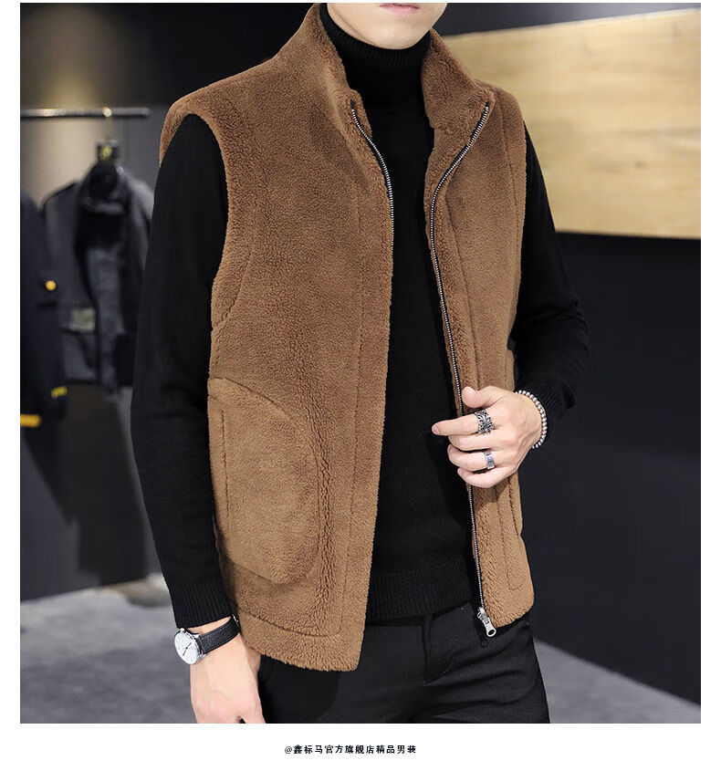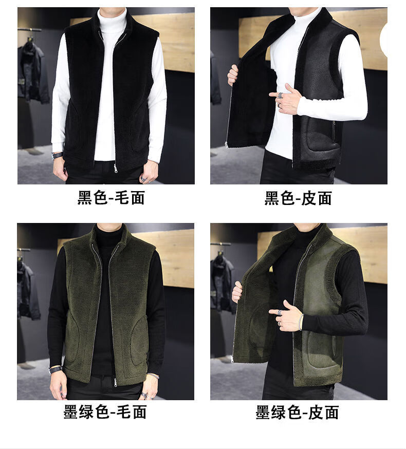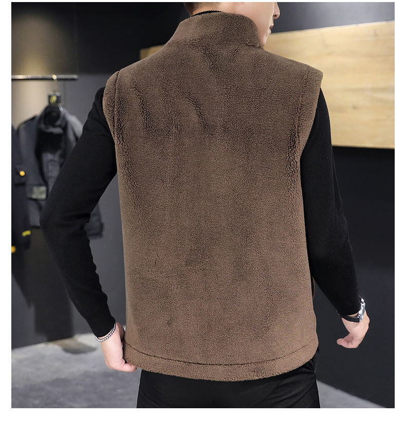 Woodpecker's new high-end winter double-sided men's vest for cold protection and warmth, lamb velvet vest for outer wear with thickened winter clothes, brown/double-sided vest XL Recommended 135-150Jin Jin equals 0.5kg