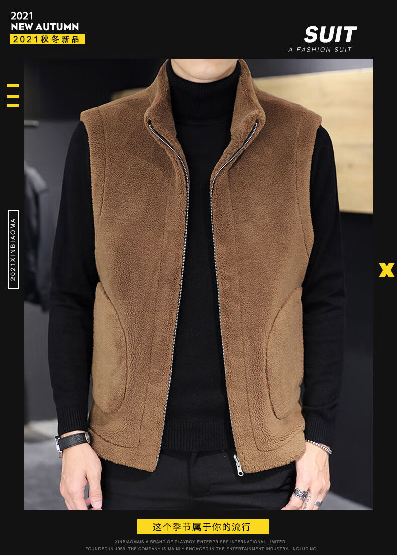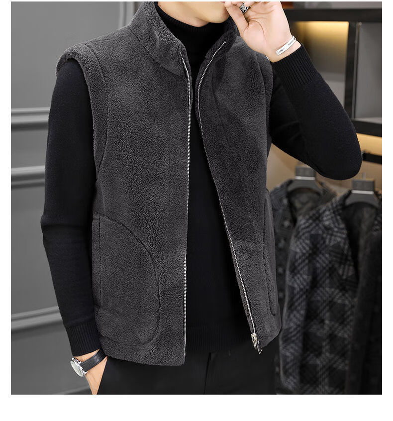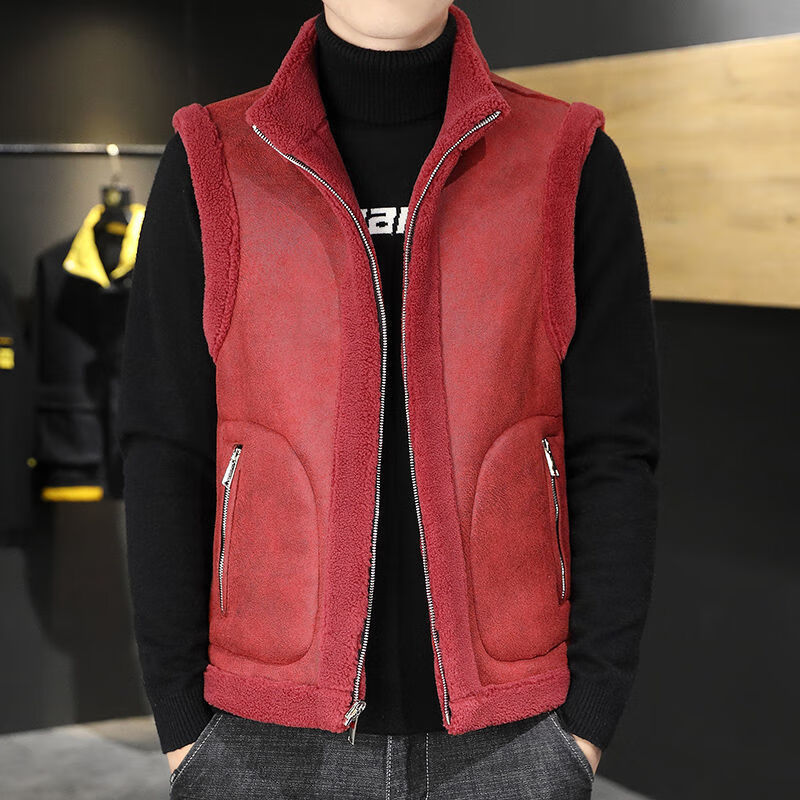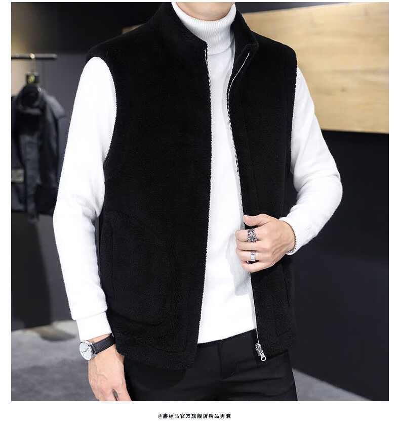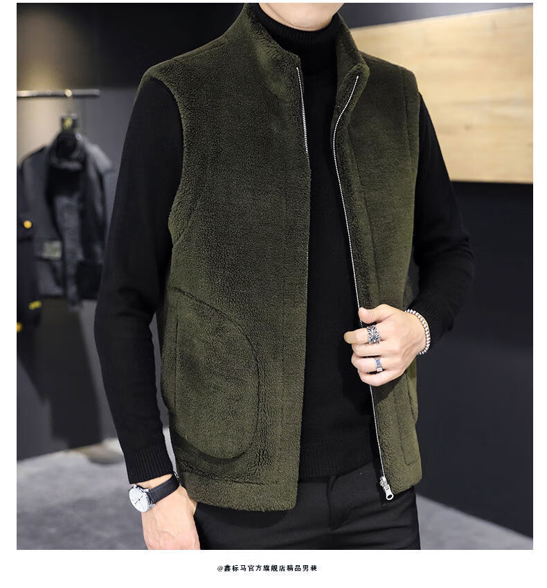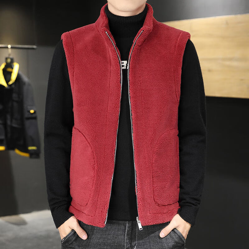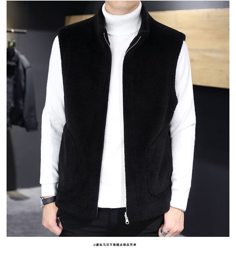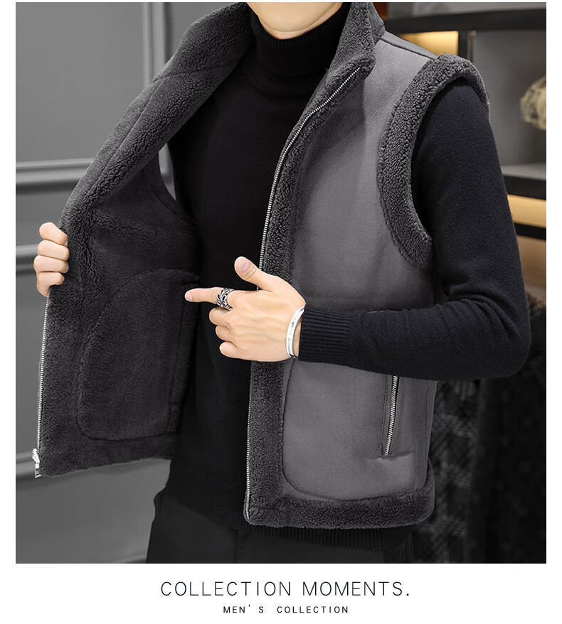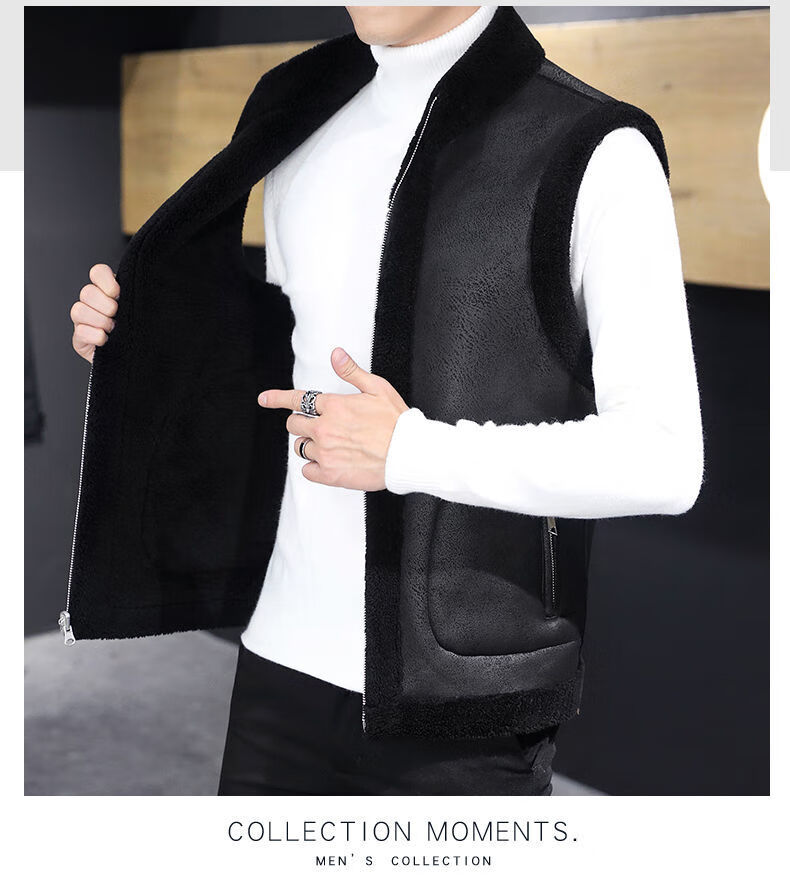 Woodpecker's new high-end winter double-sided men's vest for cold protection and warmth, lamb velvet vest for outer wear with thickened winter clothes, brown/double-sided vest XL Recommended 135-150Jin Jin equals 0.5kg