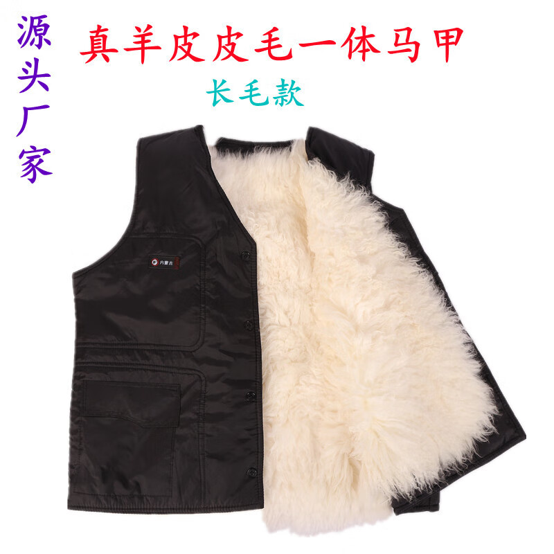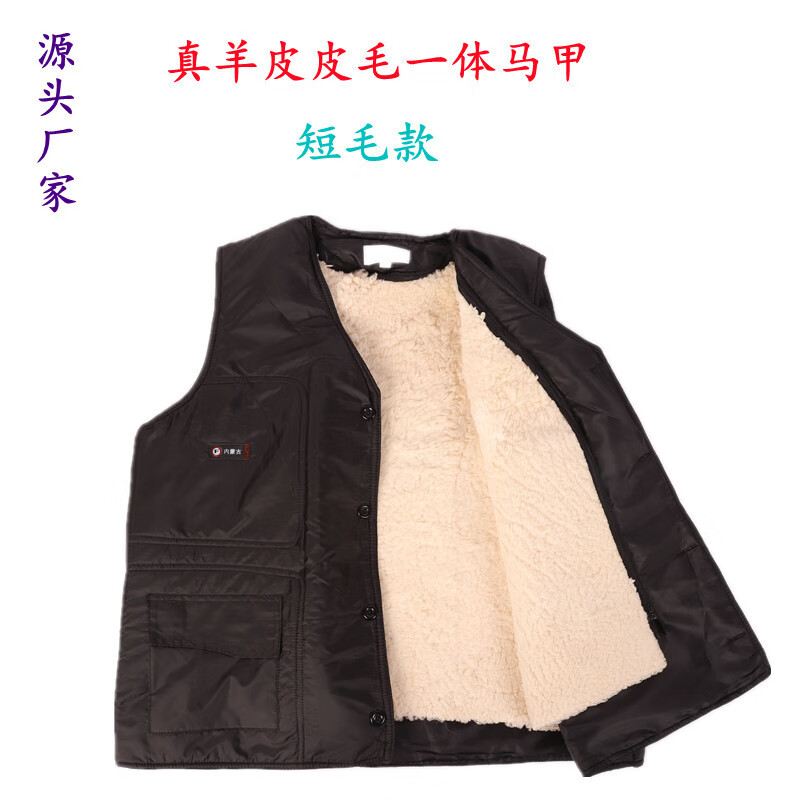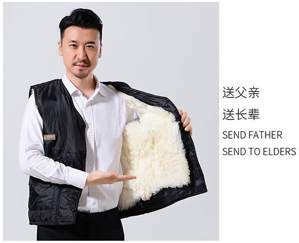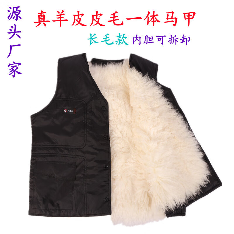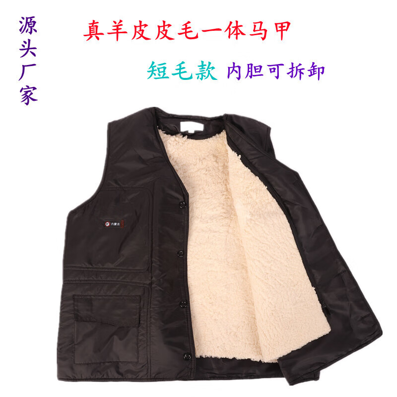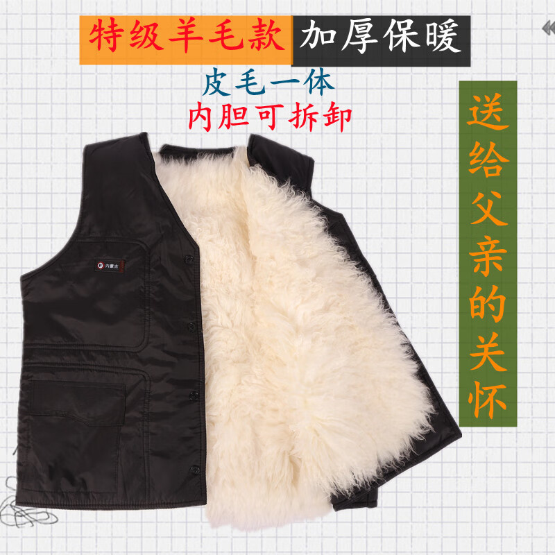 Woodpecker autumn and winter middle-aged and elderly sheepskin vest men's fur integrated thickened warm genuine leather wool vest dad cotton vest long hair special style sheepskin removable 170/2XL suitable for 120-140Jin Jin equals 0.5 kg