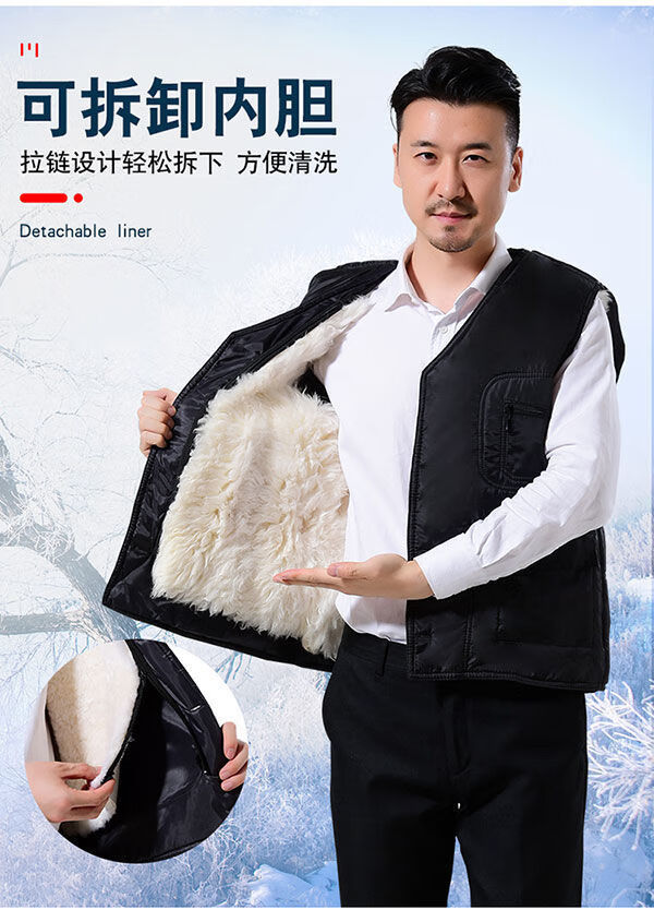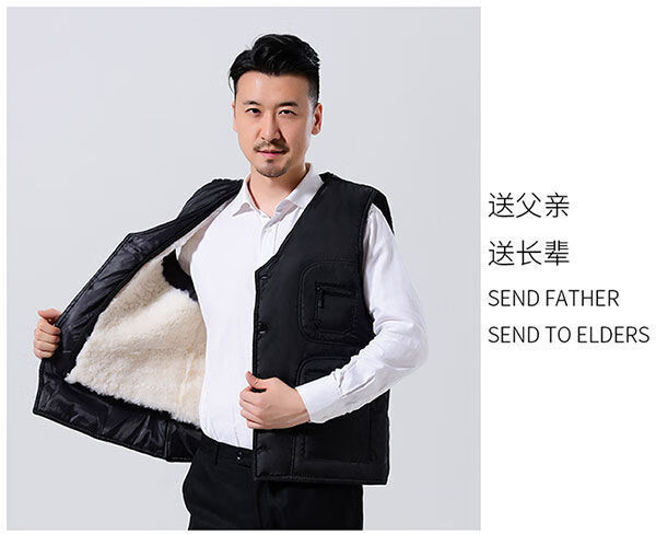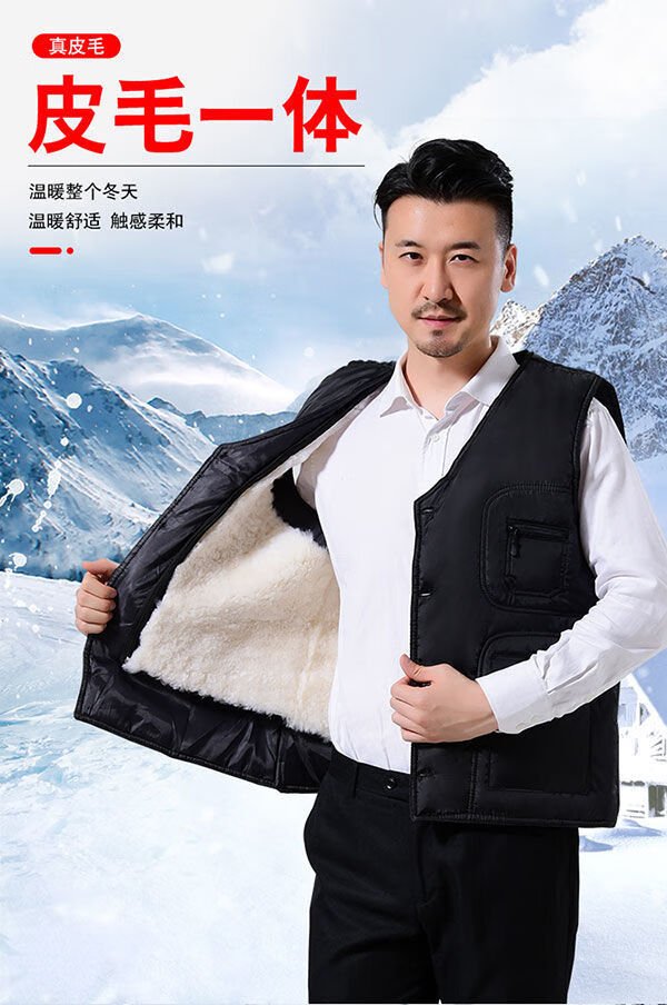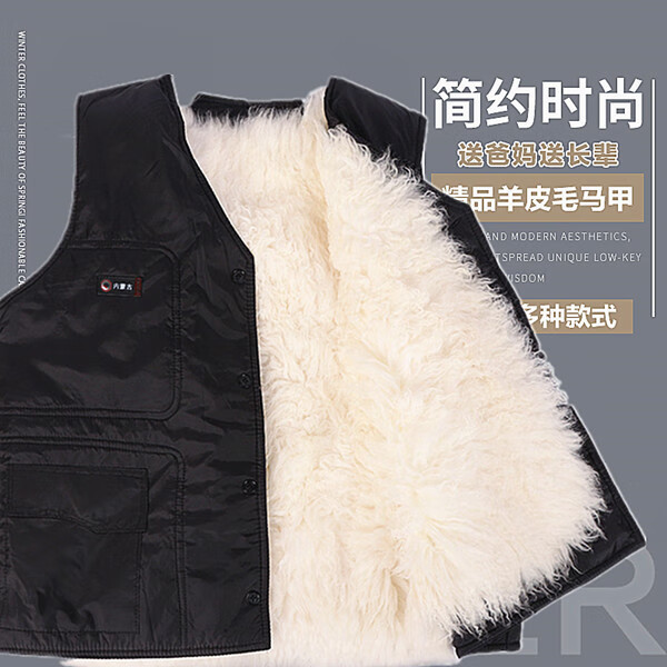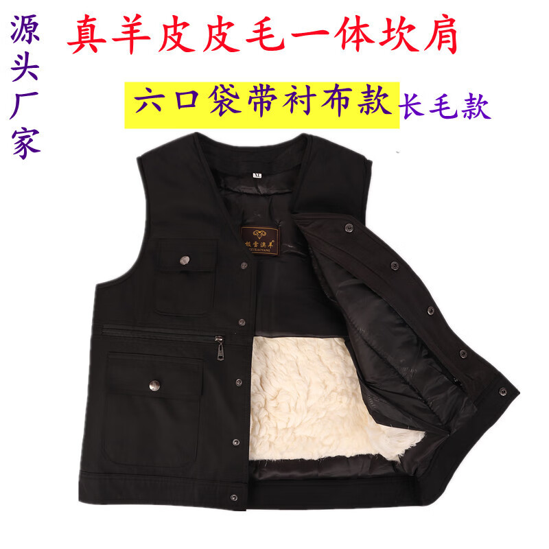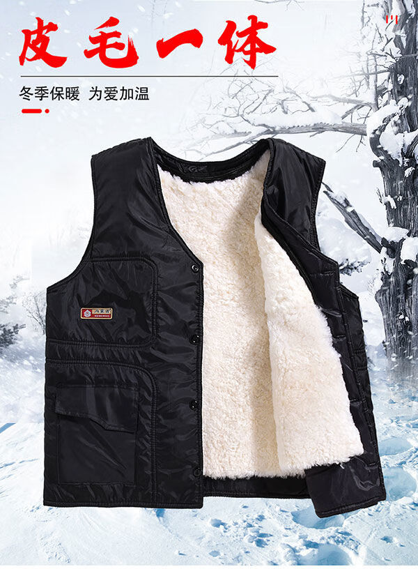 Woodpecker autumn and winter middle-aged and elderly sheepskin vest men's fur integrated thickened warm genuine leather wool vest dad cotton vest long hair special style sheepskin removable 170/2XL suitable for 120-140Jin Jin equals 0.5 kg