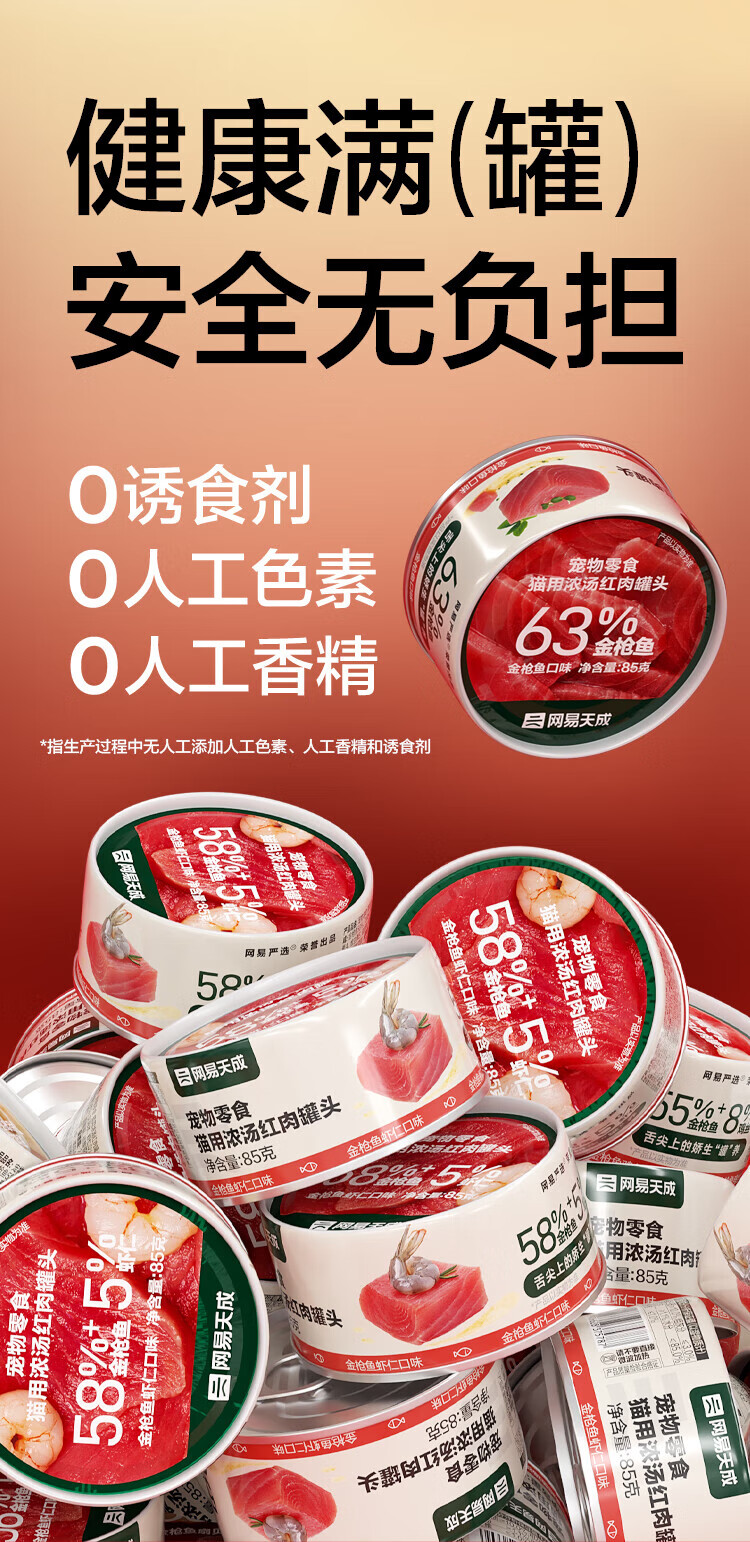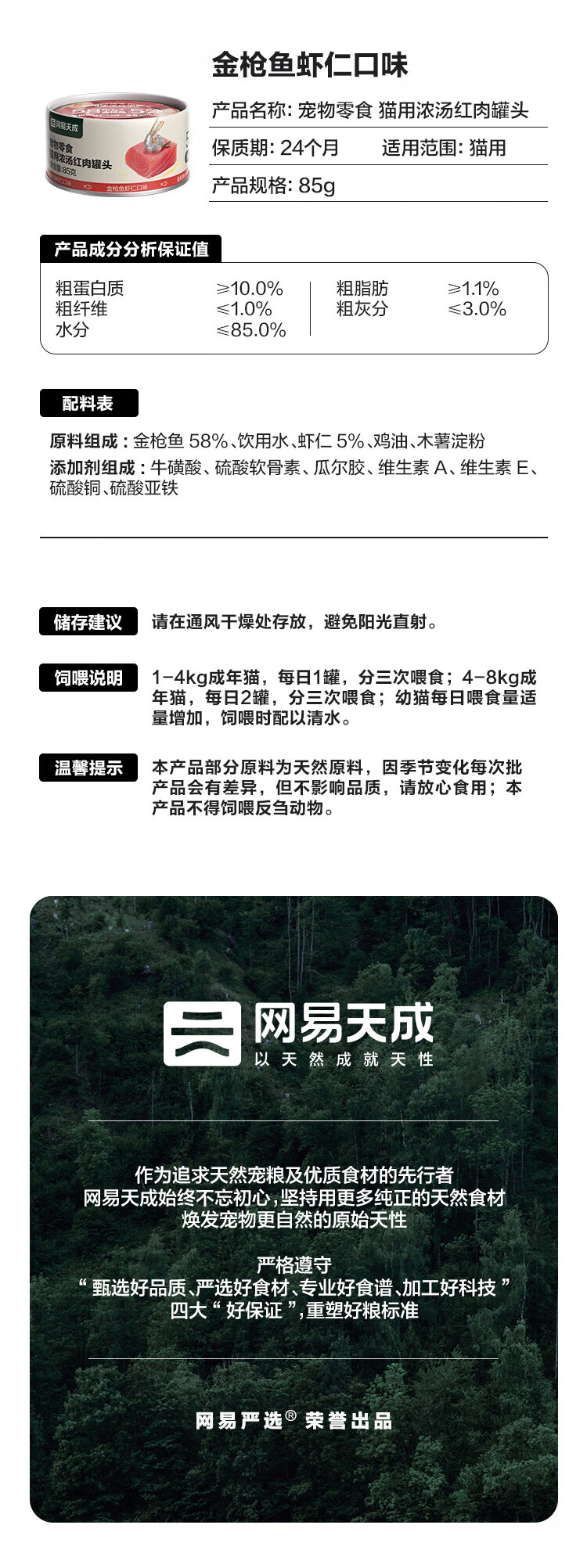 NetEase carefully selects canned cat nutrition, fattening cat snacks 24 cans, cat snacks cans, nutritious kitten Tiancheng staple food cans, heavyweight, heavyweight new products, 0 cans, shredded chicken and seafood, 6 cans, subject to the above Specifications.
