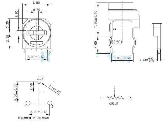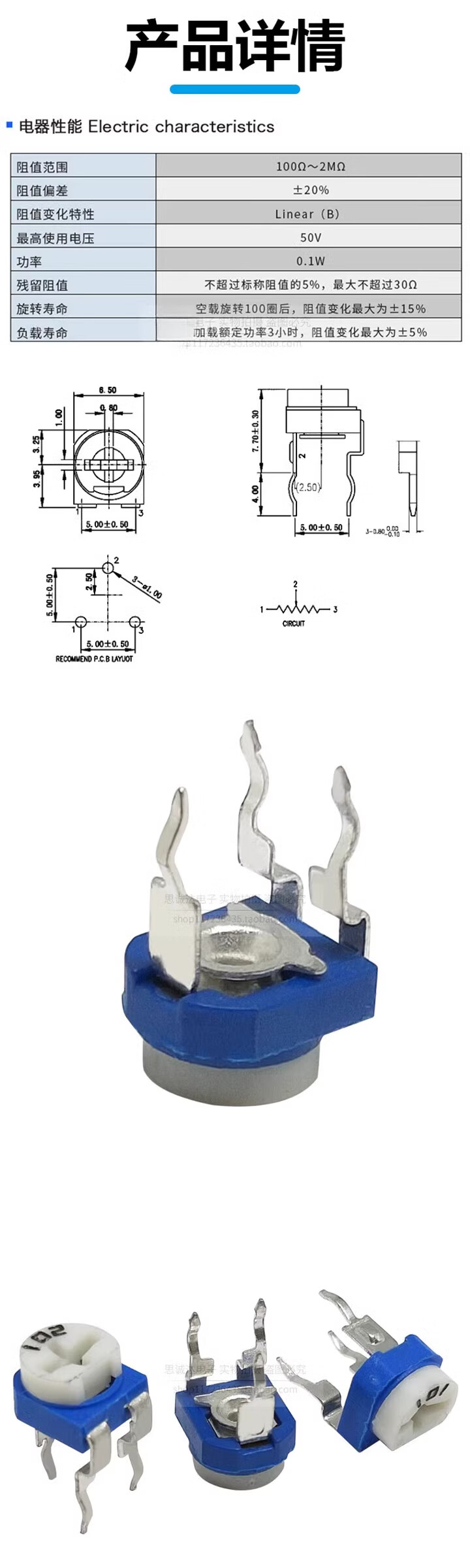 Horizontal RM065 blue and white adjustable resistor 100R-1M1K2K5K10K20K50K100K variable 105(1M)