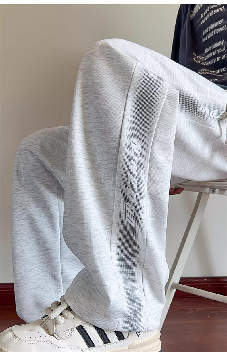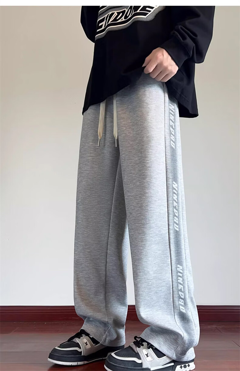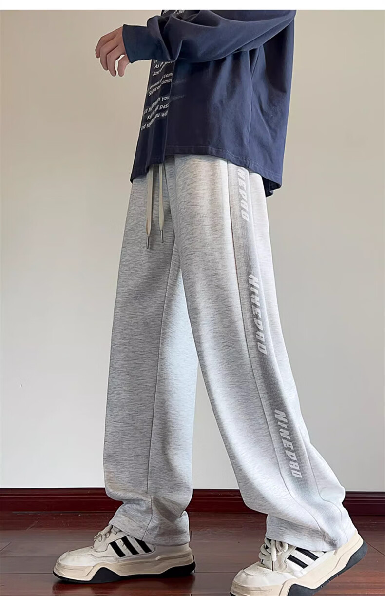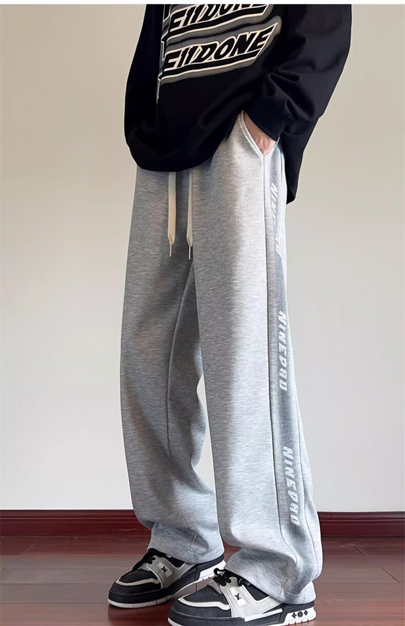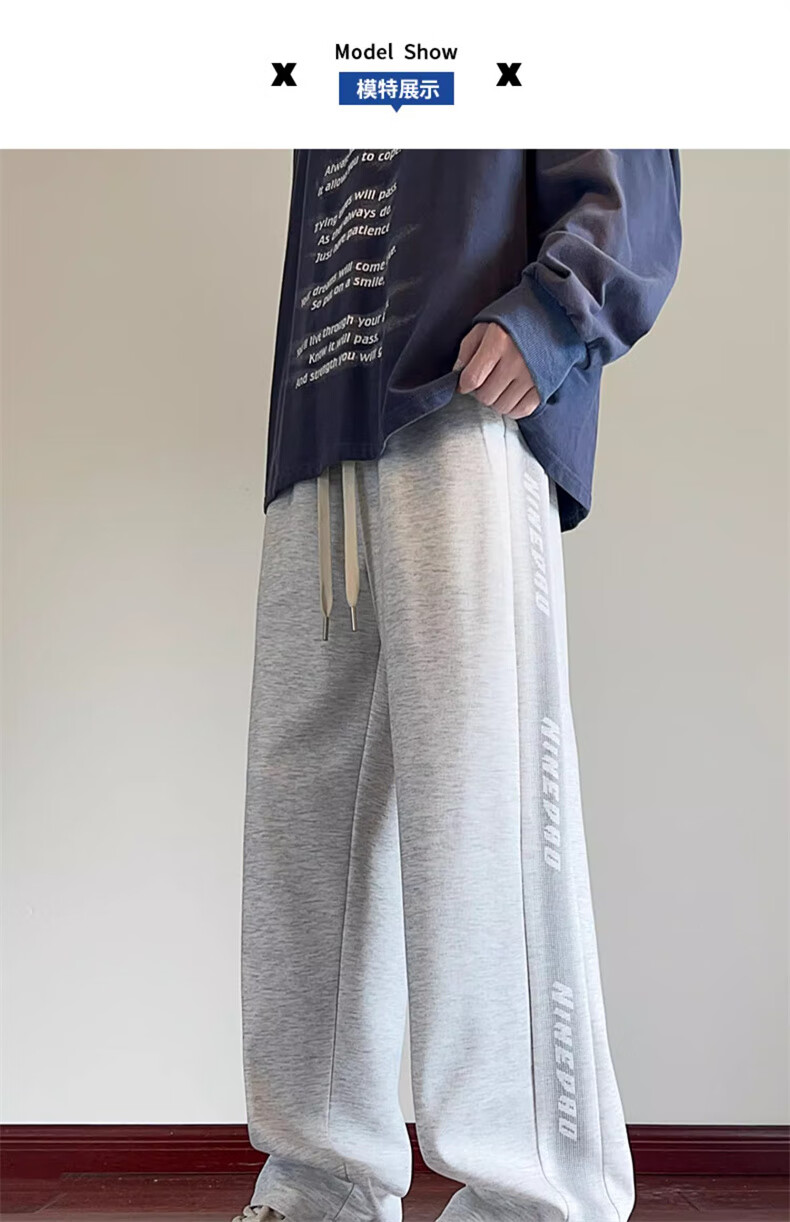 Cotton American style plus velvet thickened high street gray sports pants for men in autumn and winter new loose trendy casual straight sweatpants white gray 0395 plus velvet high quality 26 2XL 140-160Jin Jin is equal to 0.5 kg