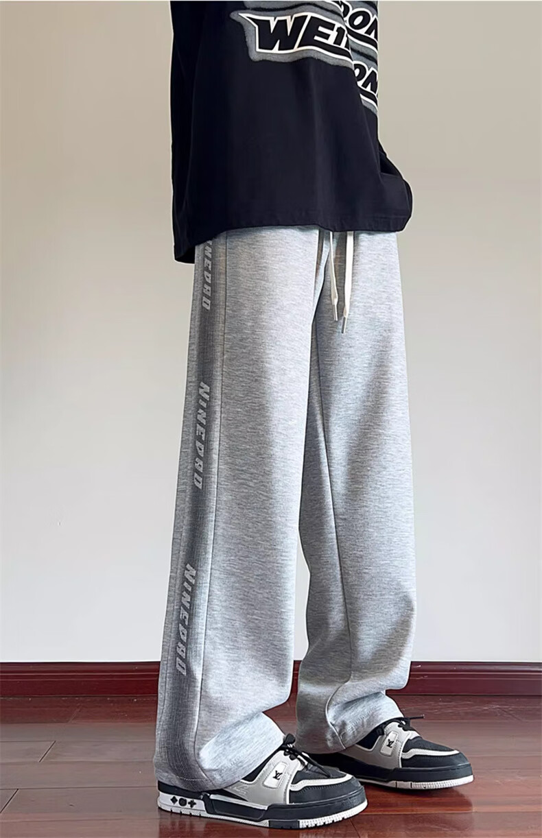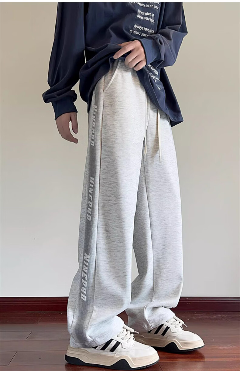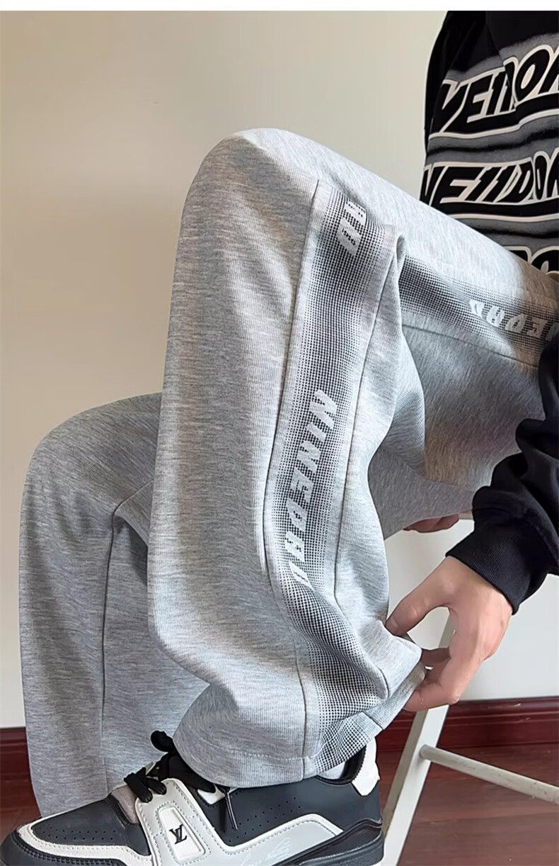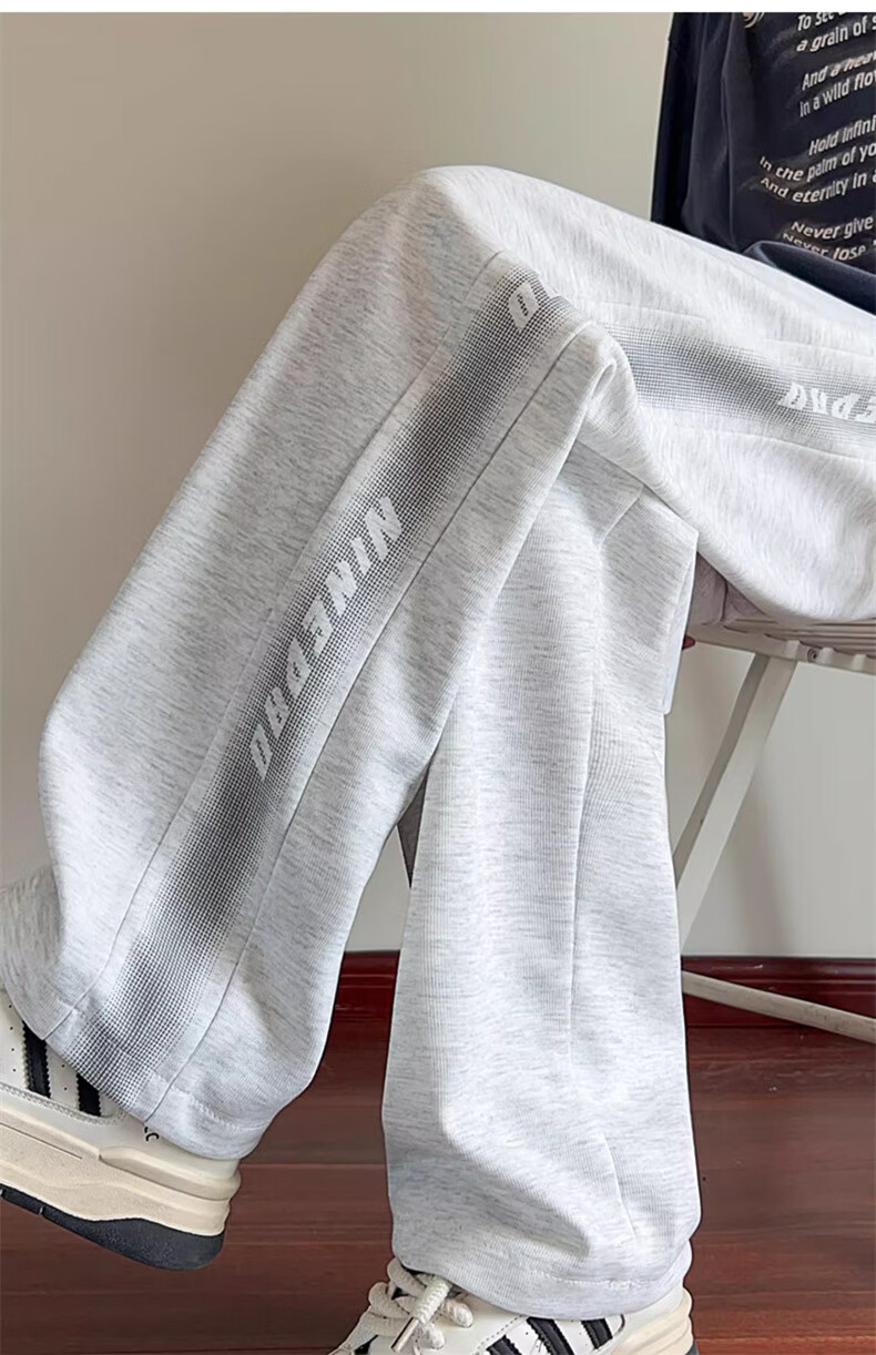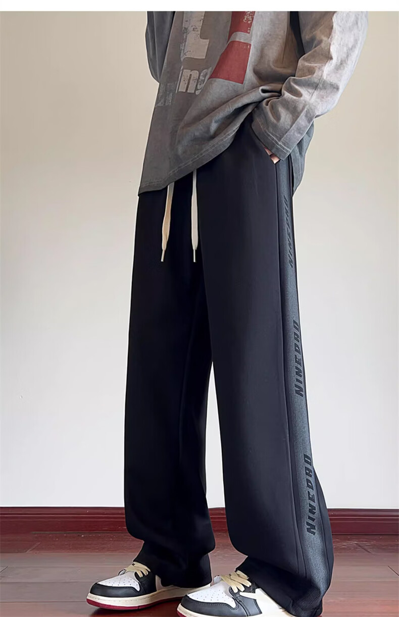 Cotton American style plus velvet thickened high street gray sports pants for men in autumn and winter new loose trendy casual straight sweatpants white gray 0395 plus velvet high quality 26 2XL 140-160Jin Jin is equal to 0.5 kg