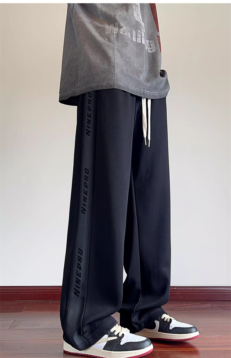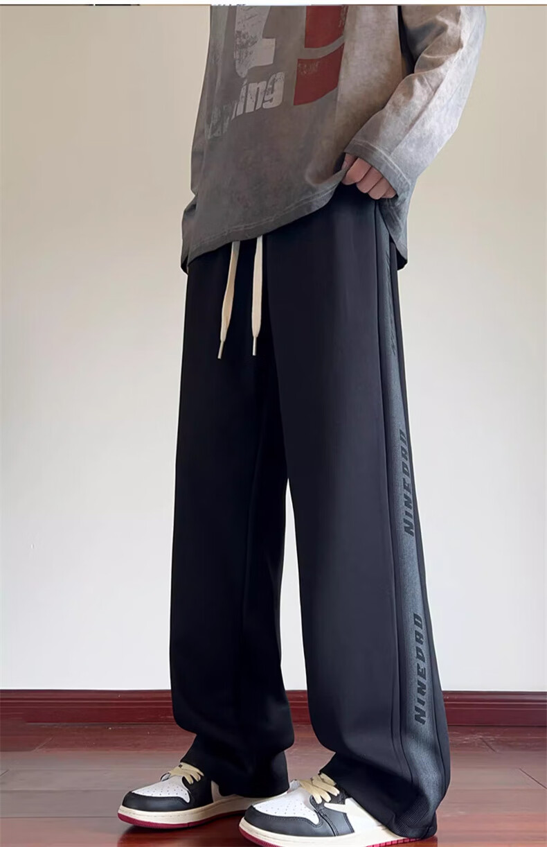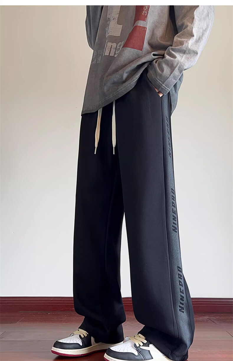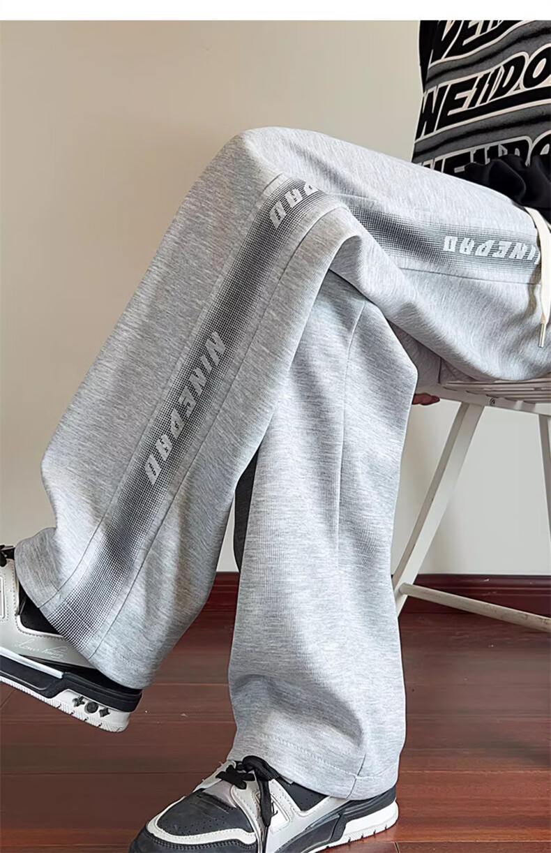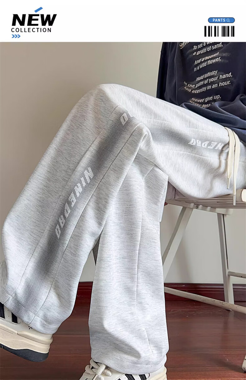 Cotton American style plus velvet thickened high street gray sports pants for men in autumn and winter new loose trendy casual straight sweatpants white gray 0395 plus velvet high quality 26 2XL 140-160Jin Jin is equal to 0.5 kg