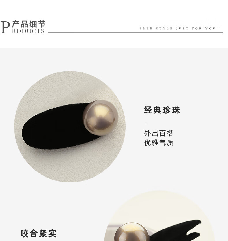 Zuoou hairpin side clip side seamless high-end autumn and winter new flocked duckbill clip pearl bangs clip headdress hairpin champagne color pearl pair