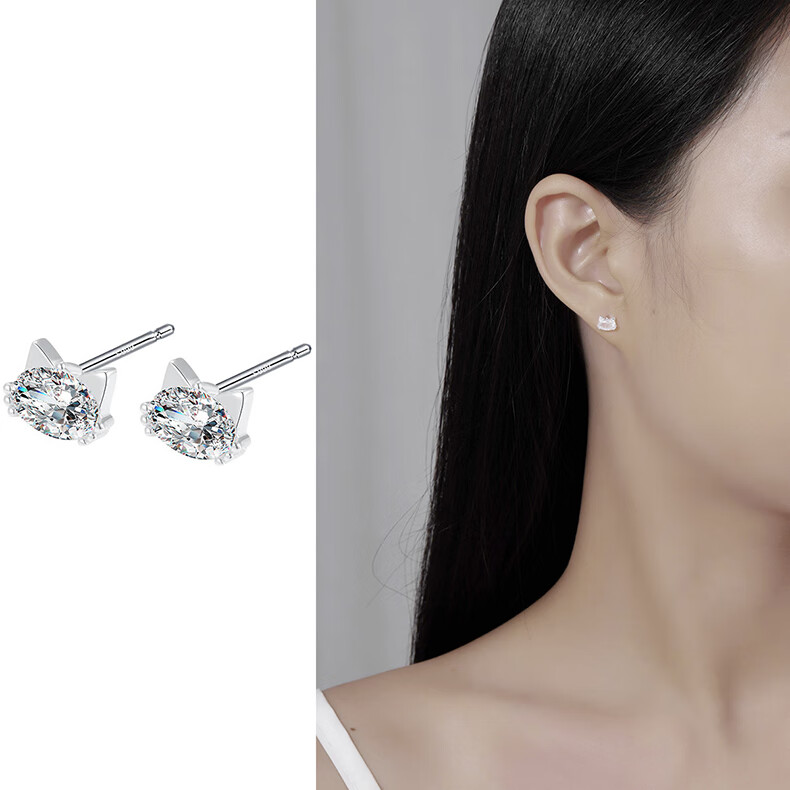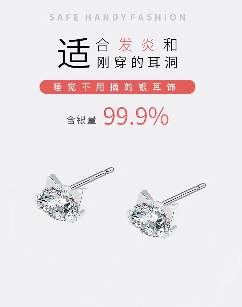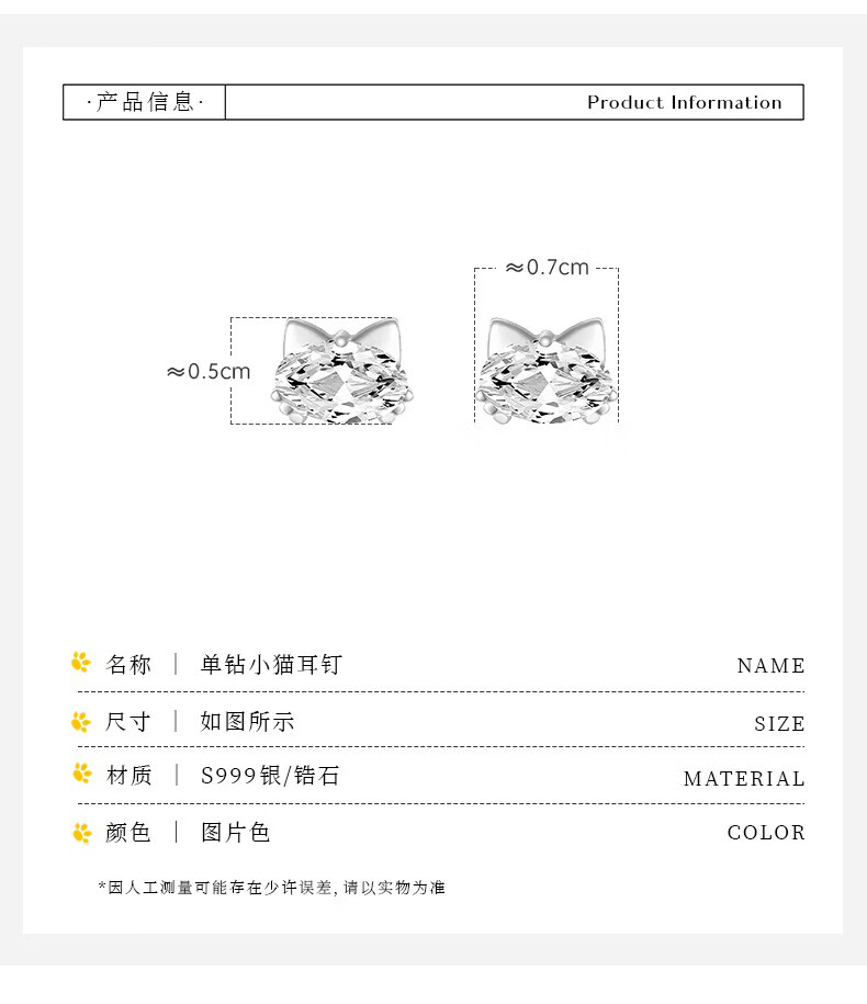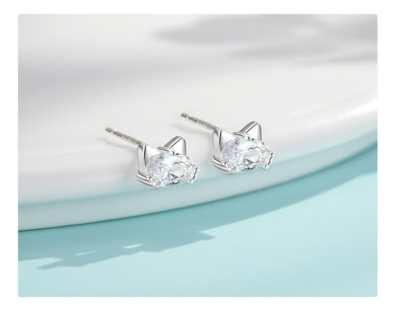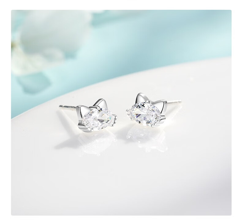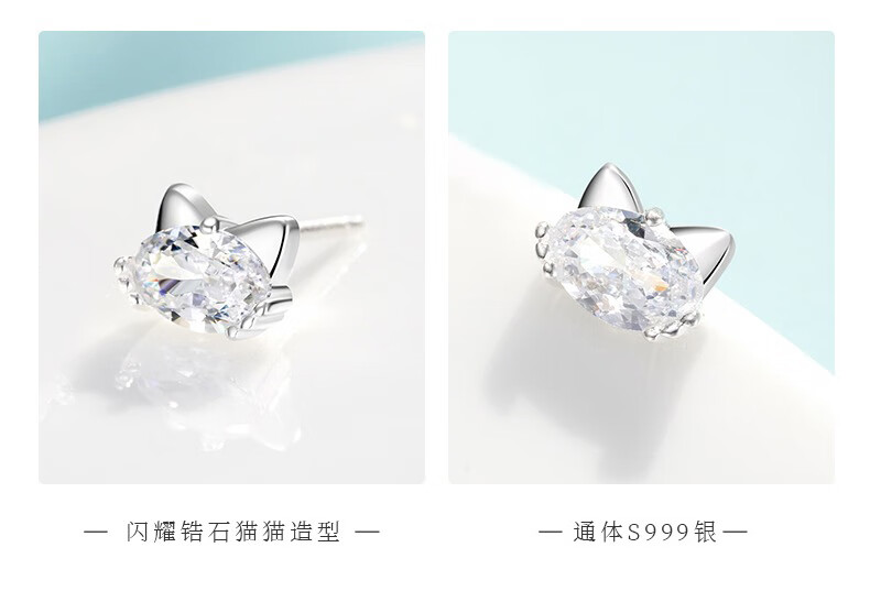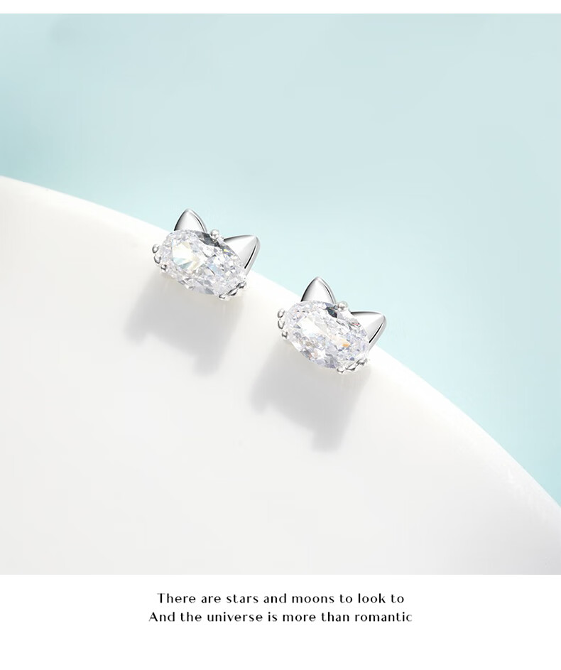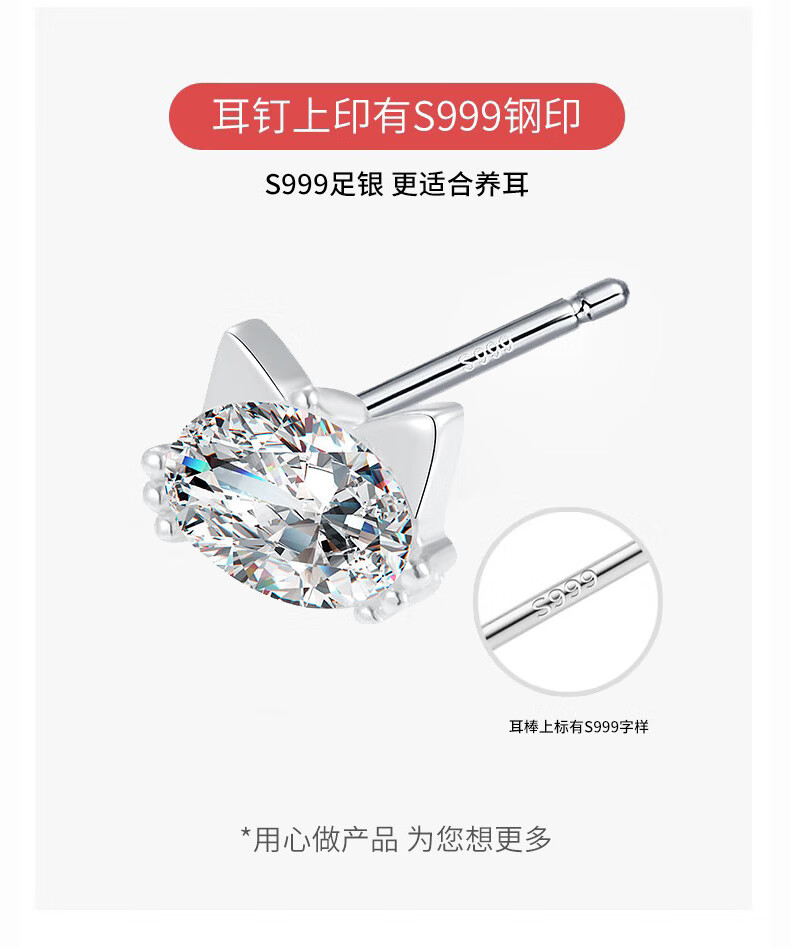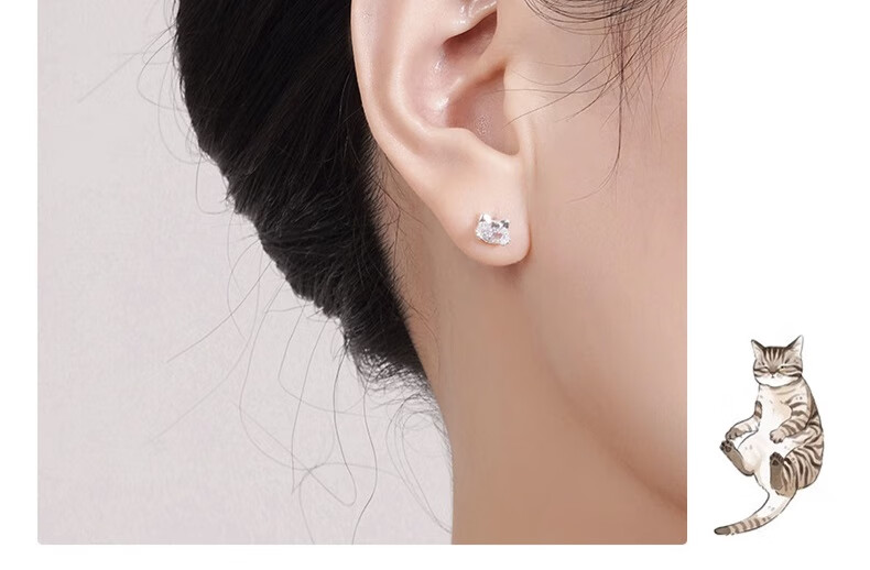 Holycat Cat in Arms 999 pure silver single diamond kitten earrings girl birthday gift pierced earrings versatile women's ear jewelry 999 silver single diamond kitten earrings pair
