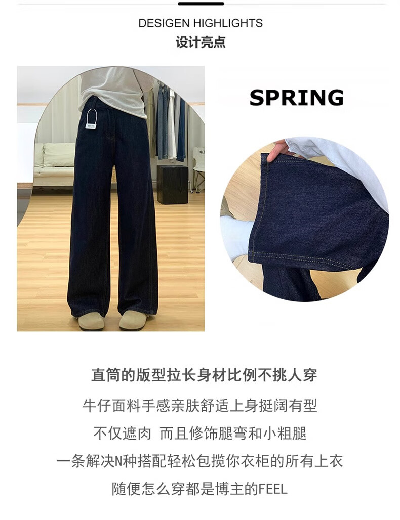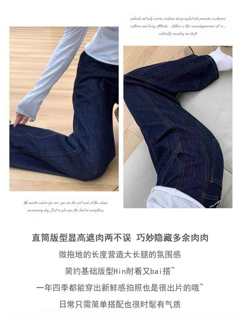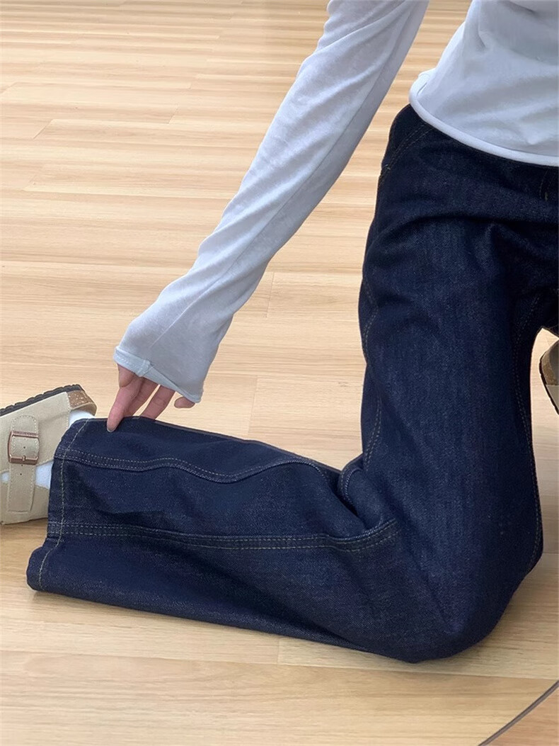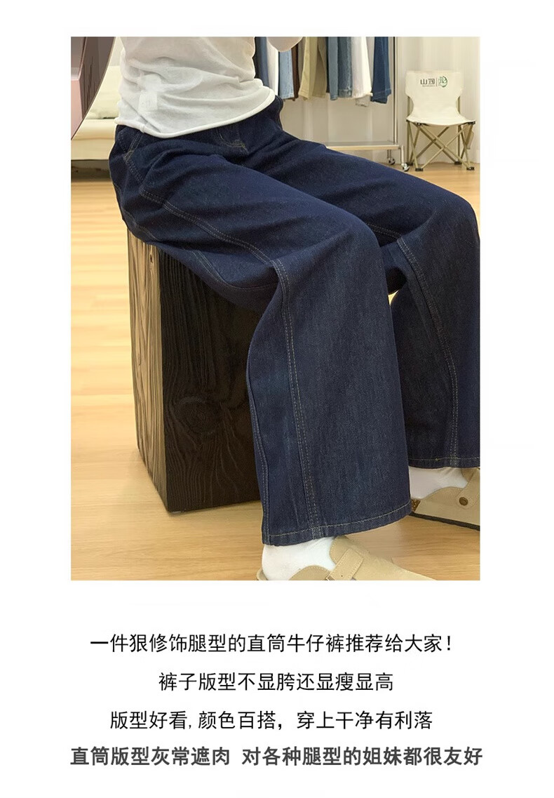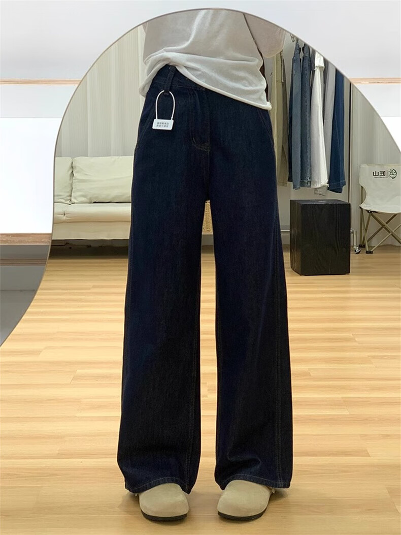 Cotton blue high-waisted loose wide-leg jeans for women in autumn and winter small retro straight casual pants plus velvet N21 dark blue plus velvet high quality 39 L 108-118Jin Jin is equal to 0.5 kg