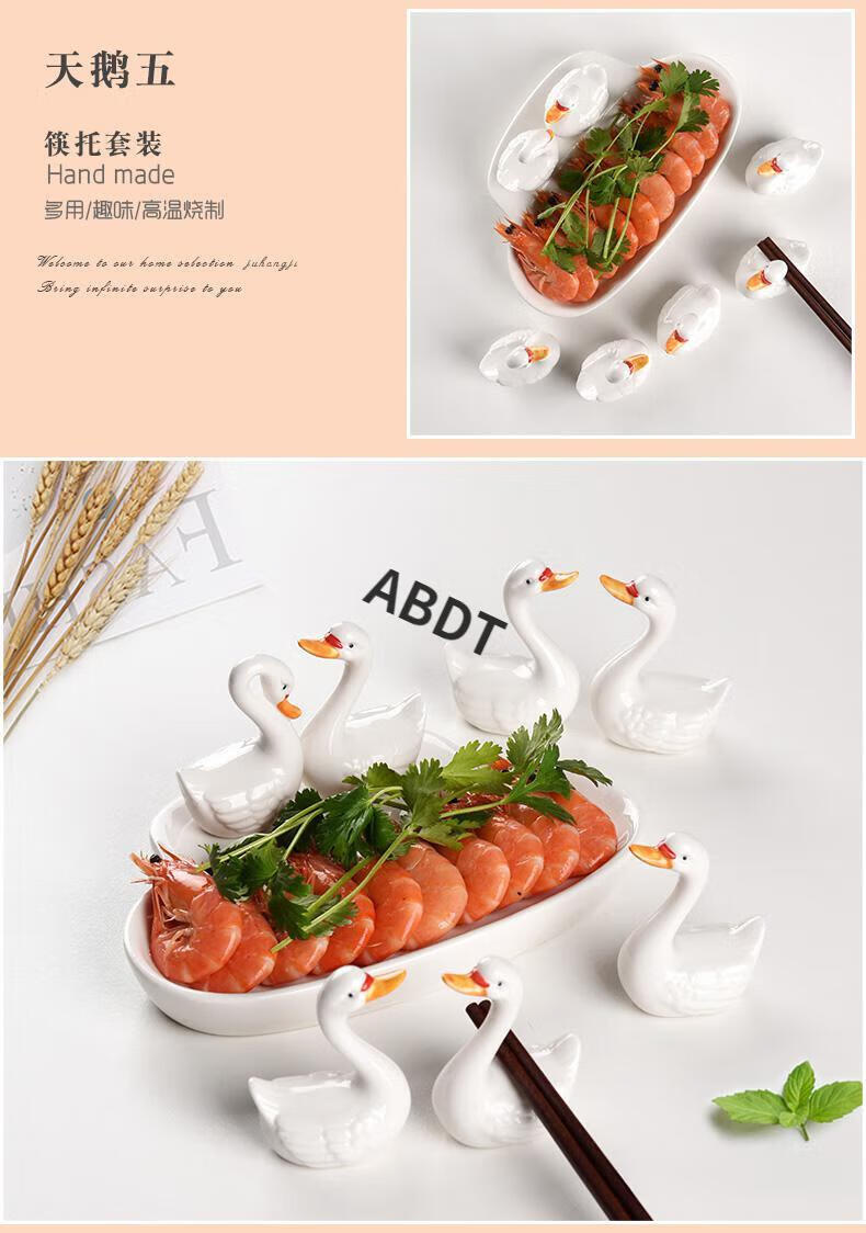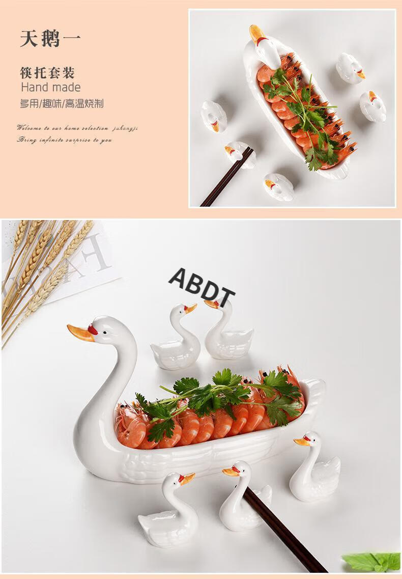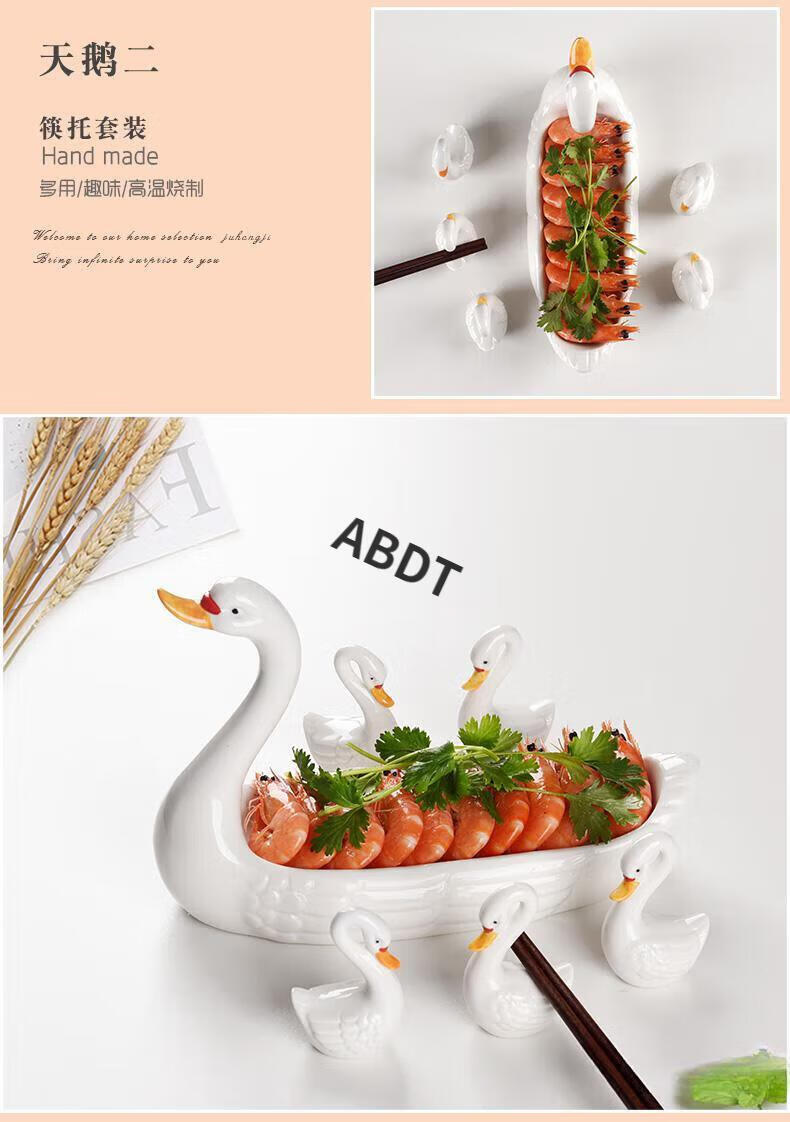 ABDT Japanese creative ceramic swan chopstick holder chopstick holder home hotel hand-painted tableware chopstick holder chopstick holder chopstick pillow set swan chopstick holder set 1