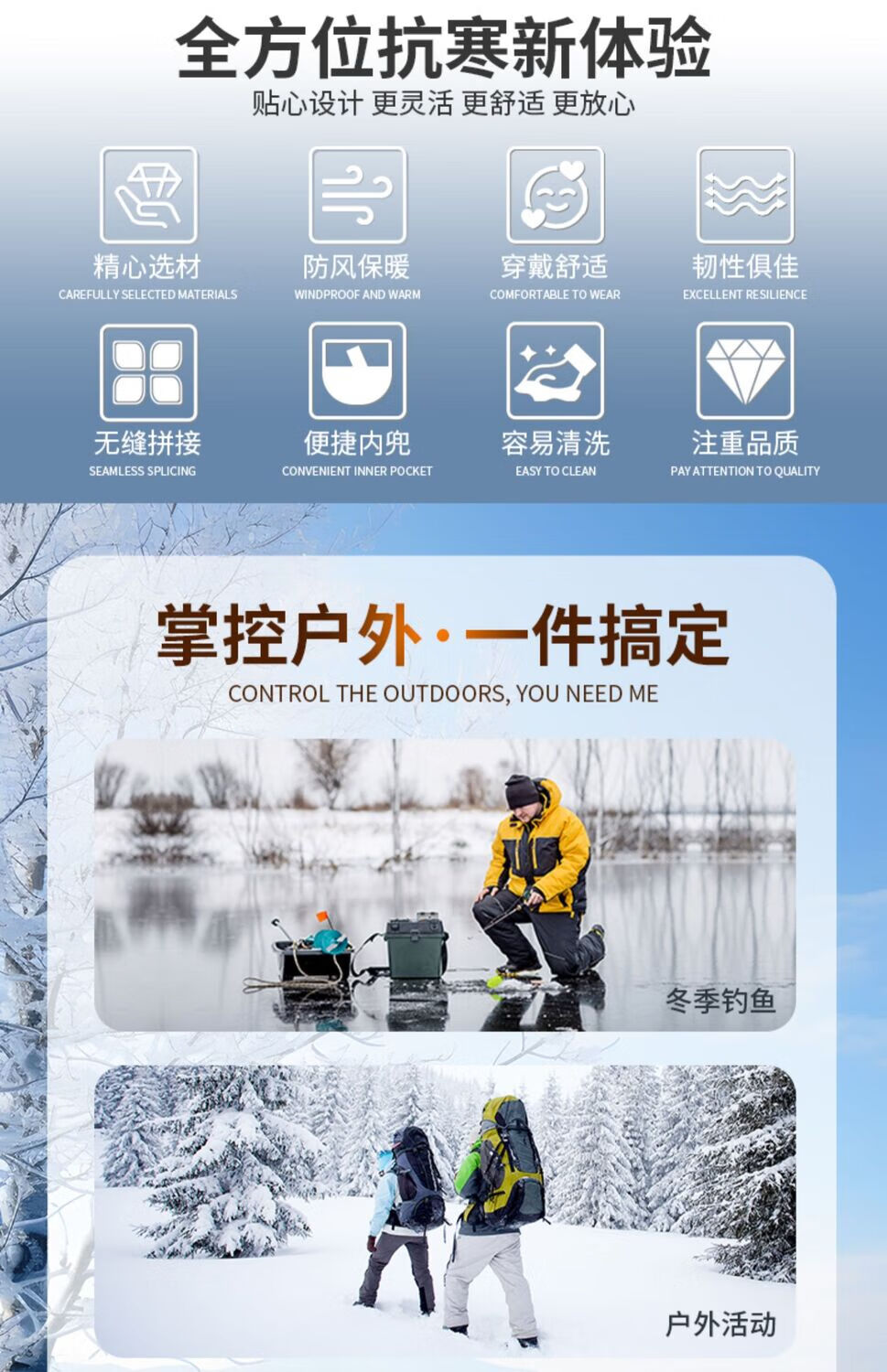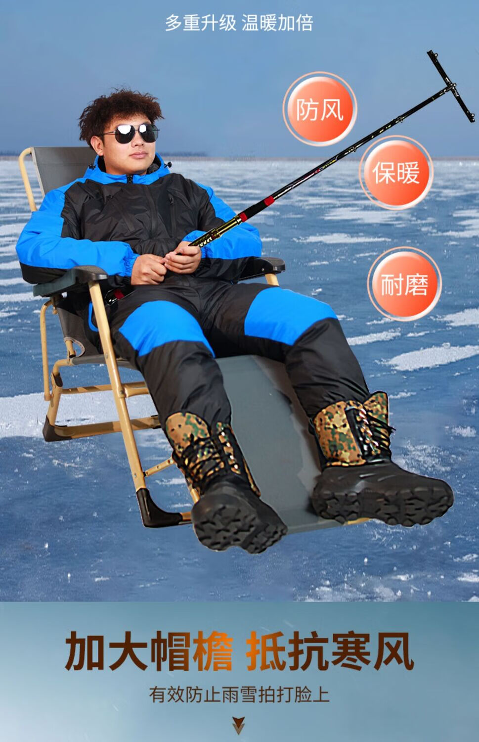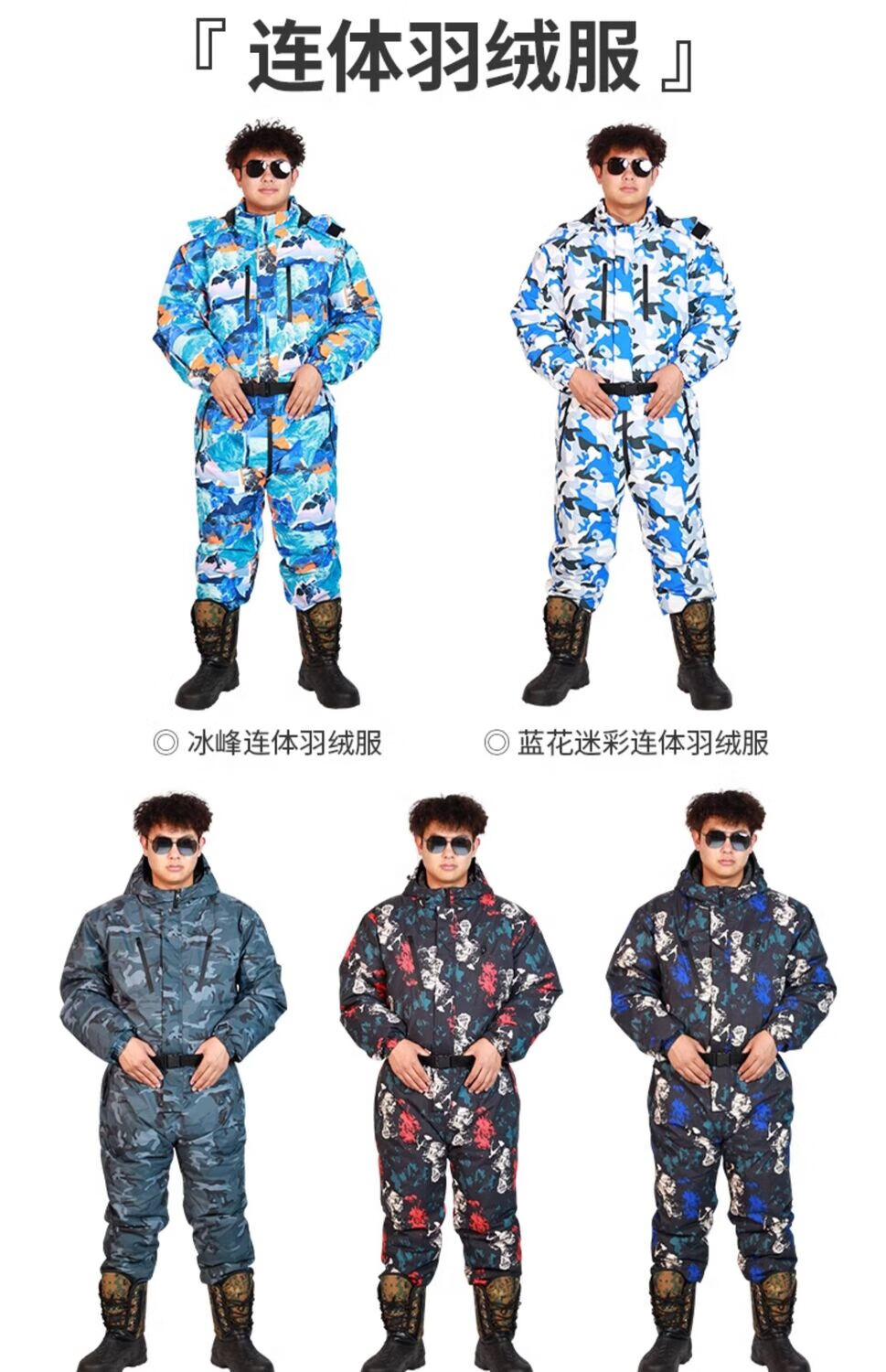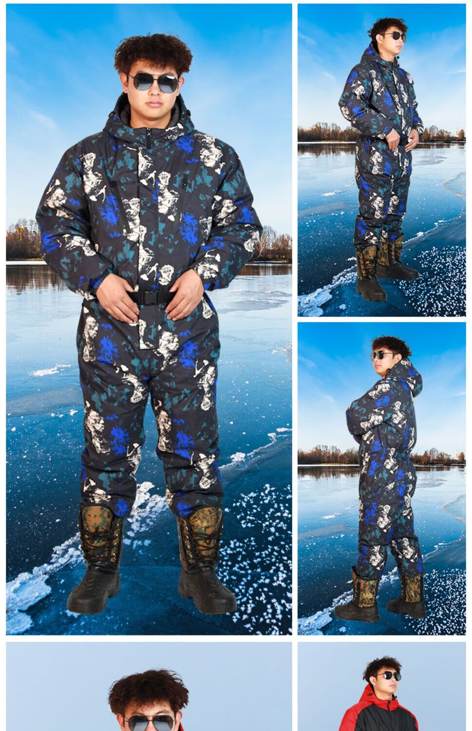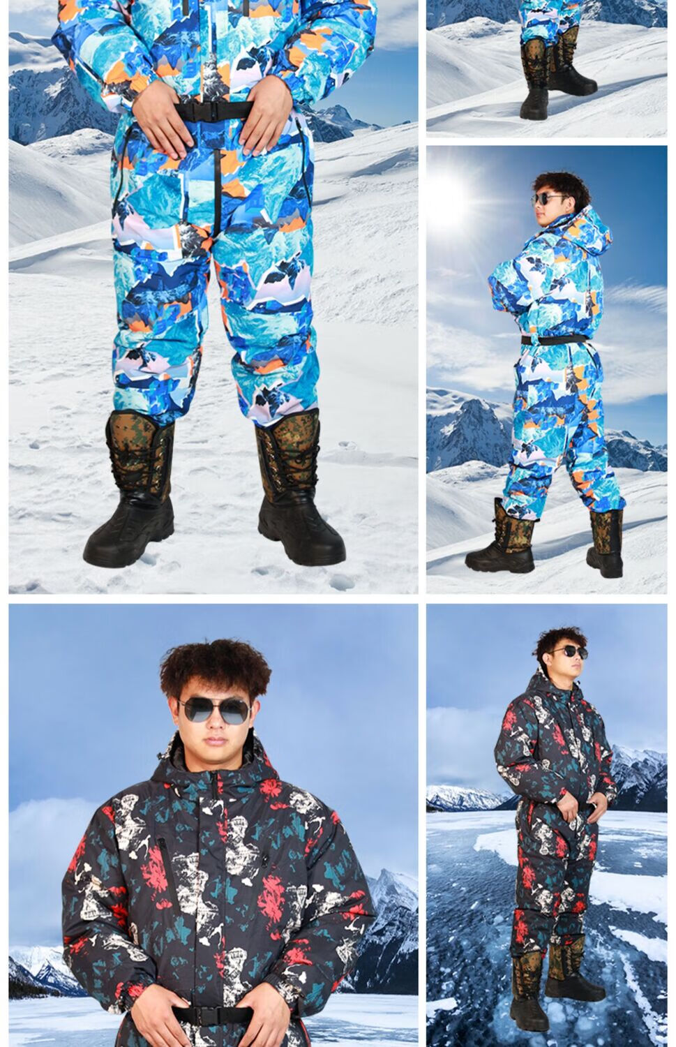 Yuyongji (YUYONGJI) thickened and warm winter fishing clothing, winter fishing waterproof ice fishing cold storage sea fishing antifreeze one-piece cold-proof down jacket, black and blue flower one-piece down jacket, one size fits all L (recommended height 1.7-1.75 and weight 165 and above)