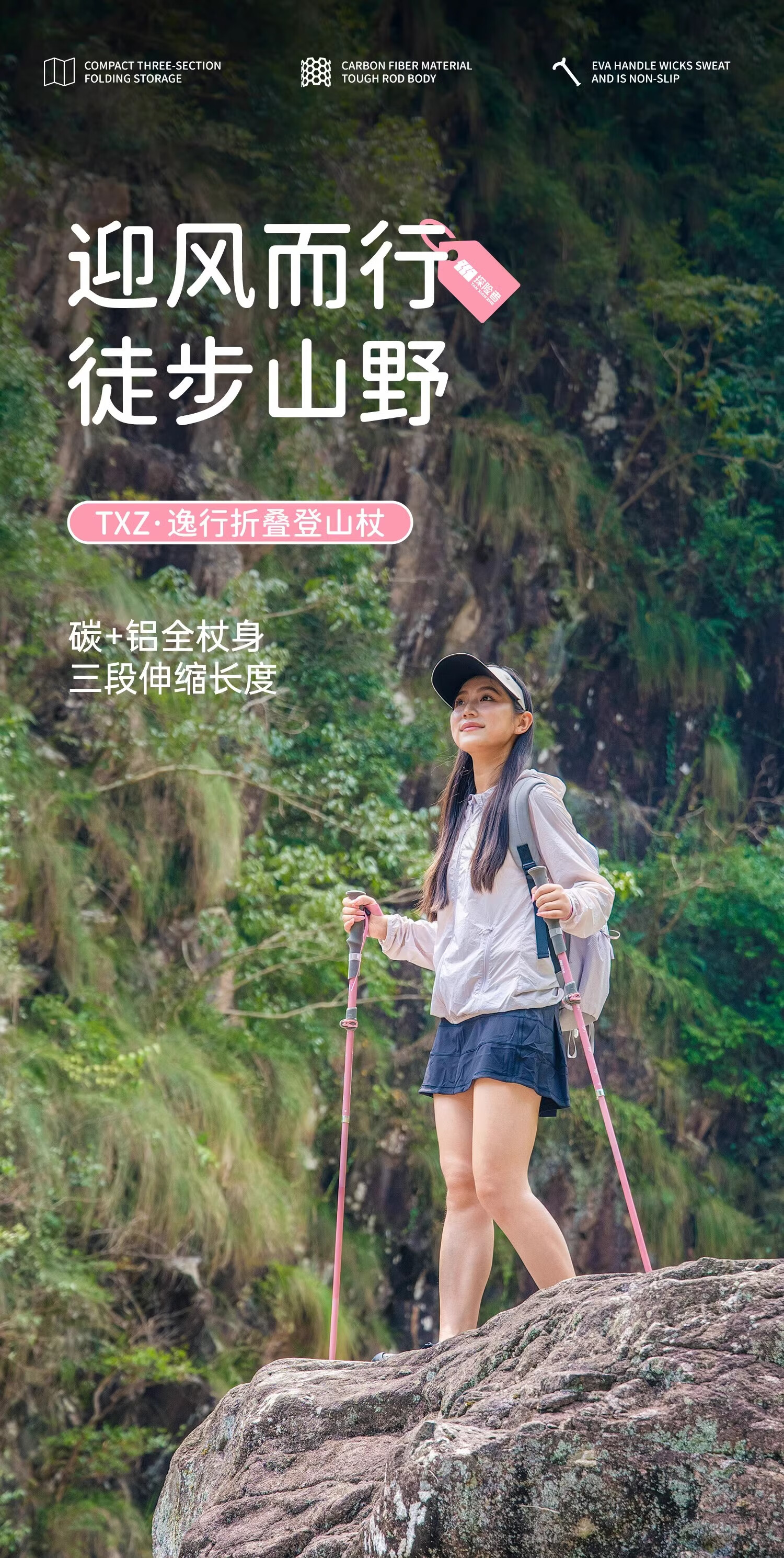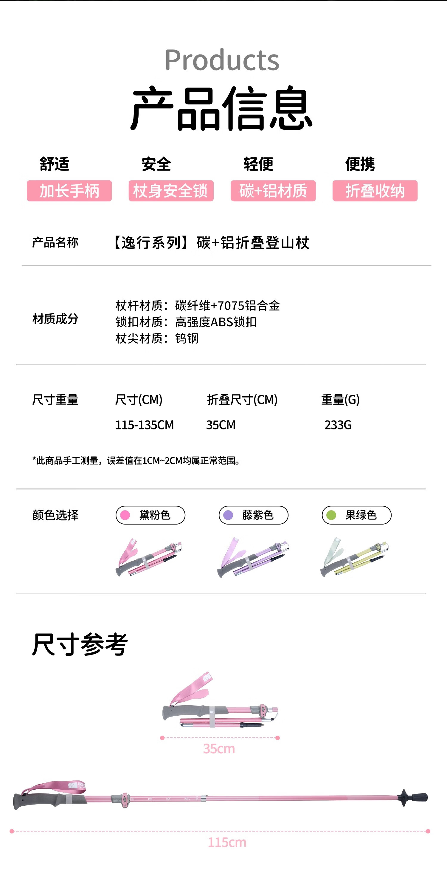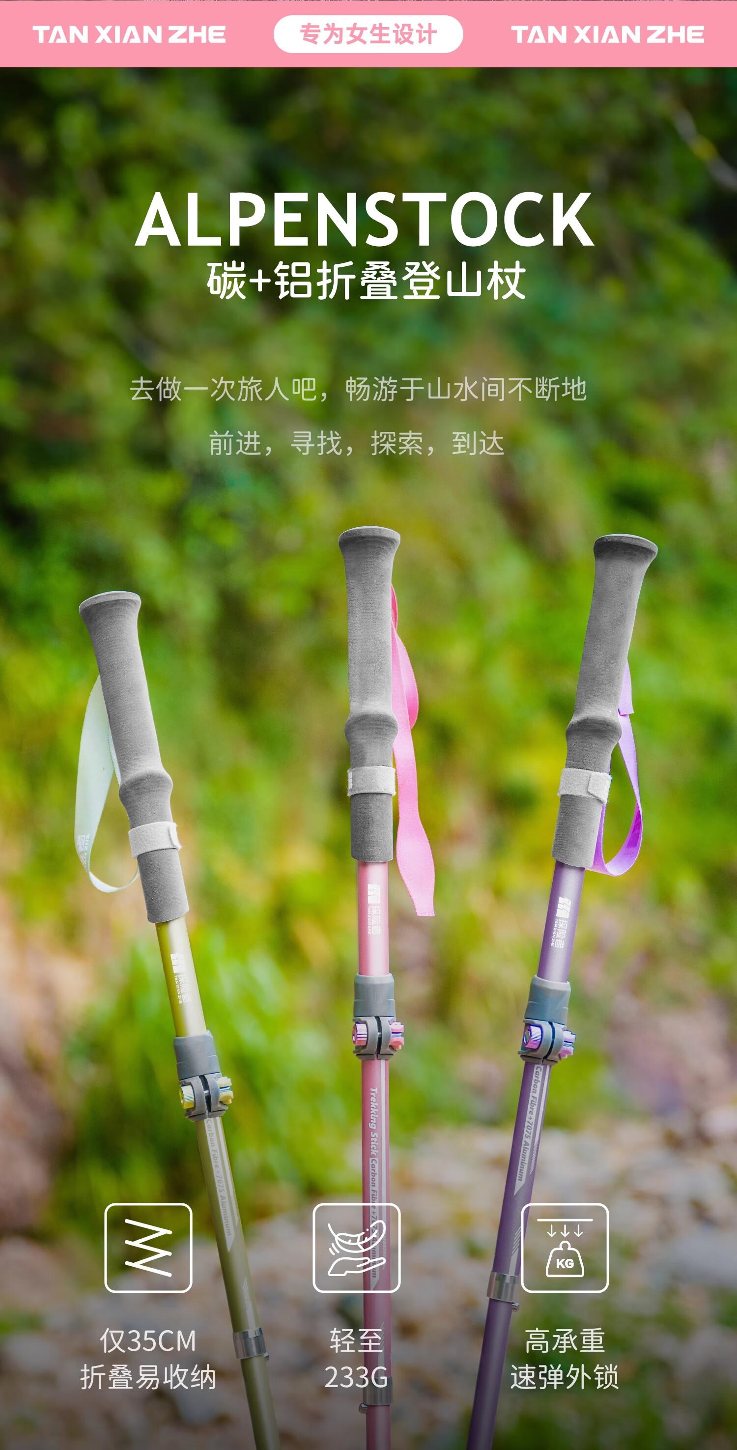 Explorer (TAN XIAN ZHE) carbon fiber ultra-light outdoor trekking pole, folding adult trekking pole, hiking stick, vine purple, carbon and aluminum folding model, free storage bag
