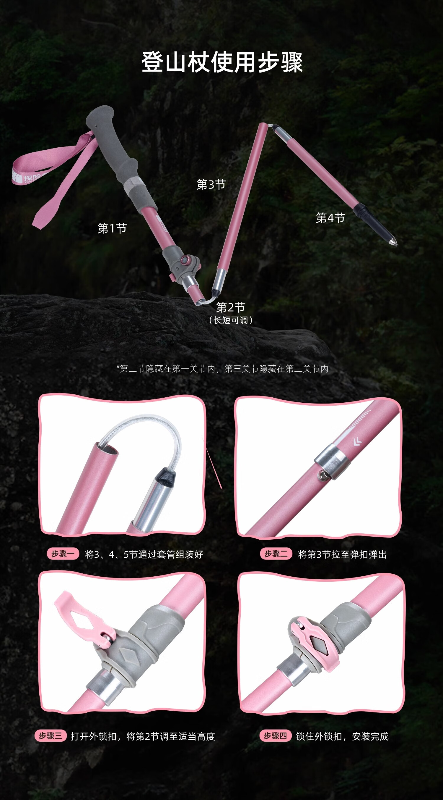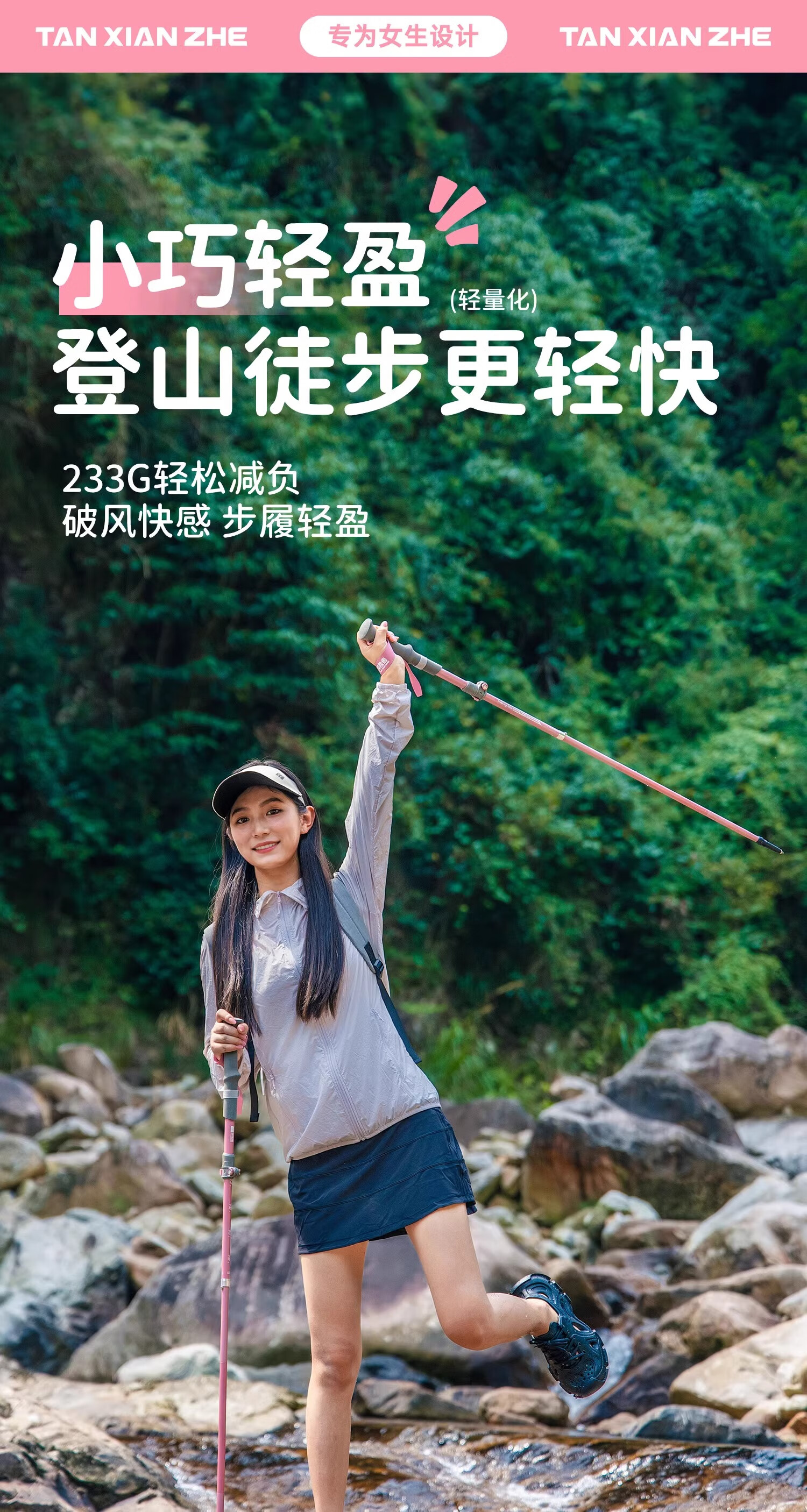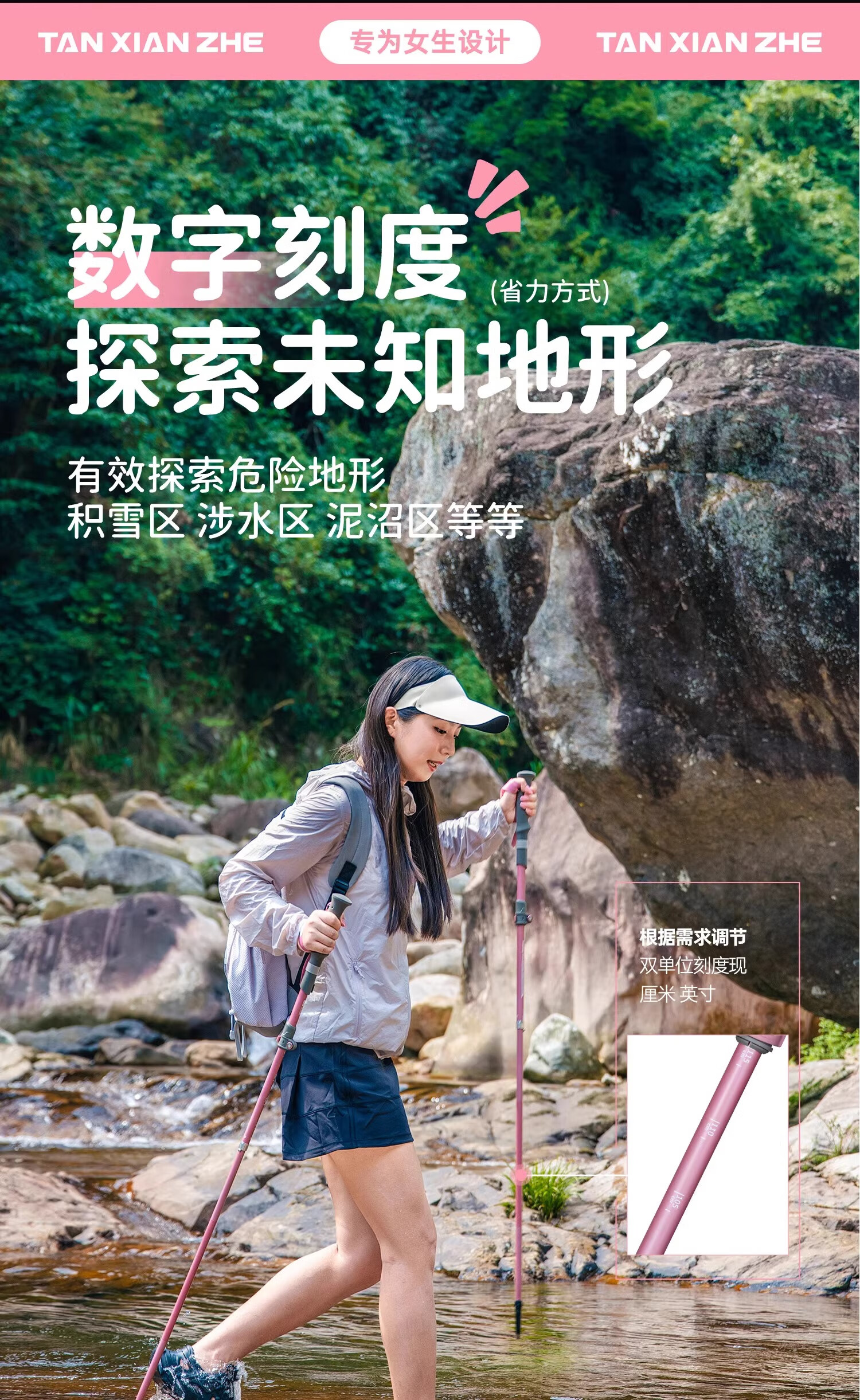 Explorer (TAN XIAN ZHE) carbon fiber ultra-light outdoor trekking pole, folding adult trekking pole, hiking stick, vine purple, carbon and aluminum folding model, free storage bag