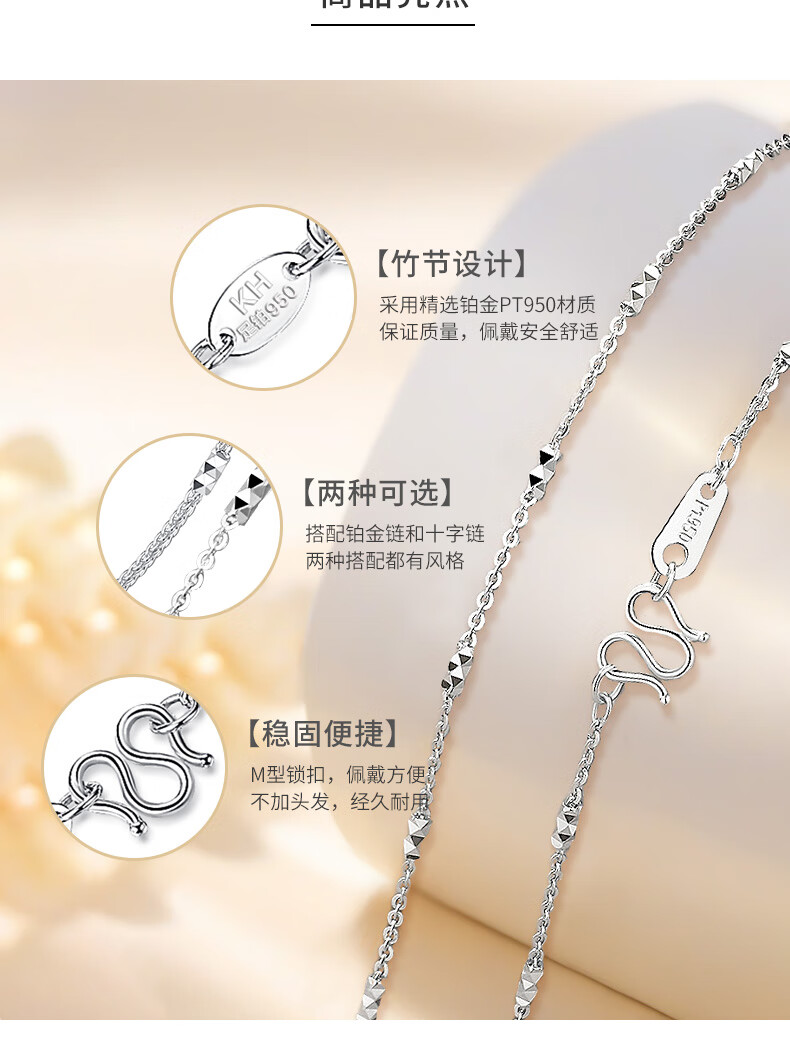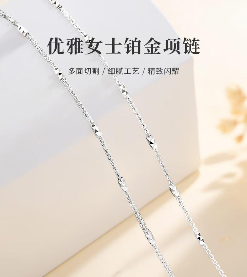 Junhong pt950 platinum necklace women's Chopard intercolumn chain rhombus bamboo section platinum O-shaped plain chain clavicle sweater chain O-shaped 2.5-2.7g long 45cm thick about 1.1mm