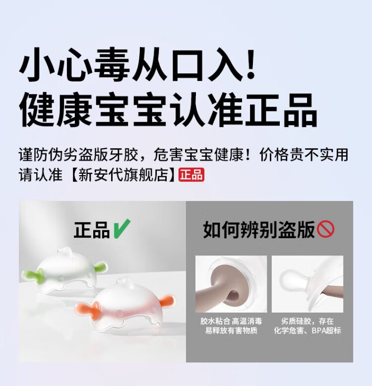 Xinandai baby teether to soothe babies 3-4-6 months and above, anti-eating hand silicone teether toy, nano silver antibacterial, teething stick + free storage box