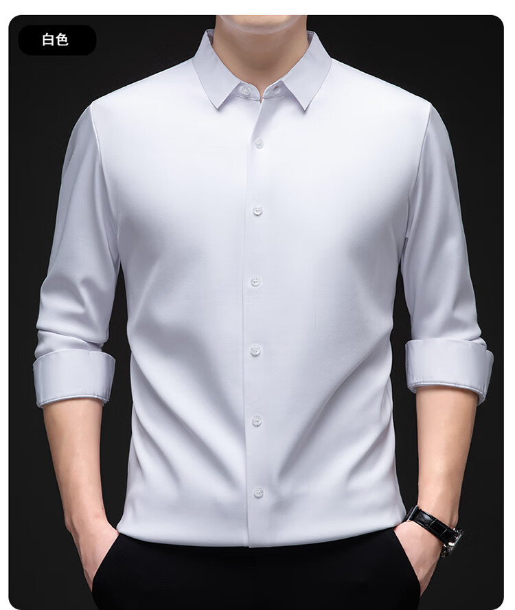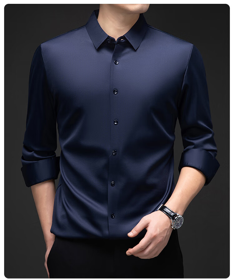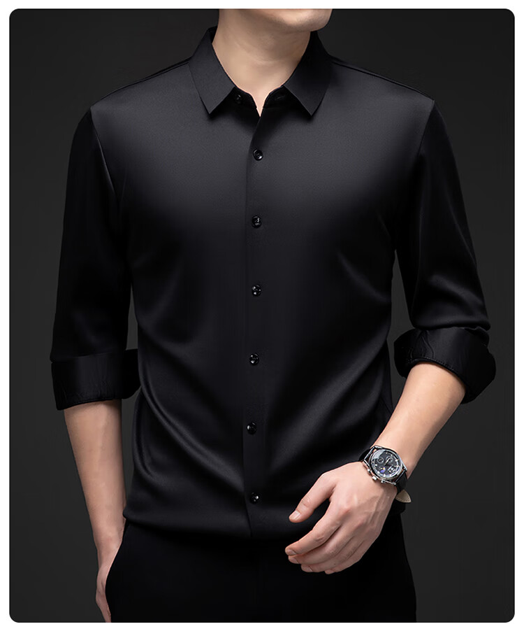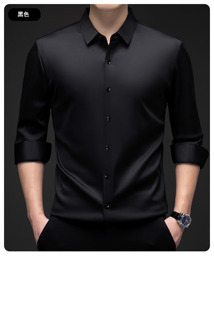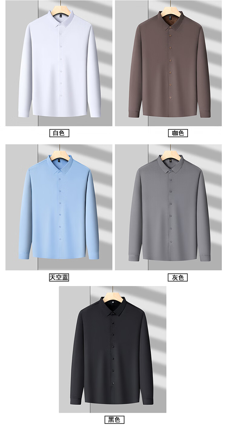 Pierre Cardin no-iron mulberry silk long-sleeved shirt for men in winter plus velvet and thickening no-iron drape business casual warm shirt 8010 long sleeves - black (plush) thickened XL 175135-155Jin Jin is equal to 0.5 kg