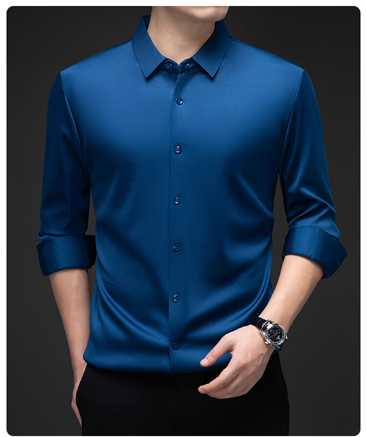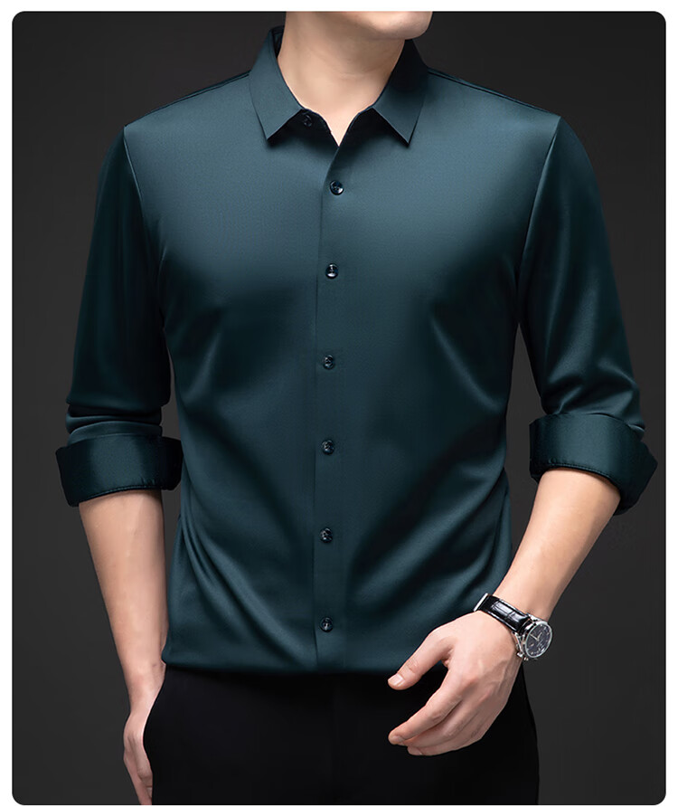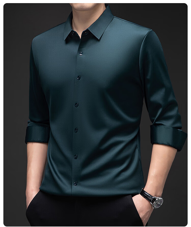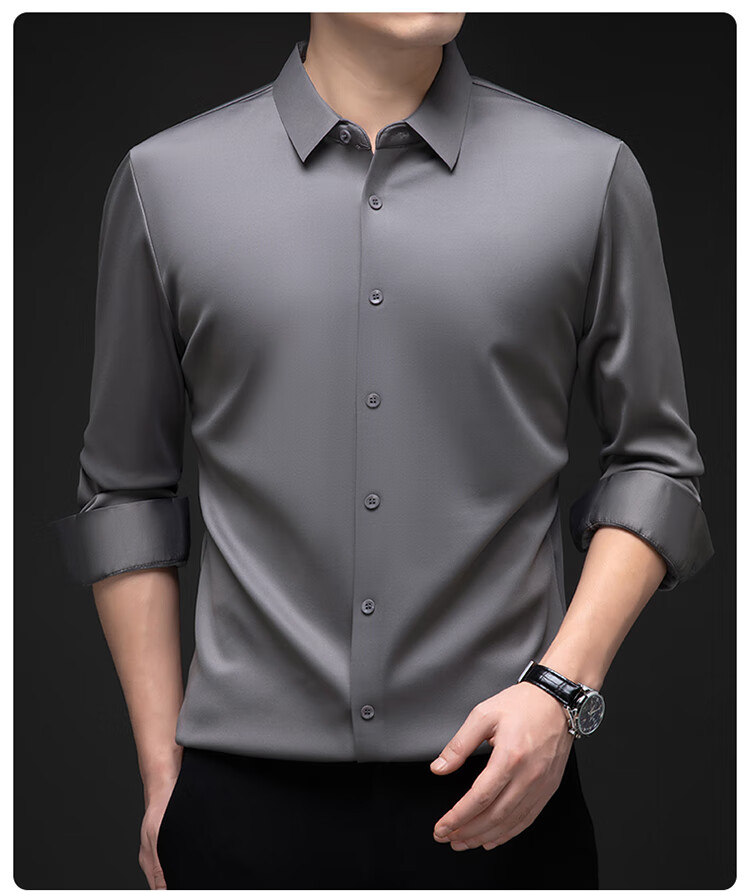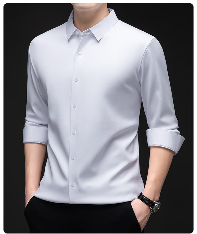 Pierre Cardin no-iron mulberry silk long-sleeved shirt for men in winter plus velvet and thickening no-iron drape business casual warm shirt 8010 long sleeves - black (plush) thickened XL 175135-155Jin Jin is equal to 0.5 kg