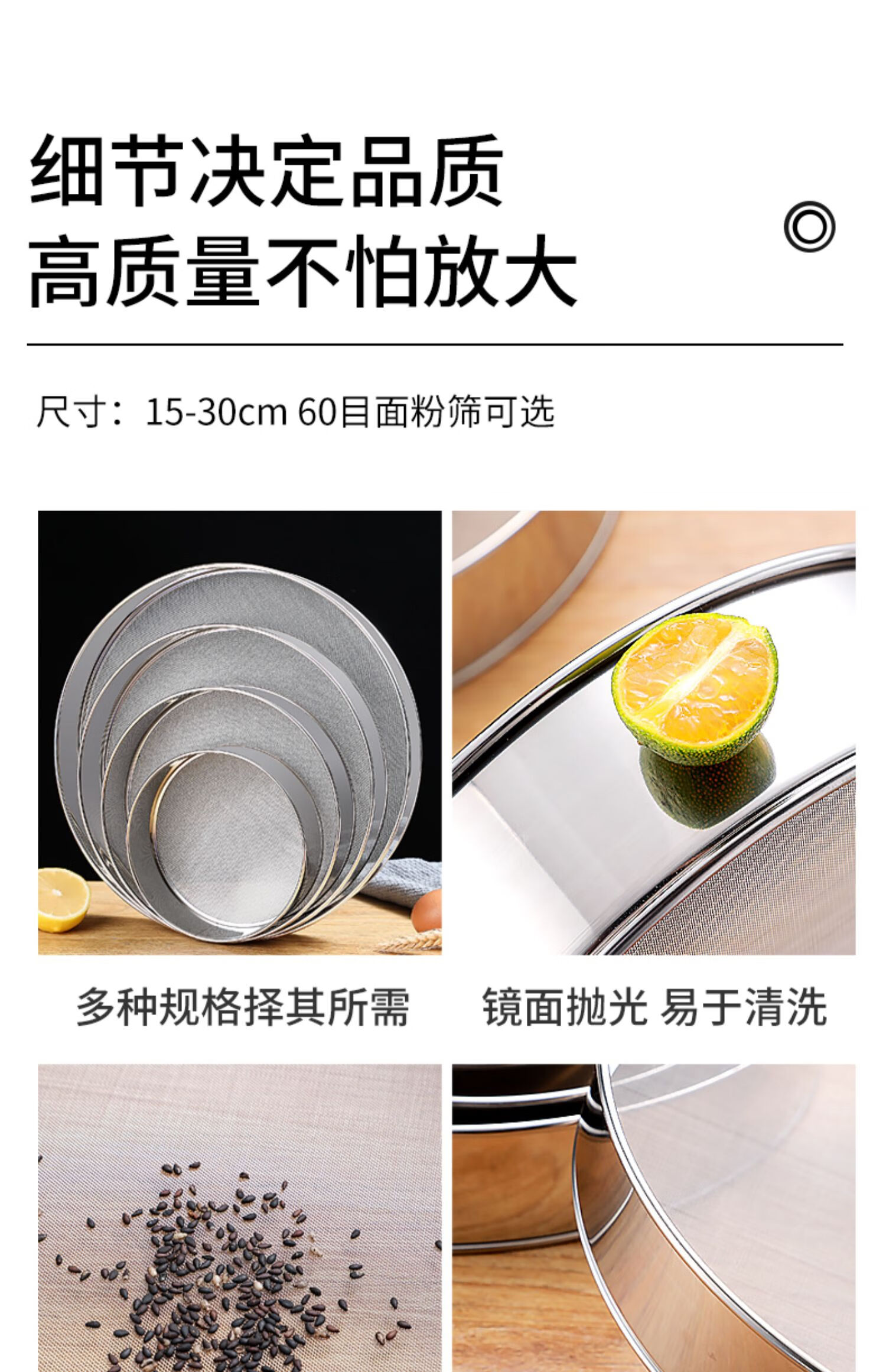 Riheshengtang sieve flour fine leakage mesh household flour sieve lo noodle sieve pass surface gong noodle basket noodle sieve filter mesh sieve radish noodle sifter 30cm flour sieve 201 stainless steel