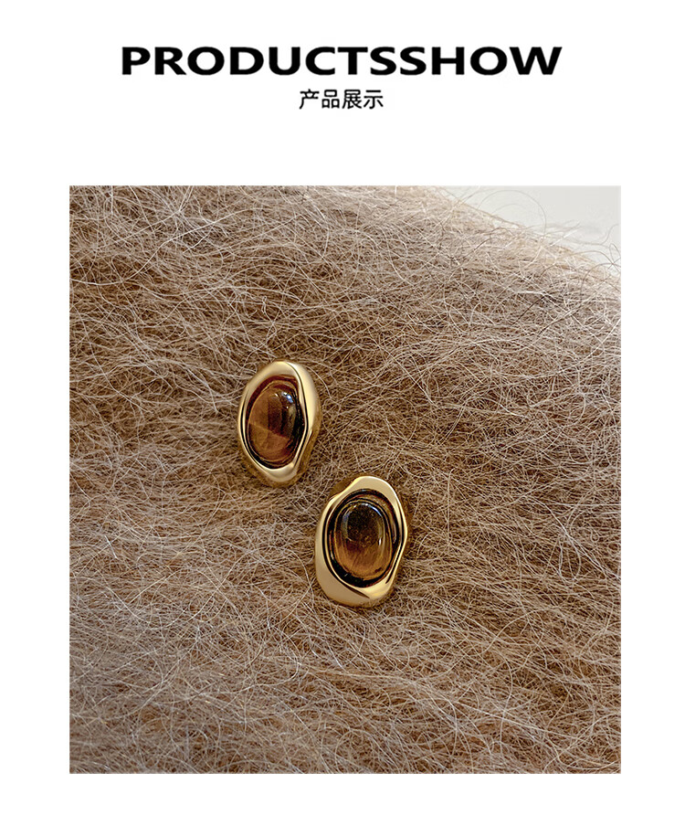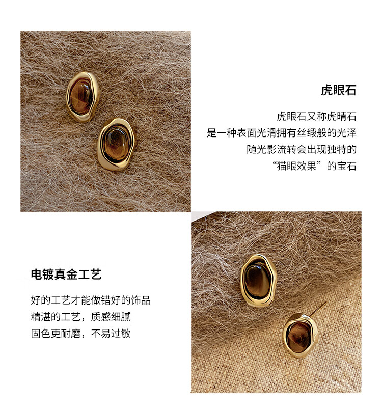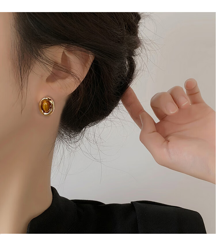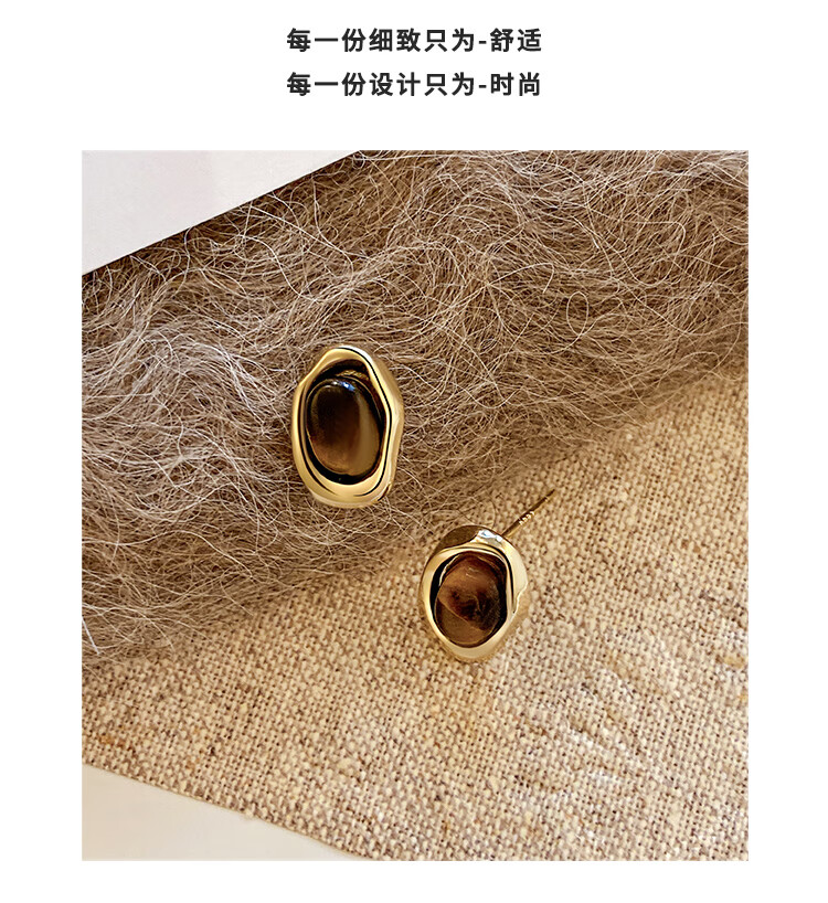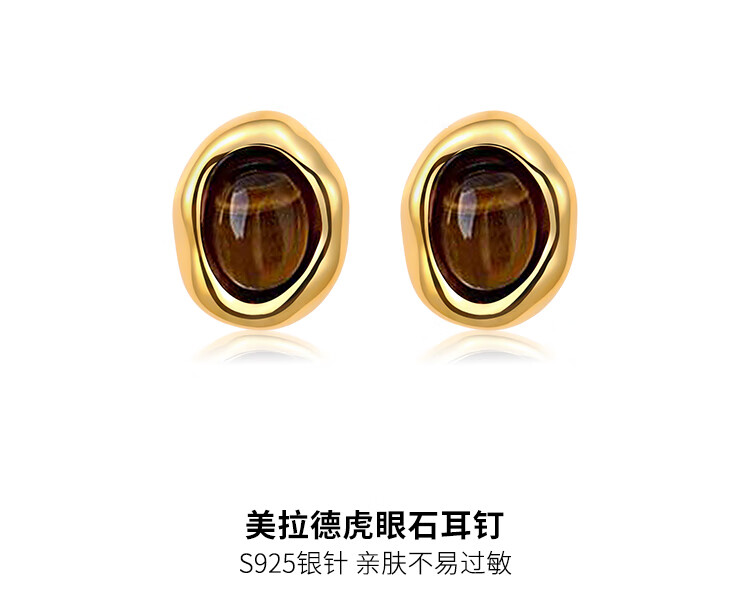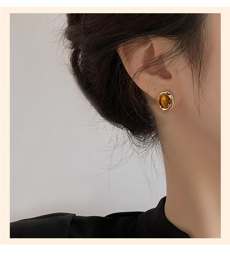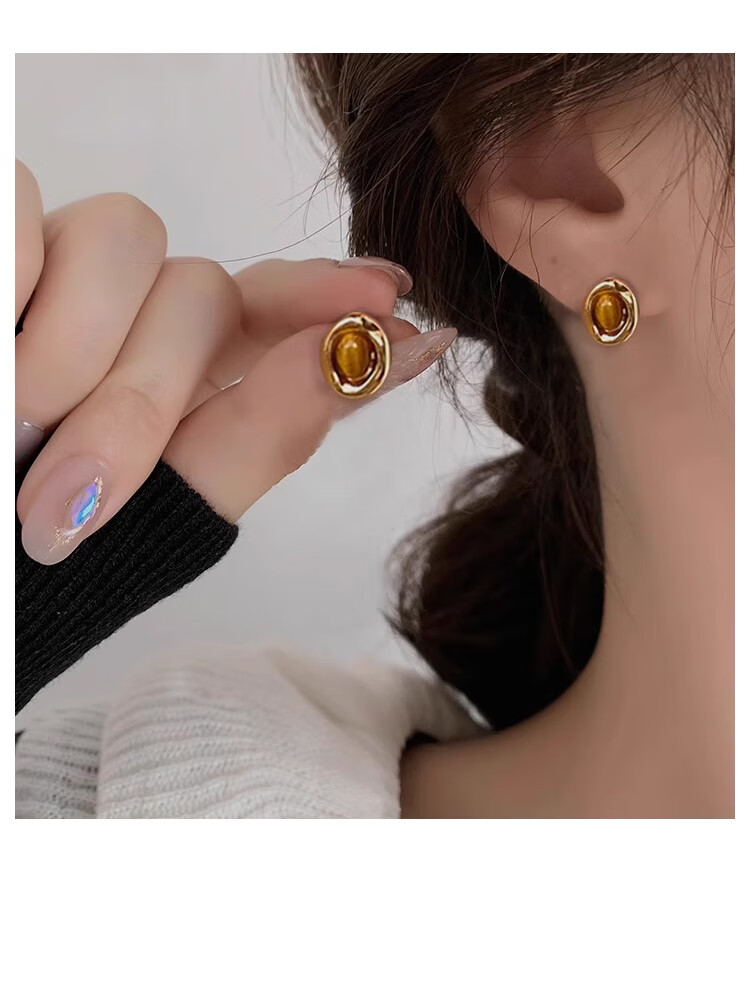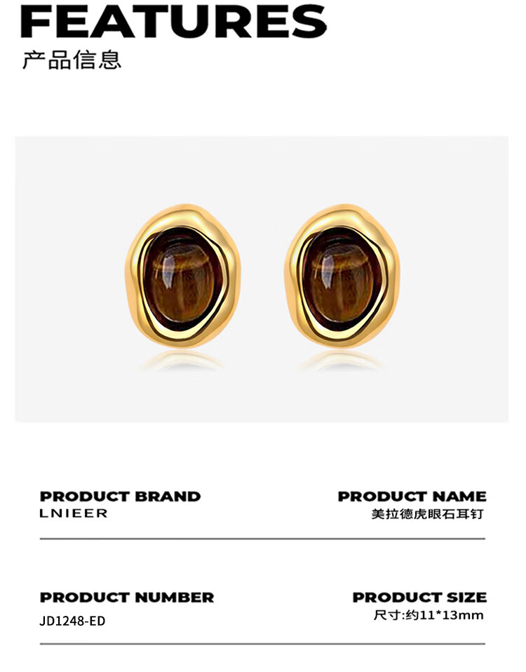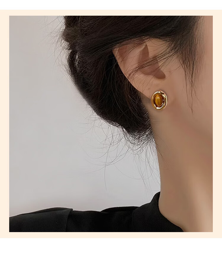 Lnieer S925 Silver Maillard Tiger Eye Stone Earrings Women's Retro Hong Kong Style Autumn and Winter Earrings 2025 New High-end Earrings Tiger Eye Stone Earrings S925 Silver Needle